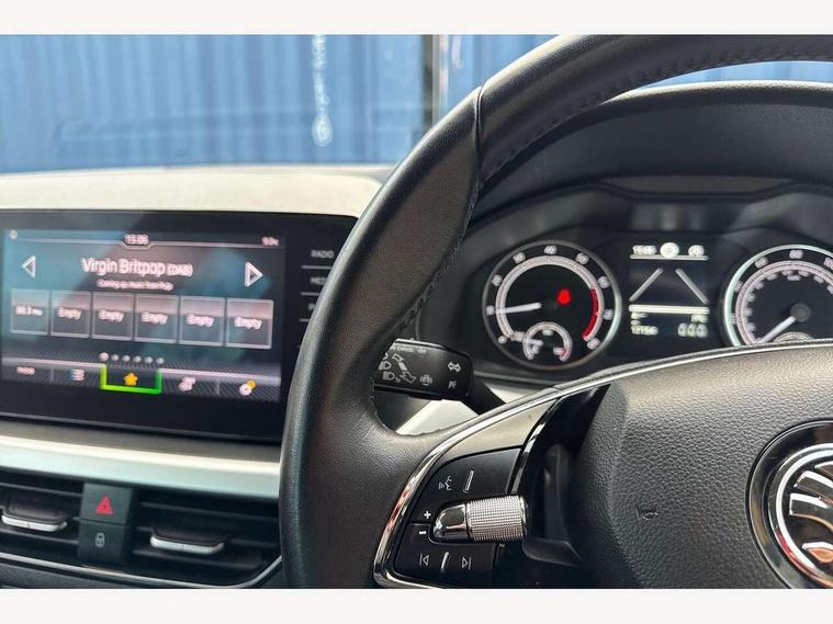 Amundsen satellite navigation with 9.2" glass colour touchscreen display, web radio, voice control and traffic sign recognition, Bluetooth system, E-call, Front assist system, Gesture control, PAS, Service indicator, Speed limiter, Wireless Smartlink for Apple CarPlay (wired for Android Auto), 8 Speakers, Auxiliary input socket, DAB Digital radio, Body colour bumpers, Body colour door mirrors and handles, Chrome grille surround, Dimming rear view mirror with black surround, Electrically adjustable and heated door mirrors, Front and rear electric windows, Headlight range control, Heated rear window, LED rear lights - low functionality, LED third brake light, Light sensors, Privacy glass, Rain sensor, Rear fog lights, Rear side wing doors, Rear wiper, 12V Accessory socket in centre console, 3 seat bench in 2nd row, Chrome inner door handles, Cloth upholstery, Front head restraints, Glove compartment with illumination, Height adjustable driver and front passenger seats - manual, Ice scraper, Isofix child seat fittings on outer rear seats, ISOFIX on front passenger seat, Manual lumbar support for front seats, Rake/reach adjustable steering wheel, Reading lights, Single front passenger seat, Sun visors with illumination on front passenger, Textile floor mats, Third rear headrest, Top tether for front passenger seat, Umbrella in driver's door, 3x3 point rear seatbelts, Airbags - driver and front passenger, ESP, Front passenger airbag deactivation switch, Front side airbags with curtain airbags, Hill hold control, Manual parking brake, Manual rear child locks, One tone horn, Rear disc brakes, Seatbelt reminder for driver an co-driver, Traction control, Tyre pressure monitor, Anti-theft alarm system with interior monitoring, backup horn, towing protection and remote central locking with SAFE system, Anti-theft wheel bolts, Electronic engine immobilizer, Silver haptic decorative insert on the dashboard with hot stamping in glossy black,