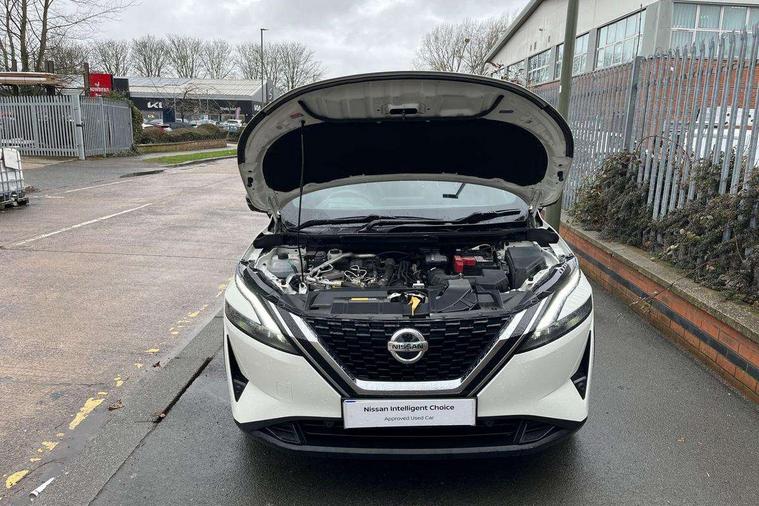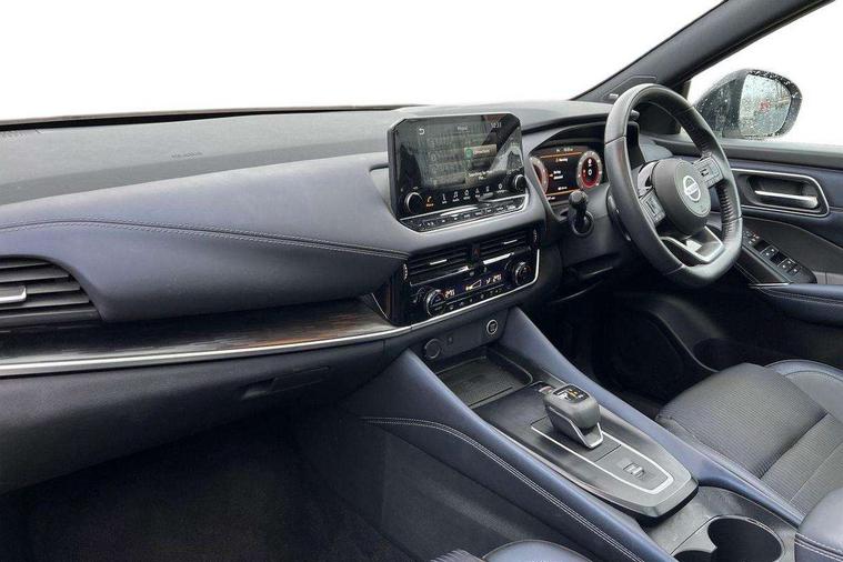 Blind spot warning, Drive modes (sport, normal, eco), Electric speed sensitive power steering, Emergency and breakdown call, Front and rear parking sensors, Full Digital 12.3" TFT Digital Combimeter, Google maps services - search, weather, 3D maps and Google street view, Hands free power tailgate, Idle stop/start system, Intelligent around view monitor, Intelligent Cruise control (ICC), Intelligent driver alert system, Intelligent forward collision warning, Intelligent lane intervention, Lane departure prevention, Lane departure warning system, Moving object detection, Nissan connect 9" touchscreen infotainment system, Nissan connect navigation, Push button starter, Rear cross traffic alert, Remote control services - door locks, lights, horn and car locator, Telematics - notifications and connectivity services, TomTom live traffic services, Traffic sign recognition with legal speed adjustment, Trip computer, Virtual personal assistant and firmware over the air capability, Wireless Apple CarPlay and wired Android Auto, Wireless charging pad, 6 speakers, AM/FM audio system with DAB, Bluetooth audio streaming, Front USB connections (Type-A and Type-C), Rear USB charging only ports (Type-A and Type-C), Auto dimming rear view mirror, Auto rear wiper when reversing, Body colour mirror caps, Body coloured door handles, Bodyside mouldings, Chrome side window finisher, Door handle with button, Dusk sensor, Electric auto folding door mirrors, Electrically adjustable and heated door mirrors with LED turn indicator, Fixed panoramic glass roof with electric sunshade, Follow me home headlights, Front and rear LED turning signals, Intelligent auto headlights, LED daytime running lights, LED rear lights, One touch front and rear electric windows with remote opening and closing, Partially body coloured bumpers, Privacy glass, Rear roof spoiler, Rear side wing doors, Rear styling plate, Roof rails, Shark fin antenna, Splash free rain sensing wipers, Super UV and infrared cut glass, Three blink turn signal, 12v power socket in dashboard and luggage, 2 way electrical driver lumbar adjustment, 2x Rear coat hooks, 3 bench rear seats in 2nd row, 3 rear headrests, 4 folding assist grip, 6 Luggage hooks - 4 on floor, 2 on side, 60/40 split folding rear seat bench, 8 way electric adjustable drivers seat, Ambient lighting around centre console, Ambient lighting in front doors, Centre console storage tray, Chrome interior door handles, Cloth/syntech leather monoform upholstery, Dark headlining, Driver and front passenger sunvisors with illuminated vanity mirrors, Driver seat back pocket, Dual zone automatic climate control with pollen filter, Front and rear door storage, Front cupholders x 2, Front door with bottle holders, Glovebox with light, Hard trunk cover, Height adjustable front headrests, Leather steering wheel, Luggage board system, Luggage space lighting, Manual lumbar support on passenger seat, Manually adjustable passenger (slide recline + lifter), Multifunction steering wheel, Passenger seat back pocket, PVC front centre console and armrest, Rear armrest with 2 cupholders, Rear door bottle holders, Single front passenger seat, Soft PVC kneepad, Steering wheel gearshift paddles, Steering wheel switches, Tilt/telescopic adjustable steering wheel, Two rear isofix child seat anchorage points with top tether, Welcome light and doors with console tray ambient lighting, Heat pack - Qashqai, Tech Pack (ProPILOT + HUD), 3x3 point rear seatbelt pretensioners + load limiters, ABS, ESP, EBD and brake assist, Active brake limited slip, Auto hold function, Child locks on rear doors, Curtain and front side, far side airbags, Driver and passenger airbags, Driver, passenger and 2nd row rear seat belt reminder, Electronic parking brake, Front seatbelt pretensioners + load limiters, Height adjustable front seatbelts, Hill start assist, Intelligent blind spot intervention, Intelligent front emergency braking with pedestrian, cyclist recognition and junction assist, Intelligent rear automatic braking, Tyre pressure monitoring system, Vehicle dynamic control, Capless fuel filler, Engine immobiliser, Nissan i-key, Rear bumper with silver insert, Remote central door locking with deadlocking, Thatcham Cat.1 alarm, 19" Alloy wheels,