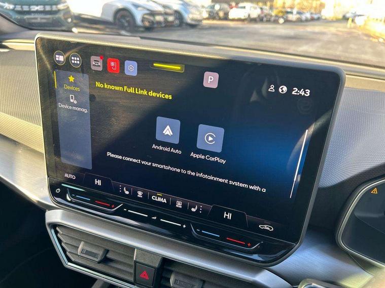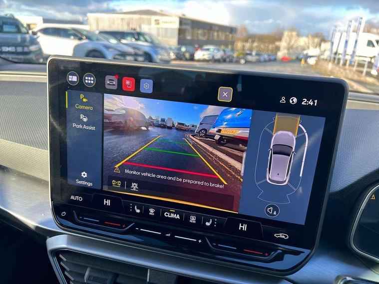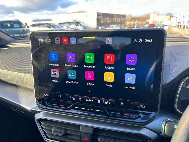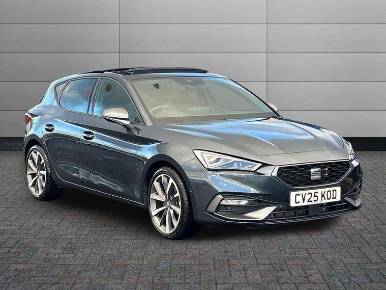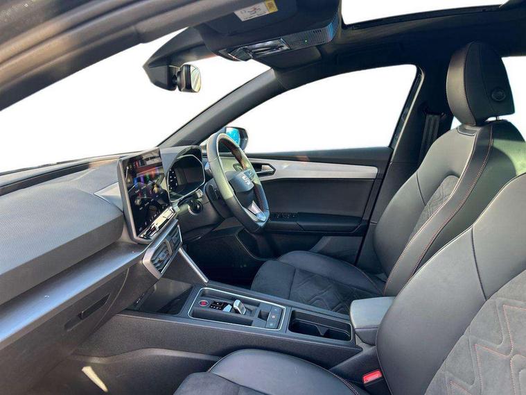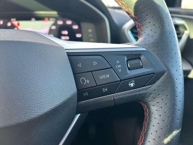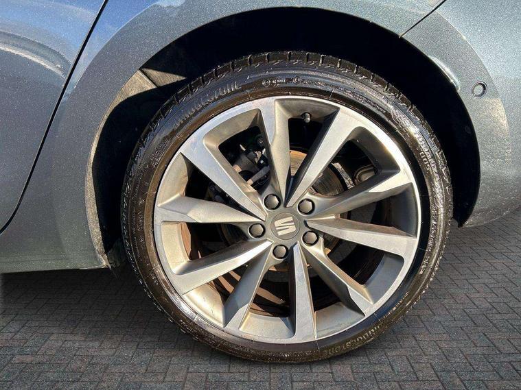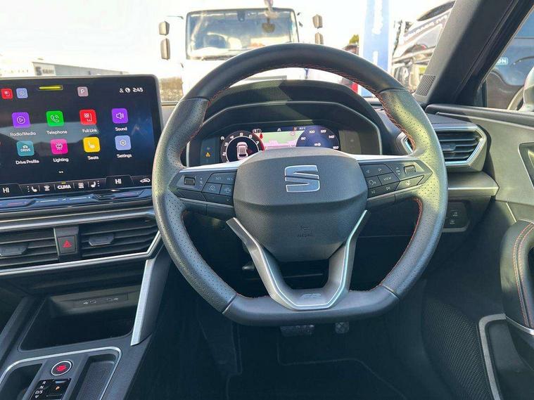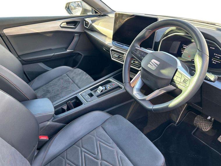 Digital cockpit, E-call, Front assist with forward collision warning braking reaction to vehicles, pedestrians and cyclists, Full link smartphone integration with Mirror Link, wireless Apple CarPlay and wired Google Android Auto, Lane assist, Lockable tailgate, Park assist (inc front/rear parking sensors), Power assisted speed sensitive electro-mechanical steering, Rear view camera, RPM, trip computer, outside temp gauge, instrument light brightness, low fuel warning light, lights on reminder, gearshift indicator, SEAT drive profile with 4 modes (Eco/Normal/Sport/Individual), throttle response and gearshift mode, Service interval indicator, Start/stop system with regenerative braking, Sports suspension, XDS electronic differential lock and dynamic traction support, 7 speakers, Auxiliary input socket, Auto dimming rear view mirror, Body colour door handles, Body coloured bumpers, Dark tinted rear windows, Door mirror LED indicator lights, Dynamic headlight range control, Electric adjustable/heated/folding door mirrors with memory, Electric front/rear windows, FR sports bumper, Illuminated front door sill, LED front fog lamps, LED Headlights with dynamic turn signals, LED tail lights and rear fog lights with rear coast to coast lighting, Rear side wing doors, Rear wash/wipe, Separate daytime running light with automatic headlight control and coming home feature, Third brake light, Welcome light silhouette from exterior mirrors, Windshield wiper intermittent control with light/rain sensor, 12v power point in centre console, 3 seat bench in 2nd row, 60/40 split rear bench seat with armrest, Ambient lighting with glovebox, footwell and single monocolour, Black headlining, Dust/pollen filter, Folding boot cover, Four x USB Type C ports, Front and rear height adjustable headrests, Front and rear reading lights X 4, Front centre armrest, Front seatback storage pockets, Heated front seats, Height/reach adjust steering wheel, Interior wraparound lighting (FR), ISOFIX points in outer rear seats with top tether anchorage points, Luggage tie-down hooks, Lumbar adjustment for front seats, Manual driver seat with memory and height adjustable passenger seat, Microsuede cloth upholstery, Single front passenger seat, Sunvisors with covered illuminated mirror, Three zone climate control, Media system plus with navigation - Leon, 3 point seatbelts on all rear seats, ABS, Brake control system - ESC and brake booster, Child proof door locks, Driver and front passenger airbags with front passenger airbag de-activation, front side and curtain airbags, Electronic parking brake, Extended safety system - seat belt tensioner, window closure and hazard lights, Hill hold control, Rear disc brakes, Seat belt reminder for front and rear seats, Tiredness recognition system, driver alert system, Tyre pressure monitoring system, Anti theft alarm system with interior monitoring in cab, backup horn and towing protection, KESSY Go (Keyless start), Locking wheel bolts, Wireless phone charging, Chrome interior detailing, 18" Performance machined alloy wheels with 92Y tyres, Tool kit,