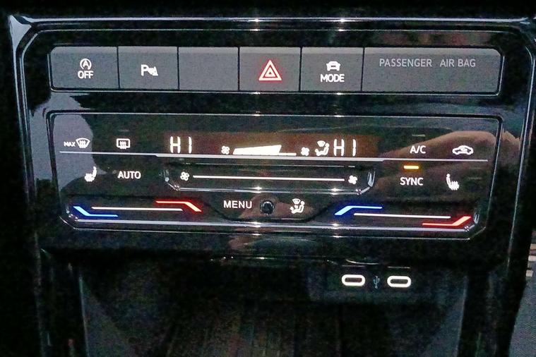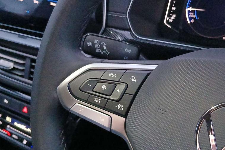 'Lights On' Reminder warning buzzer, 10.25" Digital cockpit pro, Advanced driver attention and drowsiness monitor, Car information display, Driver profile selection including ECO function, Dynamic road sign display, E-Sim card for online connectivity, eCall emergency call system, Front and rear parking sensors, Front assist, forward collision warning, autonomous emergency braking and speed limiter, Low washer fluid warning light, Multifunction computer with visual gear change recommendation for fuel consumption, Multifunction front facing camera for distance control, Operating permit alteration, Power assisted steering, Predictive adaptive cruise control, Preparation for navigation system with media and internet package, Preparation for We connect and We connect plus, Semi-automated driving assistance, travel assist including lane keeping system Lane Assist and emergency assisst, Side assist, Speedo, rev counter, electronic odometer, trip, service interval display, exterior temperature and fuel gauge, Warning sound and light for doors and tailgate open, Warning sound and light for front seatbelts unfastened, Wireless Car net app connect with Apple CarPlay, combined functionality of Apple CarPlay/Android Auto and MirrorLink, Wireless charging, Misfuel prevention device, Start-stop system with battery regeneration (recuperation - energy recovery during braking), 2 USB C ports in front, 2 USB charging sockets on the centre console in the rear charging capacity upto 45W, Diversity antenna for FM reception, Music playback - MP3, WMA and AAC files, Radio, Automatic dimming interior rear view mirror, Automatic hazard lights activation under emergency braking, Automatic headlight control with LED separate daytime running light and coming home and leaving home feature, Body colour door handles, Body coloured bumpers, Dynamic headlight range control with self adjusting whilst driving, Electric folding door mirror, adjustable, heated with front passenger exterior mirror lowering function, Exterior mirrors convex on the left and aspherical on the right, Front and rear electric windows, Front door sill protectors with R-Line logo, Galvanised body, Heat insulating and laminated safety glass windshield, Heat insulating darkened glass in side and rear windows, High Beam Assist, automatic sensing for switching between dipped and main beam, LED rear combination lights, LED third brake light, Lower door sills and door pillars in black, Rain sensor, Rear fog light on one side, reversing light on both sides, Rear side wing doors, Rear window aerial, Rear window wiper with intermittent control, Reflectors in all doors, Scuff plates, Tailgate with integrated roof spoiler, 12V Accessory socket in centre console, 2 Front and rear reading lights incorporating LED technology, 3 rear head restraints, 3 seat bench in 2nd row, 60/40 split folding rear seat backrest, Air care climatronic 2 zone air conditioning system, Ambient lighting, Brushed stainless steel pedals, Chrome plated radiator grille inserts, air vent surrounds and light switch surrounds, Cloth upholstery, Comfort front sport seats, Door and side trim panel, Driver and front passenger sunvisor with vanity mirror, Dust and pollen filter, Front + rear carpet mats, Front centre armrest with storage compartment, Front footwell illumination, Front seat back storage pockets, Glove compartment door with light, Heated front seats, Heating and fresh air system with 4 stage blower, Height/reach adjust steering wheel, Instrument lighting white adjustable panel illumination, Interior light with switch off delay and dimmer, Isofix anchors for child seats on outer rear seats and front passenger seats, Leather gearshift handle, Leather wrapped multifunction steering wheel, Luggage compartment floor, Luggage compartment lighting, Manual front seats with height adjustment, Padded dashboard, Removable luggage compartment cover, Single front passenger seat, Storage compartment in drivers and front passengers door, Titanium black roof lining, Unsplit sliding rear seat bench, Without drawers under front seats, 3 point outer rear seat belts with ECE label, 3 Point seatbelt for centre rear seat, Anti-lock Braking System (ABS) with Hydraulic Brake Assist (HBA), Automatic post collision braking system, Disc brakes in front, Disc brakes in rear, Driver and front passenger safety-optimised head restraints, Drivers and Front Passengers airbags with front passengers airbag deactivation switch, ESC with EDL and ASR (traction control), Extended and predictive pedestrian/cyclist protection, Front and rear passenger curtain airbag system including front side airbags, Height adjustable front 3 point seatbelts + pretensioners, Hill start assist, Pre crash preventive occupant protection, Proactive passenger protection system in combination with front assist, Rear door child safety locks, Rigid safety cell with front and rear crumple zones, Single tone horn, Tyre pressure loss indicator, Volkswagen roadside assistance, Alarm with interior protection, Anti theft alarm system, Electronic engine immobiliser, Remote tailgate unlocking using key fob, Titanium Black Decorative inserts - R Line, Low rolling resistance tyres,