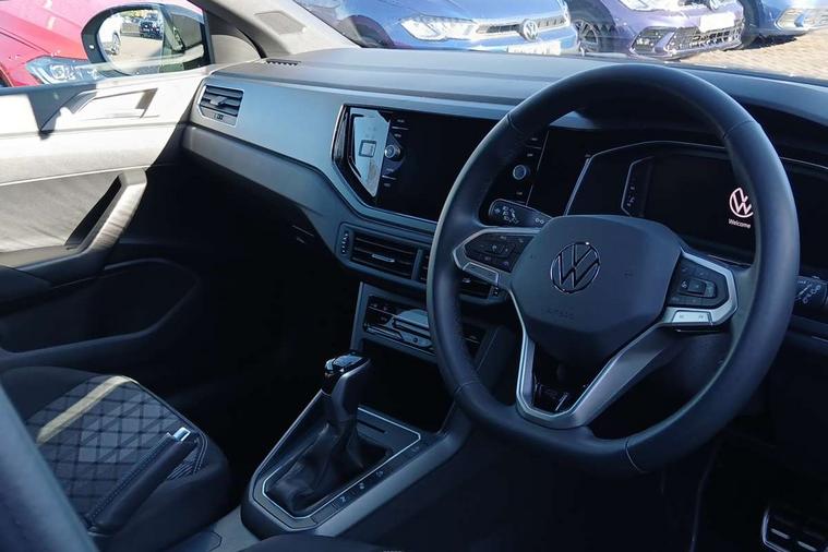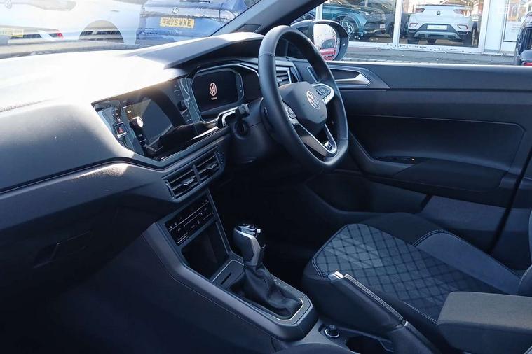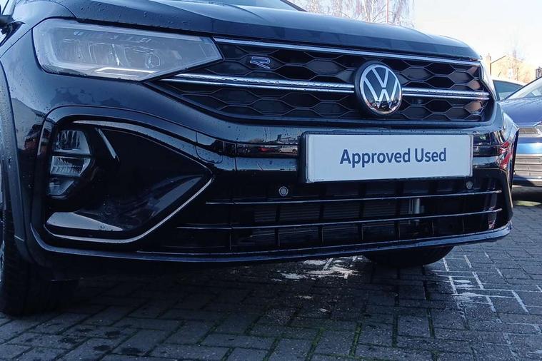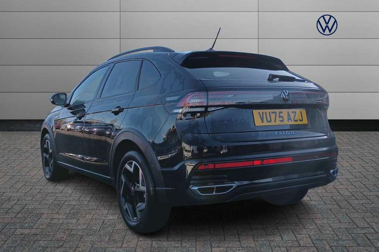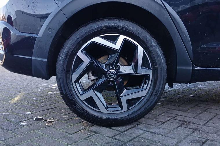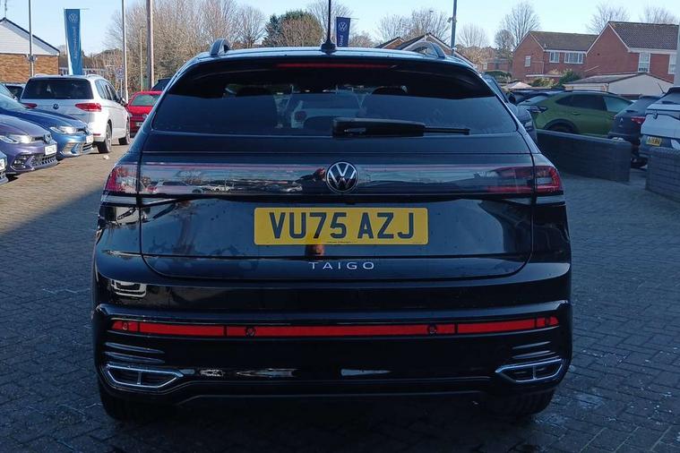 Adaptive cruise control, Advanced driver attention and drowsiness monitor, App-Connect including App-Connect Wireless, Digital cockpit pro - 10.25" high resolution TFT dash display screen with customizable menus and information, Driving profile selection, Dynamic road sign display, e-Call (emergency call), Power Steering, Travel assist including emergency assist, Washer fluid level indicator, Wireless Charging including Bluetooth, Start-stop system with battery regeneration (recuperation - energy recovery during braking), XDS electronic differential lock for improved traction and handling, Digital radio reception (DAB+), Diversity antenna for FM reception, WeConnect plus, Ambient lighting with logo projection, Aspherical driver's exterior mirror, Auto headlights, Body coloured bumpers, Bumpers in R-Line style, Electric windows, External USB type C socket and charging sockets, Front scuff plates with R-Line logo, LED rear combination lamp, LED third brake light, Left convex exterior mirror, Power folding adjustable/heated exterior mirrors and front passenger exterior mirror lowering function, Rear fog light on one side, reversing light on both sides, Rear side wing doors, Rear wash/wipe with intermittent wipe setting, 12V socket in centre console, 2 front reading lights, 3 rear head restraints, 3 seat bench in 2nd row, Air care climatronic air conditoning system with active combination filter and 2-zone temperature control, Black carpets, Black roof lining, Child seat anchor for child seat system i-Size, 2x top tether and child seat anchor in front on front passenger side, Chrome bezel for instrument cluster, vents, door handles + gear shift, Driver and front passenger seat height adjustment, Front + rear carpet mats, Front centre armrest, Front footwell illumination, Front sports comfort seats, Height and reach adjustable steering wheel, Interior ambient lighting and surround lighting, Karoso artvelours cloth upholstery, Leather trimmed gear knob, Leather wrapped multifunction steering wheel, Luggage compartment floor, Luggage compartment light, Lumbar support for driver's and front passengers seat, Seat covers in grey + titanium black, Single front passenger seat, Split folding backrest with centre armrest and unsplit rear seat bench, Stainless steel pedals, Storage compartment under front seats, Sun visors with illuminated vanity mirrors, Chrome Package - Taigo, Drivers assistance pack - Taigo, Light and Sight pack including High beam assist - Taigo, 2 x 3-point seatbelts/outer rear seats with ECE label, 3-point seat belts in front with pretensioner and height adjustment, 3-point seatbelt for centre rear seat, Adaptive driver and front passenger airbags with passenger airbag deactivation function, Driver and front passenger safety-optimised head restraints, Electronic stability control, Extended and predictive pedestrian/ cyclist protection, Front and rear disc brakes, Front curtain and side airbags with center airbag, Hill start assist, Manual rear child locks, Single tone horn, Tyre pressure loss indicator, Anti-theft alarm system with interior monitoring, backup horn, and towing protection, Grey anodised matte decorative inserts in dash and front door panels, Low rolling resistance tyres,