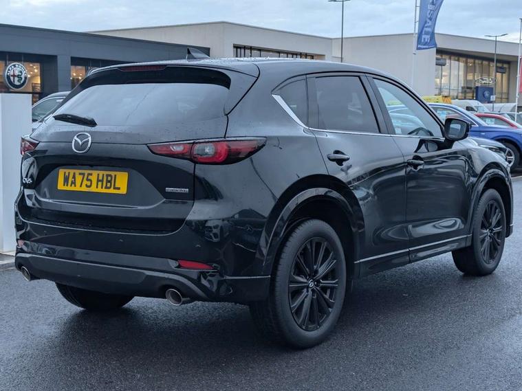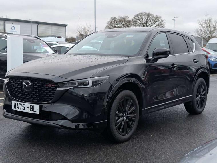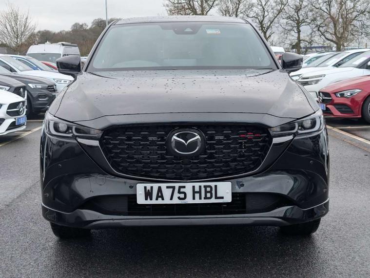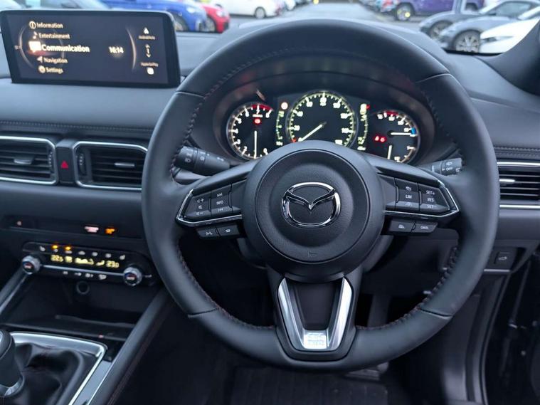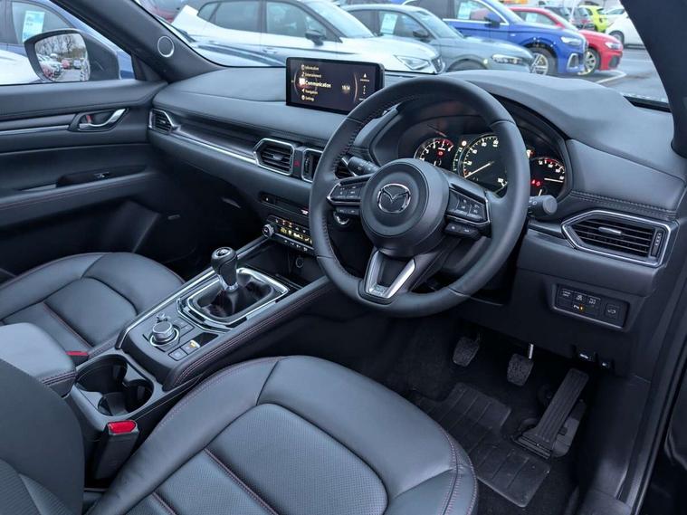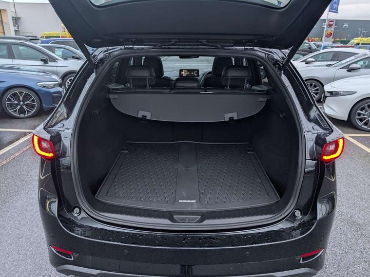 10.25" display with Mazda Connect infotainment, 7" colour TFT display, Advanced blind spot monitoring, Bluetooth connectivity with voice control, Collision prevention assist, Connected services, Cruising Traffic Support, Electric power steering, Emergency stop signalling system, Engine start/stop button, Forward collision warning, Front and rear parking sensors, Integrated navigation system, Intelligent speed assist, Lane departure warning system, Lane keep assist, Power liftgate, Qi wireless phone charging, Radar cruise control, Rear cross traffic alert, Reversing camera, Service indicator, Traffic sign recognition (TSR), Trip computer, Windscreen projected colour active driving display (HUD) with memory, Wireless apple car play/android Auto, Cylinder Deactivation, i-stop, AM/FM radio, Bluetooth audio streaming, Bose premium sound system with 10 speakers, DAB Digital radio, Multimedia Commander including separate volume dial, Steering wheel mounted audio controls, Adaptive front lighting system, Auto dimming rear view mirror, Automatic headlights, Black honeycomb door trim decoration panel, Black honeycomb interior decoration panel, Body colour roof spoiler, Coming/leaving home lighting function, Door mirror integrated indicators, Dual large chrome tailpipes, Dusk sensitive headlamps, Electric front/rear windows with one touch auto up/down, Front grille in gloss black finish, Front grille in gloss black with red accent + gloss black signature wing, Gloss black B and C pillars garnish, Gloss black door mirrors, Gloss black front and rear lower bumper mouldings, Gloss black tire arch and side mouldings, High beam assist, Intermittent rear wash/wipe, LED auto levelling, LED daytime running lights, LED front fog lights, LED Headlights, LED third brake light, Power folding and heated door mirrors, Power tilt/slide sunroof, Privacy glass (rear side windows only), Rain sensing front wipers, Rear side wing doors, Red front grille accent, Red stitching and accents on door trim, knee pad, console lid, steering wheel, shift boots, Scuff plates, Shark fin antenna, Signature LED rear combination lights, Variable intermittent front wash/wipe, Windscreen wiper de-icer, 12v electrical power outlet, 3 seat bench in 2nd row, 3 stage heated front seats, 40:20:40 Karakuri fold-flat seat system, 6 way electric adjustable passenger seat, 8 way electric driver seat with lumbar support + memory, Black roof lining, Cargo room flat floor board with waterproof undertray, Driver seat power slide, recline and height adjustment, Driver, Front passenger and two rear grab handles with coat hooks, Driver/passenger front seatback pockets, Driver/passenger sunvisors + illuminated vanity mirrors (drivers with ticket holder), Dual zone climate control, Folding centre armrest with 2 cup holders, Front and rear door pockets, Front centre storage with two cupholders, Front passenger seat power slide, recline and height adjustment, Gear shift indicator, Heated steering wheel, Humidity sensor, Illuminated glovebox, Interior dome light with integral spotlight, ISOFIX child seat anchorage points attached on outer rear seats, Karakuri tonneau cover, Leather upholstery, Leather wrapped steering wheel and gear knob, Luggage compartment LED lighting, Luggage compartment power outlet, Rear air vents, Rear headrests, Rear seat recline, Roof mounted sunglasses holder, Single front passenger seat, Three height adjustable head restraints, Tilt/height adjustable steering wheel, USB Connectivity (2x front Type-C, 2x rear Type-B), White interior LED illumination lighting, 3 point front seatbelts with pre-tensioners, 3 rear 3 point seatbelts, ABS, Advanced Smart City Brake Support - SCBS, Child locks on rear doors, Driver and front passenger side airbags, DSTC-Dynamic Stability and Traction Control, Dual front airbags, Electronic brake force distribution, Electronic parking brake with auto hold, ESP, Front and rear curtain airbags, Front passenger airbag deactivation, G-Vectoring control, Hill hold assist, Seatbelt reminder front and rear, Single stage passenger airbags, Smart brake support with forward obstruction warning, Tyre pressure monitoring system, Automatic door locking when moving off, Deadlock, Immobiliser, Power door locks, Remote central locking, Smart keyless entry, Thatcham Cat.1 alarm, 19" Black alloy wheels, Tyre repair kit,