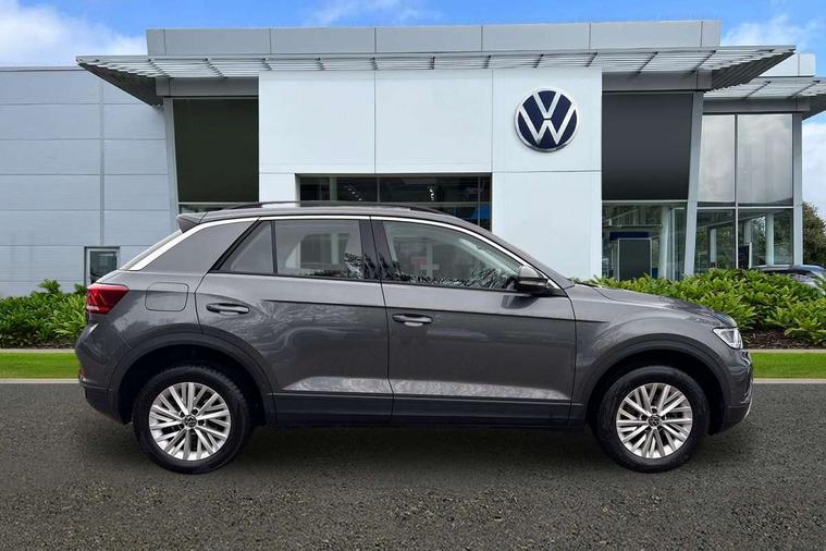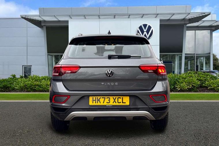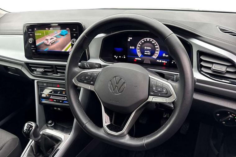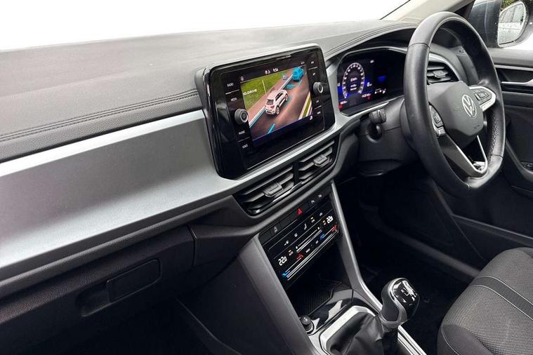 Advanced driver attention and drowsiness monitor, Bluetooth mobile phone interface, Driver tips and journey analysis, Emergency call service, Lane keeping system Lane Assist, Modified key software - reduce switch off time for key status change to Long no motion, Online services, Park assist including front and rear parking sensors, Power assisted speed sensitive steering, Service interval indicator, Tailgate/trunk lid release from outside, Think blue trainer driver tips and journey analysis, Warning sound and light for front seatbelts unfastened, Wireless app connect, Battery regeneration during braking, Front shock absorption, Rear shock absorption chassis with increased ride height, Start/stop function with battery regeneration, DAB Digital radio, Diversity antenna for FM reception, Music playback - MP3, WMA and AAC files, Premium USB cable in choice of either Apple or Android smartphone compatibility, SD card slot, Simultaneous pairing of 2 compatible mobile devices, Title and cover art display, We Connect and We Connect Plus functionality, 3rd brake light, Auto dimming interior rear view mirror, Automatic hazard lights activation under emergency braking, Automatic headlight control with LED separate daytime running lights with coming/leaving home function, Black roof rails, Body coloured bumpers and radiator grille with chrome trim and front fog lamps with chrome bezel, Body coloured exterior mirror housings and door handles, Extended roof spoiler, Exterior mirrors aspherical on driver side, convex on front passenger side, External USB type C socket and charging sockets, Front windscreen wiper with intermittent wipe and 4 position delay, Heated rear window, LED rear combination lamps, LED rear number plate lights, LED tail lamp rear comination lamps, Power windows with comfort operation and circuit breaker, Rain sensor, Rear exhaust tailpipe, Rear fog light on one side and reversing lights on both sides, Rear side wing doors, Rear wash/wipe with intermittent wipe setting, Remote electrically foldable door mirrors, puddle lights and reverse activated passenger's door mirror, 12V power socket in centre console, 3 rear head restraints, 3 seat bench in 2nd row, 4 load lashing points in luggage compartment, Air care climatronic air conditoning system with active combination filter and 2-zone temperature control, Ambient lighting with mirror logo projection, Cloth upholstery, Door and side trim panel in cloth, Drawer under drivers seat, Driver/front passenger seat height adjustment, Front centre armrest, Front comfort sports seats, Front cupholders x 2, Front reading light, Instrument lighting, white adjustable panel illumination, Interior light delay, Isofix child seat preparation, Leather gearshift handle, Load-through provision with cup holder when folded down ('Unsplit rear seat bench, split folding backrest, with centre armrest), Luggage compartment lighting, Lumbar support for driver's and front passengers seat, Non-folding front passenger seat backrest, Single front passenger seat, Storage compartment in left and right luggage area, Storage compartment in rear doors, Storage compartments in driver and front passenger doors, Sunvisors with illuminated vanity mirrors, Variable boot floor, height adjustable and removable, Driver assistance pack without proactive passenger protection - T-Roc, 3 point height adj front seatbelts + pretensioners, 3 point seatbelts in outer rear with ECE label, ABS, Child locks on rear doors, Driver and front passenger airbag with front passenger airbag deactivation, Driver and front passenger safety-optimised head restraints, Drivers seatbelt reminder, Electronic parking brake, Electronic Stability Control (ESC) inc EDL (Electronic Differential Lock) and ASR (Traction Control), Front and rear passengers curtain airbag system including front side airbags, Front assist with city emergency braking and pedestrian monitoring, Front disc brakes, Front seat side impact airbags, Hill start assist, Predictive pedestrian protection, Rear disc brakes, Two tone horn, Tyre pressure loss indicator, Volkswagen roadside assistance, Alarm with interior protection, Anti-theft alarm system with interior monitoring, backup horn, and towing protection, Remote central locking with SAFELOCK, radio remote control with 2 remote control folding keys, Pewter matt decorative inserts for intrument panel, centre console and door panels at the front, Trims for alloy wheels,