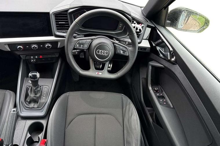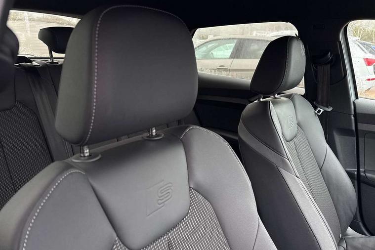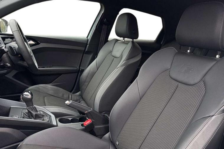 10.25" Digital instrument cluster display classis style instrument dials + speed, odometer, time, outside temperature, telephone menu + fuel level warning, Advanced driver attention and drowsiness monitor, Audi connect emergency call and service, Audi remote connect and control, Audi smartphone interface, Bluetooth interface, Camera based traffic sign recognition, Cruise control, Driver's information system, Electromechanical power steering, Lane departure warning system, Rear parking sensor, Service interval indicator, Speed limiter, Start stop system with recuperation, Voice control system, Washer fluid level indicator, Sports suspension, 2 x USB type C connection points, 6 loudspeakers, DAB Digital radio, MMI radio plus with 10.1" colour MMI display screen and MMI touch, Auto dimming rear view mirror, Black side skirts, Body coloured bumpers, Door sill trims with aluminium inlays and logo, Electric front and rear windows, Electrically adjustable, heated, folding door mirrors with integrated LED side indicator, Front side air inlets in grained matt black and C frame in anthracite black, Front wing badges, Headlight cleaning system, Heat insulating glass windscreen and side windows, Heated rear windscreen, High level LED brake light, LED daytime running lights, LED headlights with range control LED rear lights + dynamic rear indicators, Privacy glass, Radiator grille and rear diffuser in matt anthracite black, Radiator protective grille frame in matt aluminium silver, Rain and light sensors, Rear fog lights, Rear side wing doors, Rear wiper, Side front spoiler lips in grained matt black, 12V socket in centre console with two cup holders, 3 rear seats with headrests, 3 seat bench in 2nd row, 3 spoke flat bottomed multi-function plus leather steering wheel with S badging, grips in preforated leather, contrast stitching and paddle shift, 40:60 Split folding rear seat or fully collapsed, Black cloth headlining, Front and rear velour black floor mats with contrast stitching in fine silver, Front head restraints, Front passenger seat, Height and reach adjustable steering wheel, Interior lighting includes roof module, front and rear reading lights and right luggage compartment lighting, ISOFIX child seat mounting for front passenger and outer rear seats including top tether attachment point of outer rear seats, Leather gear knob with aluminium trim, Leather handbrake grip, Manual air conditioning, Manual height adjustable for driver and front passenger seat, Manually adjustable lumbar support in front seats, Stainless steel pedals, Ambient lighting package - A1, Black styling pack - A1 Sportback Black Edition, Luggage compartment pack - A1, 3x3 point rear seatbelts, Audi pre-sense front with pedestrain and cyclist recognition, Brake assist function, Driver and front passenger airbag with front side and head airbags, Electronic Stability Control including ABS, EBD, ASR and EDL, Front passenger airbag deactivation switch, Hill hold assist, Manual rear child locks, Seatbelt height adjustment for front seats, Seatbelt monitoring, Tyre pressure loss indicator, Warning triangle and first aid kit, Anti theft alarm, Anti theft wheel bolts, Immobiliser, Remote control key with safelock, Aluminium trim for control switches, air vents and digital instrument cluster, Black dashboard, Silver grey inlays polygon structure in diamond paint finish, Structured grey accent surfaces insert of air vents, interior door handle recesses and centre console in quartz paint finish,