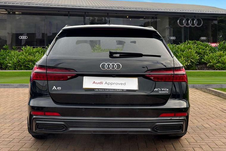 7" high resolution colour driver information display system, Audi connect safety and service (e-call), Audi drive select, Audi parking system plus - acoustic and visual park assist system for front and rear, Audi smartphone interface, Automatic start/stop system with coasting functionality, Bluetooth interface, Lane departure warning system, MMI navigation with MMI touch + twin touch screens 8.8" and 8.6" with haptic and acoustic feedback, Power operated tailgate, Progressive steering, Rear view camera, Service interval indicator, Voice control system, 12V Mild hybrid, 24 litre AdBlue tank, Diesel particulate filter, Quattro on demand, Sports suspension, Audi music interface, Audi sound system, Auxiliary input socket, DAB Digital radio, USB connection, Black roof rails, Electric front/rear windows, Frameless auto dimming interior rear view mirror, Gloss black exterior mirror housings, Gloss black highlights on the exterior area of the Audi Single frame, Gloss black highlights on the front and rear bumpers, Gloss black highlights on the radiator grille, Gloss black highlights on the side windows trim strips, Headlight washers, Heat insulating glass in side and rear windows, Heat insulating glass in windshield, LED rear lights, LED signature front daytime running light, Matrix LED headlights with dynamic rear indicators, Matt black rear diffuser with diffuser strip and tailpipes in chrome, Matt black side air intake grille with inlay in matt aluminium, Privacy glass, Rain and light sensors, Rear roof spoiler, Signature rear LED light design, 2 zone deluxe electronic climate control, 4 way electric lumbar support for driver and front passenger, 40/20/40 split folding 3 rear seat bench in 3 parts with rear centre armrest, Black cloth headlining, Electrically adjustable front seats with driver memory, Front centre armrest, Front head restraints, Front/rear floor mats, Heated front seats, Height/reach adjust steering wheel, Illuminated door sill trims with S logo, Illuminated sun visors with vanity mirrors, ISOFIX child seat mounting and Top Tether with front passenger airbag deactivation, Leather gear knob, Luggage compartment system, Rear headrests, Stainless steel pedals and foot rest, Tool kit and car jack, LED Interior Ambient Lighting Pack - A6, Non smoking pack - A6, 3 point seatbelts on all seats, Airbags - Front side, front and rear including head, Audi pre-sense front, Black seatbelts, EBD - Electronic brakeforce distribution, Electromechanical parking brake, Electronic Stability Control (ESC) including ABS, ASR and EDL, Extended pedestrian protection measures, Seatbelt monitoring, Tyre pressure warning light, Warning triangle and first aid kit, Anti theft alarm with tow away protection, Anti-theft wheel bolts and wheel loosening detection, Immobiliser, Keyless Go, Remote central locking, Matt brushed aluminium dark inlays, 20" 5 V spoke star design Audi sport cast aluminium alloy wheels in matt titanium look,