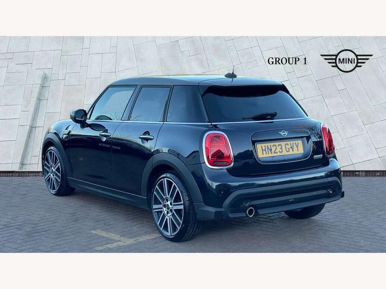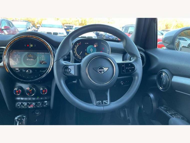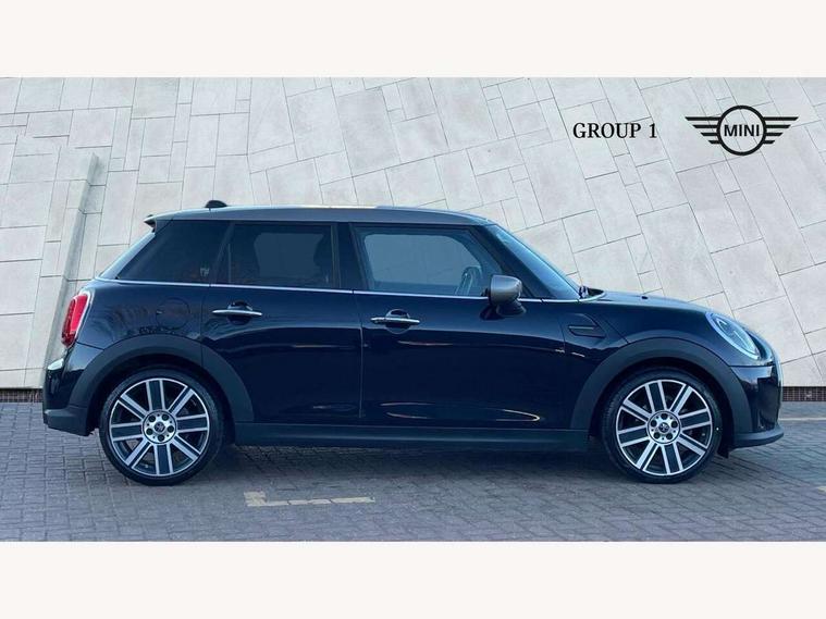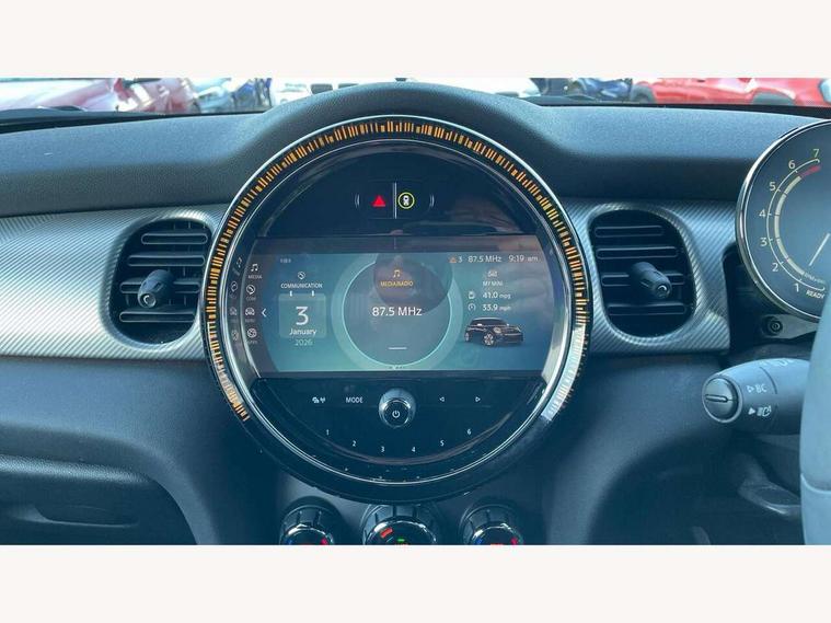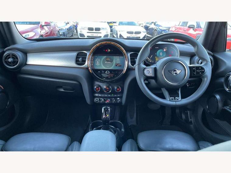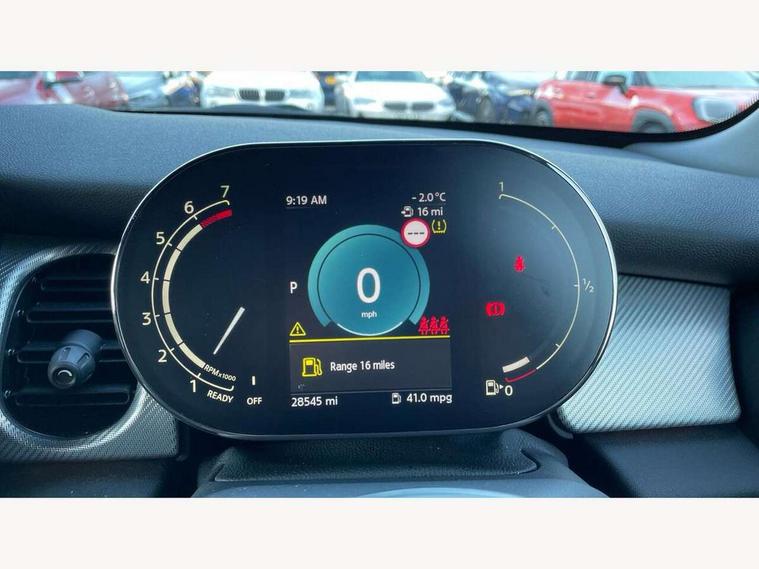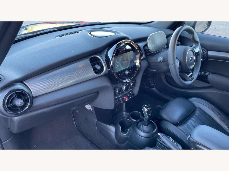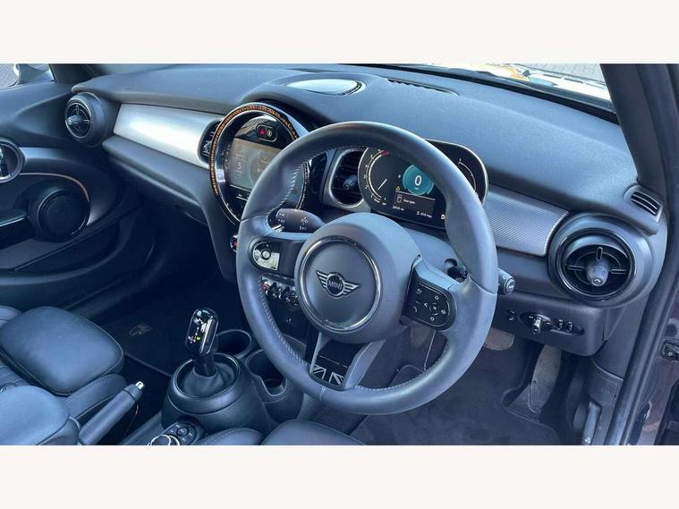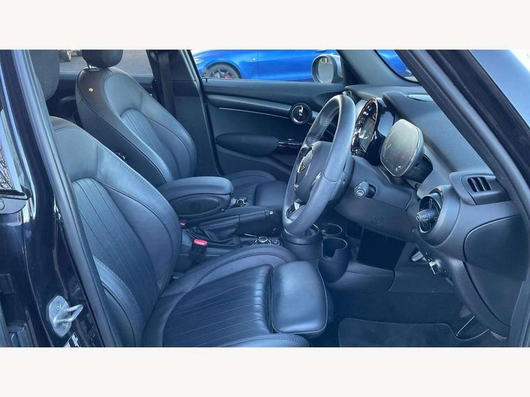Apple CarPlay, Automatic start/stop function with brake energy recuperation, Compatible mobile phone bluetooth with audio streaming, Electro-mechanical speed dependant steering assistance, Flexible car sharing preparation, MINI Driving Modes - centre toggle switch to control driving setting (sport, mid and green), Mini E-call, MINI TeleServices, On board computer, Rear park distance control, Service interval indicator, Double Vanos system, Fully variable valve control, Gear change indicator display, High precision injection, Performance Control, Steptronic transmission with double clutch, 8.8" touchscreen with LED ring, FM tuner and DAB digital radio, 3rd brake light, Automatic headlight activation switch, Body colour fuel filler cap, Chrome line exterior - radiator grille bars, tailgate handle, lower front grille grating and rear central fog-light, Dynamic brake lights, Electric front+rear windows, Heated rear window, Heated windscreen washer jets, Metal door sill strips with MINI imprint, Model logo Cooper on right of tailgate, Rain sensor window wipers, Rear fog lights, Rear LED lights with union jack design, Rear side wing doors, Rear window wiper, Side scuttle panel with integrated indicator, Sun/heat protection glass, White indicator lenses, 12V Accessory socket in centre console, 3 seat bench in 2nd row, 4 lashing eyes in luggage compartment, 60/40 split folding rear seat, Anthracite headliner including grab handles and clothes hooks, Carbon black colour line - Knee roll and door armrest, Chrome interior highlights, Chrome line interior - air vents, gear lever base, door handles and speakers in doors, Cupholders, Front and rear head restraints, Front and rear isofix with front passenger airbag deactivation, Front and rear velour floor mats, Glove compartment, Height and length steering column adjustment, Interior lighting with 12 different colours across the dashboard, underneath door bezel with illuminated laser-engraved design on central display, Leatherette gearshift lever and handbrake gaiters, LED reading lights, vanity mirror lights, front foot well light and spotlight on front seats, Mechanical seat adjustment - forward/back & backrest for front seats and driver seat height adjust, MINI yours badge on exterior pillar, Multifunction steering wheel, Single front passenger seat, Storage compartments in doors, Sunvisors with vanity mirrors, Walknappa leather steering wheel with grey seam and MINI Yours badge on Piano Black lower steering wheel spoke, 3 point seatbelts on all five seats, 6 Airbags - front, side, head and seat belt tensioners, Anti-lock braking system (ABS), Child locks on rear doors, DSC - Dynamic Stability Control, Front and rear disc brakes, Hill start assist, Single tone fanfare horn, Tyre pressure monitoring system, Alarm system with tilt sensor, monitoring doors, bonnet interior and tailgate, Electronic vehicle immobiliser, Start/stop toggle with keyless go, Tool kit,