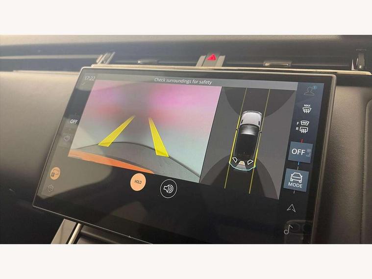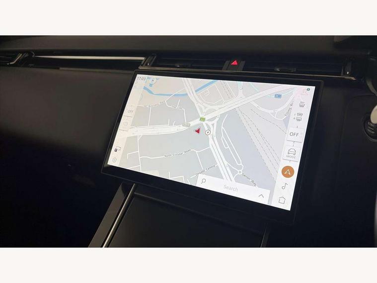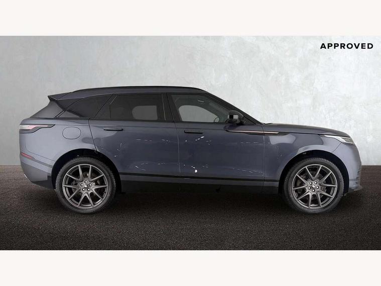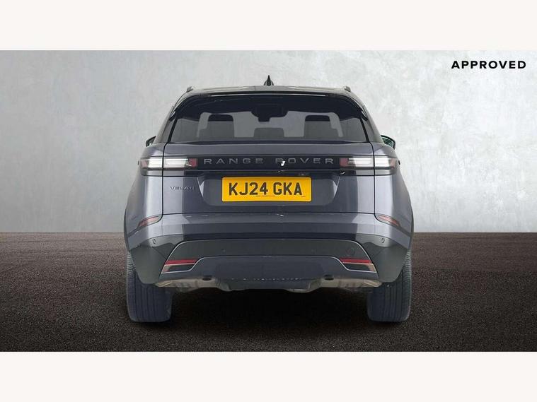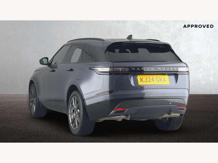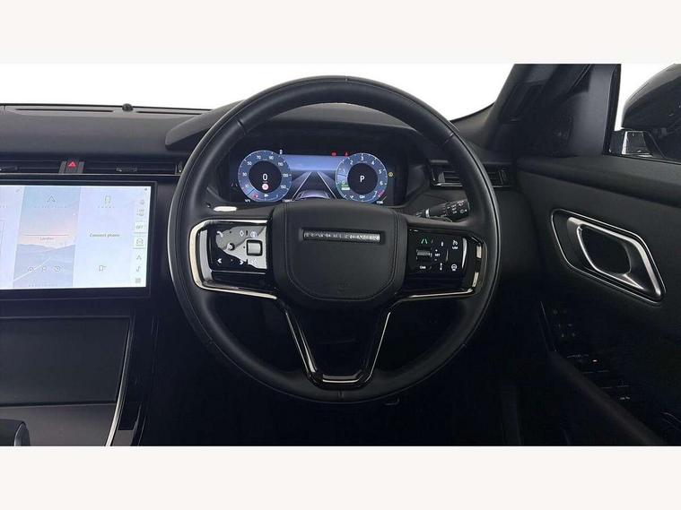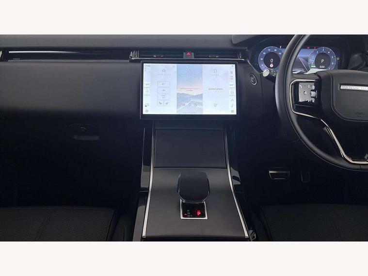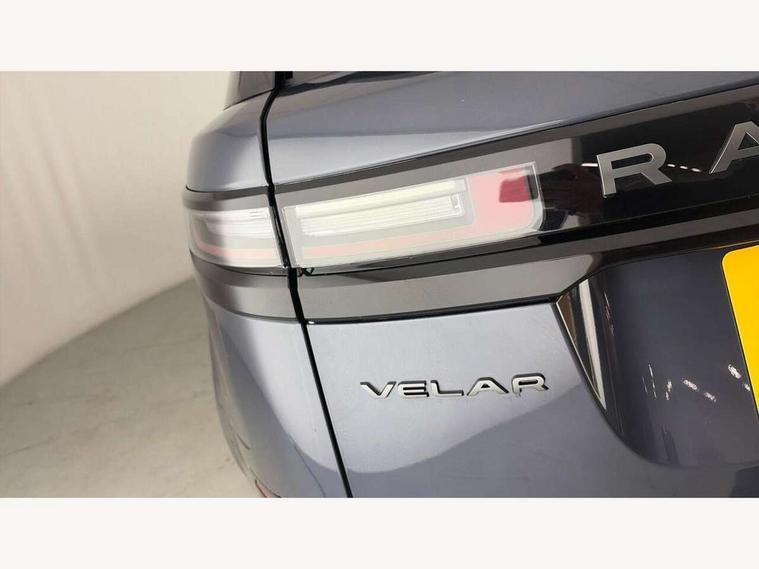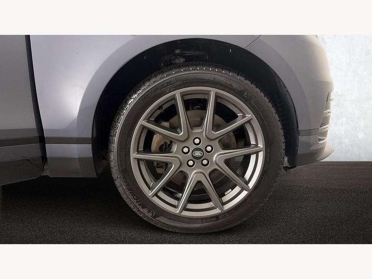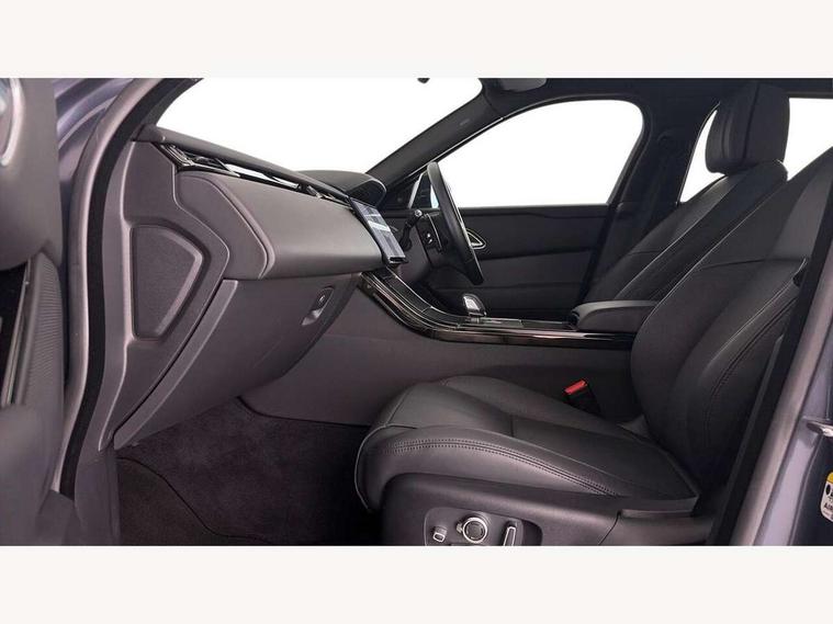 Adaptive cruise control with steering assist, Android Auto, Apple CarPlay, Blind spot assist, Bluetooth connectivity, Brake pad wear indicator warning light, Driver condition monitor, eCall emergency call system, Front and rear parking aid, InControl remote, Land Rover InControl apps, Lane keep assist, Pivi pro with connected navigation, Rear collision monitor, Rear traffic monitor, Service indicator, Speed proportional electronic power assisted steering (EPAS), Traffic sign recognition with adaptive speed limiter, Trip computer, Voice control system, Wireless device charging, 7kw on board charger, 8 speed automatic transmission, AC/DC charging, Adaptive dynamics, All terrain progress control, Coil suspension system, Home charging cable, Open differential with torque vectoring by braking, Public charging cable, Single speed transfer box, DAB radio, Steering wheel mounted controls, 3rd brake light, Acoustic laminated windscreen, Auto dimming interior rear view mirror, Automatic headlamp levelling, Automatic headlights, Body coloured bumpers, Boot protection plate, Electric windows with one touch open/close and anti trap, Flush deployable exterior door handles, Follow me home headlights, Heated rear window with timer, Heated washer jets, Heated windscreen, Metal front tread plates, Metal load space scuff plates, Pixel LED headlights with signature DRL, Power fold, auto-dimming, heated door mirrors with memory and approach lights, Rain sensor windscreen wipers, Rear animated directional indicators, Rear fog lights, Rear side wing doors, Rear wash/wipe, Tailgate/boot lid spoiler, Trailer stability assist, Velar badge, 3 seat bench in 2nd row, Ambient lighting, Bright metal pedals, Carpet mats, Driver/passenger sunvisors with illuminated vanity mirrors, Ebony morzine headlining, Electrically adjustable steering column, Extended leather upgrade, Heated steering wheel, Isofix system on outer rear seats, Loadspace cover, Overhead lighting console, Overhead stowage for sunglasses, Passive front headrests, Rear air vents, Rear centre headrest, Single front passenger seat, Twin front cupholders, Twin sliding front centre armrest, Online pack with data plan - Velar, Power socket pack 2 - Velar, 380mm front brakes and 325mm rear brakes, 3x3 point rear seatbelts, Anti-lock braking system (ABS), Cornering brake control, Curtain airbags, Customer configurable autolock, Door side intrusion beams, Driver airbag, DSC - Dynamic Stability Control, Electronic brake force distribution, Electronic parking brake, Electronic traction control, Emergency braking, Front and rear seatbelt reminder, Hill descent control, Hill launch assist, Low traction launch, Passenger airbag, Power operated child locks, Rear airbags, Roll stability control, Side airbags, Tyre pressure monitoring system (TPMS), Unpainted brake calipers, Global lock and unlock switch on driver door, Immobiliser, Intrusion sensor, Keyless entry, Lock only switch on front passenger door, Locking wheel nuts, Perimetric alarm, Remote central locking, All season tyres,