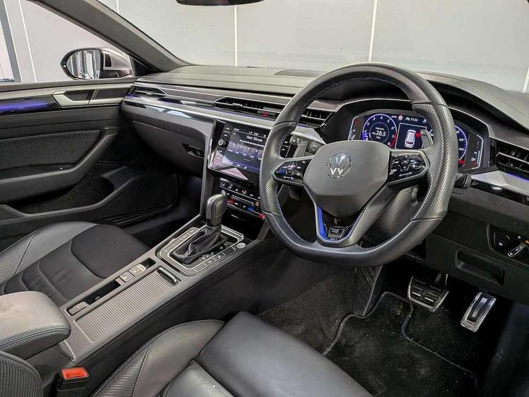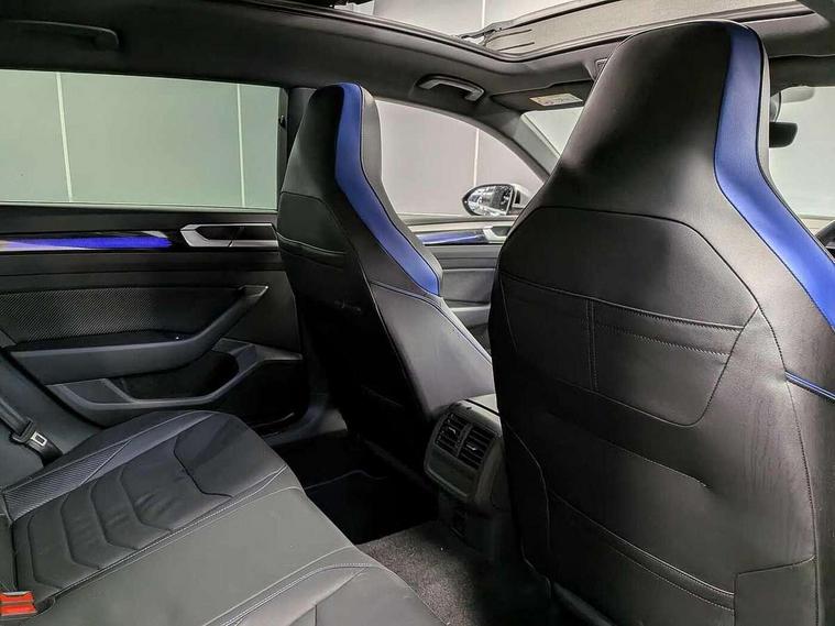 Adaptive cruise control (ACC) with speed limiter, front assist (reacting vehicles pedestrian and cyclists) and follow to stop, Advanced driver attention and drowsiness monitor, App connect including wireless Apple CarPlay, Camera for warning system, Digital cockpit with 10.25" high resolution TFT display screen with customisable menus and information, Driver profile selection including ECO function, Dynamic road sign display, eCall - Emergency call service for SOS calls to emergency response, Emergency assist, Hands free boot opening, Press and drive key, Progressive steering, R driving mode button on steering wheel, Side scan lane change assist including rear cross traffic alert, Speedo and rev counter, electronic odometer, trip, service interval display and exterior temperature gauge, Tailgate, Travel assist - Lane keeping assist and traffic jam assist, Voice activation for telephone and navigation, All wheel drive - 4Motion, Start/stop function with battery regeneration, XDS electronic differential lock, External, USB type C data sockets with increased charging performance front (45 Watt), Premium USB cable in choice of either Apple or Android smartphone compatibility, Auto dimming interior rear view mirror, Automatic coming/leaving home lighting function, Automatic headlights, Body colour door handles, Body colour side skirt, Body coloured top and matt black lower door mirrors with integrated indicators, Chrome side window surrounds, Dynamic headlight range control, Electric folding door mirror, adjustable, heated with front passenger exterior mirror lowering function, Front and rear electric windows, Front and rear stainless steel door sill protection, Front windscreen washers and wipers with 4x interval delay, Heat insulating side and rear windows, Heated rear windscreen, Heated windscreen washer jets, LED 3rd brake light, LED rear combination lamp with dynamic indicators, LED rear number plate lights, Left and right chrome effect twin trapezoid exhaust tailpipe surrounds, Panoramic sunroof with tilting and sliding including integrated roller blind, R Line design body coloured bumpers, R logo light projection, R logo on radiator grille, side panels and rear, R specific radiator grille, R specific rear bumper and R specific diffusor in black, Rain sensor, Rear fog lamp on one side and reversing lamp on both sides, Rear side wing doors, Rear tinted glass from B pillar backwards, approx 65% tinted, Rear windscreen washer and wiper with interval delay, Roof spoiler, 12V socket in front centre console, 12V socket on rear of front centre armrest, 14way electric adj front seats with lumbar + ergoComfort driver seat with memory/massage, comfort entry, integrated front headrest + door mirror memory, 3 rear head restraints, 3 seat bench in 2nd row, 30 colours options interior ambient lighting, 60:40 split folding rear seat backrests with centre armrest, Air care climatronic 3 Zone electronic air conditioning with automatic air recirculation, Chrome trim on upper and lower air vents extending across cockpit, Driver and front passenger sunvisor with vanity mirror, Front cupholders x 2, Front footwell illumination, Glovebox, Heated front seats, Height/reach adjust steering wheel, Isofix child seat preparation easy fit for two outer rear seats, Luggage compartment lighting, Nappa leather upholstery with side bolster and headrest, Pedals and footrest in stainless steel, Premium sports seats with R-logo, R performance leather wrapped heated multi-function sports steering wheel with touch controls and larger shifting paddles, blue stitching and R-logo, R specific floor mats with R-logo and stitching, Removable luggage compartment cover, Single front passenger seat, Split folding front seat backrest with front centre armrest, Titanium black roof lining, Two LED front reading light, 18" performance brakes, 3 rear three point seatbelts, ABS+EBD+Brake assist, Child locks on rear doors, Driver airbag and front passenger airbags with deactivation switch including driver knee airbags, Electronic parking brake, Electronic stability control (ESC) and Electromechanical brake booster, Front disc brakes, Front side airbags with curtain airbags, Hill start assist, Pro active occupant protection to detect critical situations with elevated accident potential from the front, R performance torque vectoring, R specific blue brake calipers, Rear disc brakes, Three point height adjust front seatbelts + pretensioners, Two tone horn, Tyre pressure monitor, Warning buzzer for seatbelts if unfastened, Warning triangle, Alarm with interior protection with deactivation via infotainment system, Electronic engine immobiliser, Keyless entry system including start/stop button on centre console, Remote central locking, Aluminium decorative inserts, Chrome trim on lower doors in front and rear, Leatherette insert on door and side trim panel in foam film, Piano black decorative inserts in centre console, R specific decor inlay aluminium black carbon,