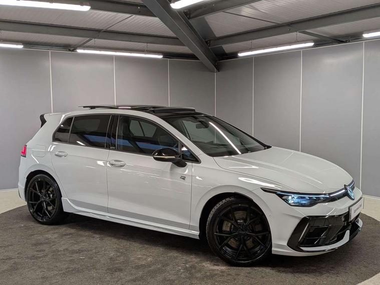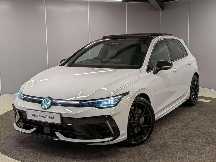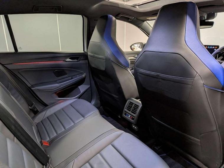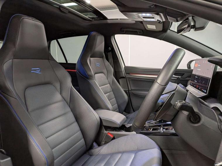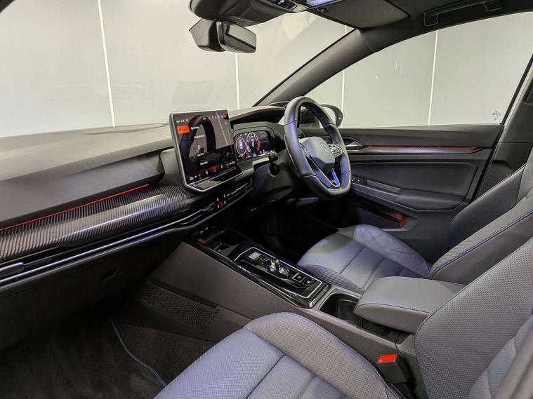 Activated carbon canister, Adaptive cruise control (ACC), Advanced driver attention and drowsiness monitor, Dynamic road sign display, E-Sim card for online connectivity, eCall emergency call system, Electronic maximum speed limit increased to 270 km/h, includes driving Modes 'drift' and 'special', larger roof spolier and GPS laptimer + G-Meter, Multi-color Digital cockpit pro, selection of different info profile possible, Multifunction front facing camera for distance control, Navigation system, Oncoming vehicle braking when turning including swerve support, Progressive steering, Side assist blind spot lane change system, rear traffic alert and exit warning system, Speed limiter, Speedo, rev counter, electronic odometer, trip, service interval display, exterior temperature and fuel gauge, Traffic jam assist, Voice enhancer and voice control, Warning signal and warning light for front and rear seatbelts not fastened, We connect plus preparation, We connect preparation, Wireless app connect, All wheel drive - 4Motion, Petrol Particulate Filter, Start-stop system with battery regeneration (recuperation - energy recovery during braking), XDS electronic differential lock for improved traction and handling, 2 USB C ports in front, 2 USB charging sockets on the centre console in the rear charging capacity upto 45W, Digital radio reception (DAB), Diversity antenna for FM reception, Gaming platform via car app, Infotainment system with 12.9" display, Mobile phone interface with inductive charging feature, 3rd brake light, Auto dimming rear view mirror, Automatic headlamp activation with Coming home and Leaving home feature, Black badge on B-pillar, Black mirror caps, Black strips on radiator grille and headlights, Body colour door handles, Darkened headlights, Darkened R Logos and VW logos in front, rear and on fender, Exterior mirrors convex on the left and aspherical on the right, Front and rear electric windows, Front fog lamps and cornering light, Heat insulating windshield made of laminated glass, Illuminated lighting animation with wake up/goodbye scenario, LED matrix headlights with ambient light V2, advanced high beam, dynamic range contol with cornering, LED rear lamp with indicator, poor weather, LED separate daytime running light, Light assist with High beam control, R name plate, Rain sensor, Rear fog light on one side and reversing lights on both sides, Rear side wing doors, Rear tinted glass 65% light absorbing from B pillar backwards, Rear windscreen washer and wiper with interval delay, Remote electrically foldable door mirrors, puddle lights and reverse activated passenger's door mirror, Welcome light with surround lighting, 12V socket in front centre console, 12V socket in luggage compartment, 3 rear head restraints, 3 seat bench in 2nd row, 30 colour ambient lighting, illuminated center console storage compartment in front, Air care climatronic 3 Zone automatic climate control with rear air conditioning control panel, Aluminium gearshift handle, Brushed stainless steel pedals, Chrome plated radiator grille inserts, air vent surrounds and light switch surrounds, Entry lights, Front + rear black carpet mats, Front centre armrest, Integrated front head restraints, ISOFIX anchors for child seats on outer rear bench seats and on front passanger seat compatible for i-Size, Luggage compartment lighting, Rear cupholder and loadthough, Single front passenger seat, Soul black instrument panel, Soul black roof lining, Split folding backrest with centre armrest and unsplit rear seat bench, Sun visors with illuminated vanity mirrors, Driver assistance pack - Golf Estate/Hatchback Auto, R styling pack - Golf, Technology park and comfort pro package - Golf Hatchback, 3 point height adj front seatbelts + pretensioners, 3 rear three point seatbelts, ABS, Autonomous emergency braking front assist with pedestrian and cyclist monitoring, Child locks on rear doors, Driver and front passenger airbag with front passenger airbag deactivation, Electronic parking brake with auto hold, ESC (Electronic Stability Control), Extended pedestrian protection measures, Front and rear black brake calipers with darkened R-logo, Hill start assist, Rear disc brakes, Two tone horn, Tyre pressure loss indicator, Volkswagen roadside assistance, Anti theft wheel bolts, Preparation for alcohol interlock, Sporty vehicle dynamics, Tool kit for tyre mobility set, Tyre mobility kit Includes 12V compressor and tyre sealant, Wheel hub cover with darkened R-logo,