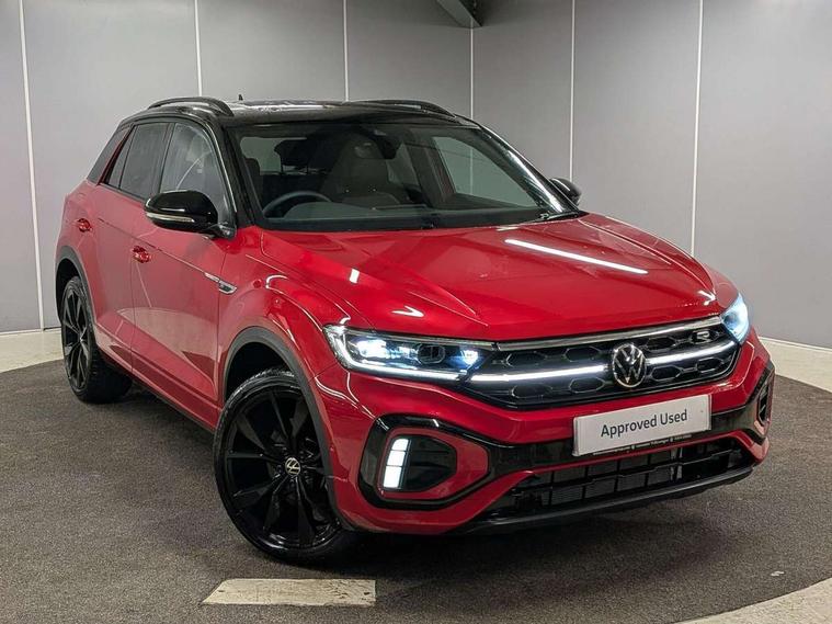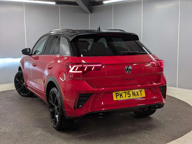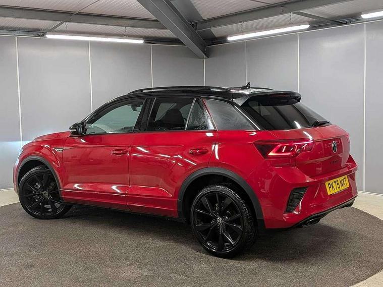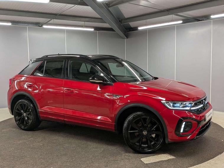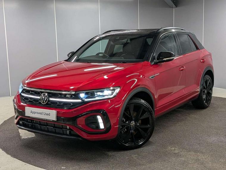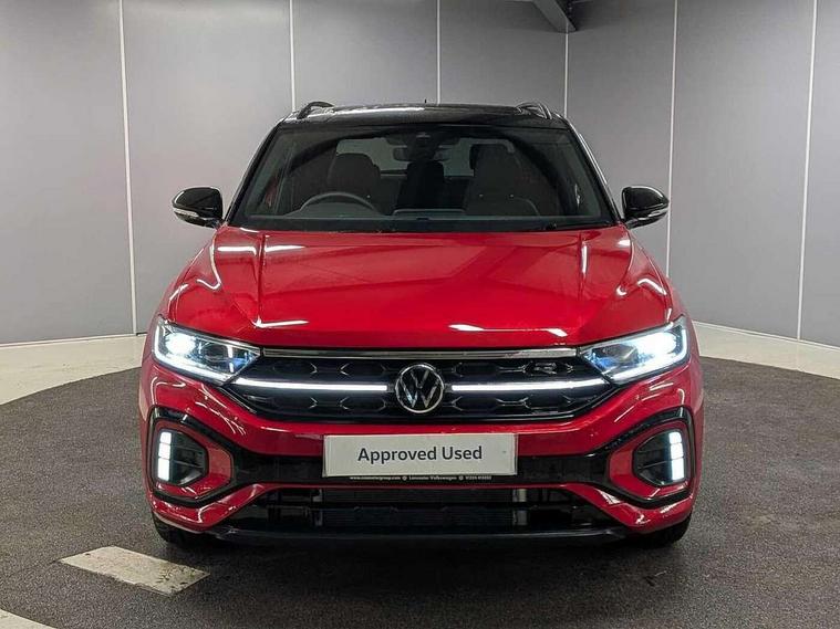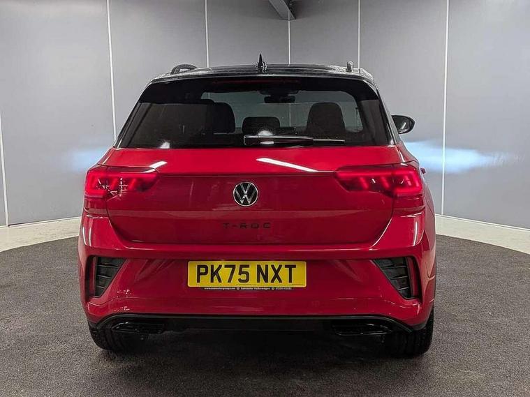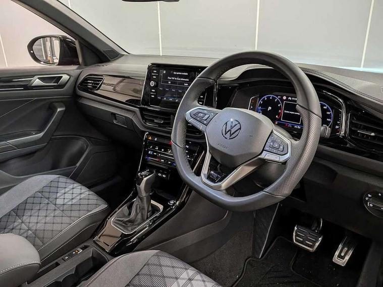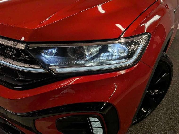 10.25" Digital cockpit pro, Advanced driver attention and drowsiness monitor, Emergency call service, Lane keeping system Lane Assist, Mobile phone interface, Modified key software - reduce switch off time for key status change to Long no motion, Online services, Park assist including front and rear parking sensors, Power assisted speed sensitive steering, Rear view camera, Service interval indicator, Tailgate/trunk lid release from outside, Think blue trainer driver tips and journey analysis, Warning sound and light for front seatbelts unfastened, Wireless app connect, Battery regeneration during braking, Rear shock absorption chassis with increased ride height, Start/stop function with battery regeneration, DAB Digital radio, Diversity antenna for FM reception, Music playback - MP3, WMA and AAC files, SD card slot, Simultaneous pairing of 2 compatible mobile devices, Title and cover art display, We Connect and We Connect Plus functionality, Advanced dynamic light assist for LED matrix headlights, Auto dimming interior rear view mirror, Automatic hazard lights activation under emergency braking, Black roof rails, Dynamic cornering light, Dynamic headlight range control with self adjusting whilst driving, Electrically adjustable and heated door mirrors, Extended roof spoiler, Exterior ambient lighting, Exterior mirrors aspherical on driver side, convex on front passenger side, External USB type C socket and charging sockets, Front windscreen wiper with intermittent wipe and 4 position delay, Heated rear window, Illuminated front grille, IQ LED matrix headlights, LED 3rd brake light, LED rear number plate lights, LED rear tail lights with dynamic turn signal, LED separate daytime running light, Light mode for poor weather, rain, fog or snow, Power windows with comfort operation and circuit breaker, Privacy glass for rear side windows and rear window, R-Line design body coloured bumpers, Rain sensor, Rear exhaust tailpipe, Rear fog light on one side and reversing lights on both sides, Rear side wing doors, Rear wash/wipe with intermittent wipe setting, Remote electrically foldable door mirrors, puddle lights and reverse activated passenger's door mirror, Tilting and sliding panoramic sunroof with rear panoramic sunroof, 12V power socket in centre console, 3 rear head restraints, 3 seat bench in 2nd row, 4 load lashing points in luggage compartment, Air care climatronic air conditoning system with active combination filter and 2-zone temperature control, Chrome plated radiator grille inserts, air vent surrounds and light switch surrounds, Door and side trim panel with leatherette insert, Drawer under drivers seat, Front + rear carpet mats, Front centre armrest, Front comfort sports seats, Front cupholders x 2, Front footwell illumination, Front reading light, Front scuff plates with R Line logo, Front seat back storage pockets, Glove compartment door with light, Instrument lighting, white adjustable panel illumination, Interior ambient lighting and surround lighting, Interior light delay, Isofix child seat preparation, Leather gearshift handle, Load-through provision with cup holder when folded down ('Unsplit rear seat bench, split folding backrest, with centre armrest), Luggage compartment lighting, Non-folding front passenger seat backrest, Single front passenger seat, Stainless steel pedals, Storage compartment in left and right luggage area, Storage compartment in rear doors, Storage compartments in driver and front passenger doors, Sunvisors with illuminated vanity mirrors, Variable boot floor, height adjustable and removable, Black design pack - T-Roc black edition plus, Easy open package with safelock - T-Roc, Sport pack with sports suspension - T-Roc, 3 point height adj front seatbelts + pretensioners, 3 point seatbelts in outer rear with ECE label, ABS, Child locks on rear doors, City emergency braking and pedestrian monitoring, Driver and front passenger airbag with front passenger airbag deactivation, Driver and front passenger safety-optimised head restraints, Drivers seatbelt reminder, Electronic parking brake, Electronic Stability Control (ESC) inc EDL (Electronic Differential Lock) and ASR (Traction Control), Front and rear passengers curtain airbag system including front side airbags, Front disc brakes, Hill start assist, Predictive pedestrian protection, Rear disc brakes, Two tone horn, Tyre pressure loss indicator, Volkswagen roadside assistance, Keyless locking and starting system keyless access with safelock, Gloss deep iron dash trim, 19" Misano black diamond turned alloy wheels with low rolling resistance and anti theft wheel bolts, Tool kit, Trims for alloy wheels, Tyre mobility kit including compressor and sealing foam,