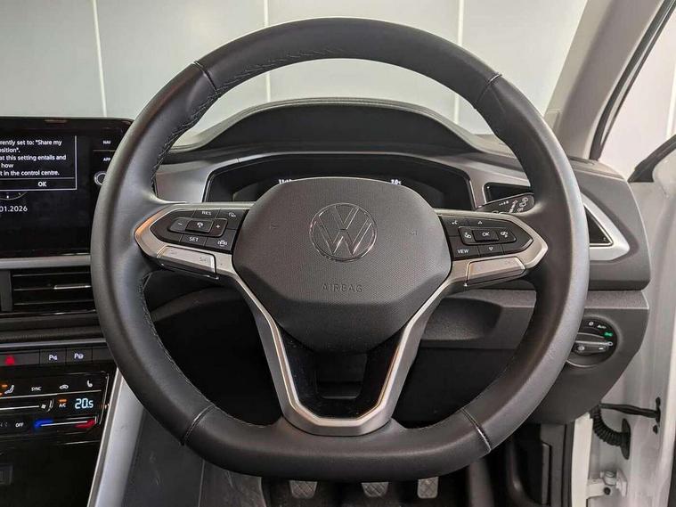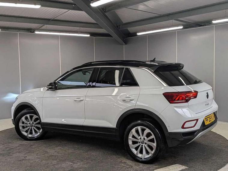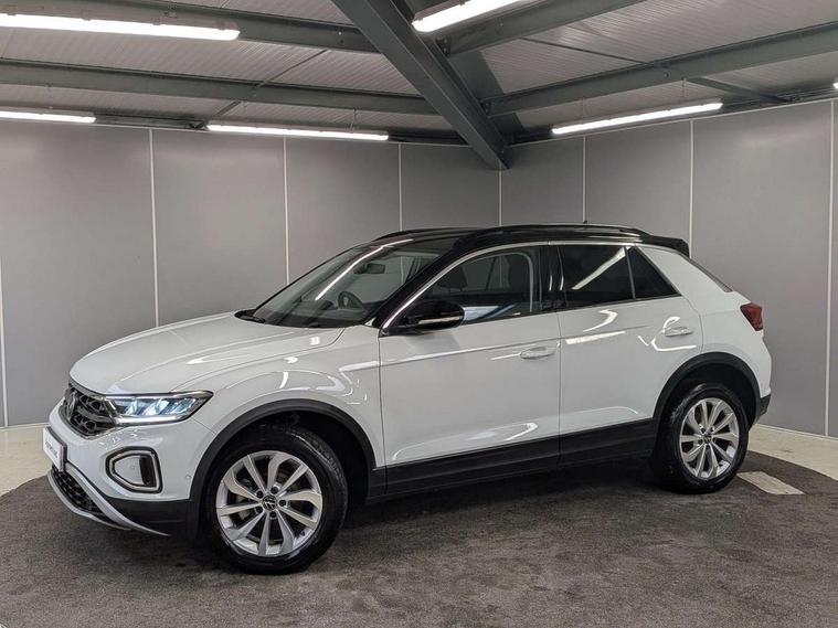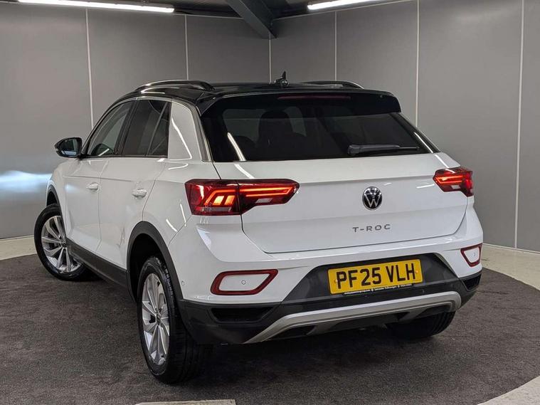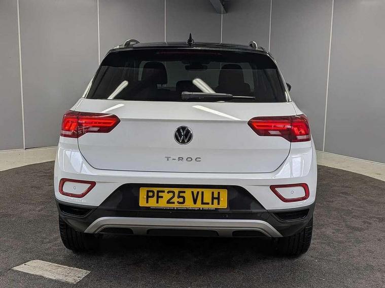 Advanced driver attention and drowsiness monitor, Dynamic road sign display, Emergency call service, Lane keeping system Lane Assist, Mobile phone interface, Modified key software - reduce switch off time for key status change to Long no motion, Online services, Park assist including front and rear parking sensors, Power assisted speed sensitive steering, Rear view camera, Service interval indicator, Tailgate/trunk lid release from outside, Think blue trainer driver tips and journey analysis, Warning sound and light for front seatbelts unfastened, Wireless app connect, Battery regeneration during braking, Front shock absorption, Rear shock absorption chassis with increased ride height, Start/stop function with battery regeneration, DAB Digital radio, Diversity antenna for FM reception, Music playback - MP3, WMA and AAC files, SD card slot, Simultaneous pairing of 2 compatible mobile devices, Title and cover art display, We Connect and We Connect Plus functionality, Auto dimming interior rear view mirror, Automatic hazard lights activation under emergency braking, Automatic headlight control with LED separate daytime running lights with coming/leaving home function, Black roof rails, Body coloured bumpers and radiator grille with chrome trim and front fog lamps with chrome bezel, Body coloured exterior mirror housings and door handles, Electrically adjustable and heated door mirrors, Extended roof spoiler, Exterior mirrors aspherical on driver side, convex on front passenger side, External USB type C socket and charging sockets, Front windscreen wiper with intermittent wipe and 4 position delay, Heated rear window, LED 3rd brake light, LED rear combination lamps, LED rear number plate lights, Power windows with comfort operation and circuit breaker, Privacy glass for rear side windows and rear window, Rain sensor, Rear exhaust tailpipe, Rear fog light on one side and reversing lights on both sides, Rear side wing doors, Rear wash/wipe with intermittent wipe setting, Remote electrically foldable door mirrors, puddle lights and reverse activated passenger's door mirror, 12V power socket in centre console, 3 rear head restraints, 3 seat bench in 2nd row, 4 load lashing points in luggage compartment, Air care climatronic air conditoning system with active combination filter and 2-zone temperature control, Black stitching for floor mats, Ceramique roof liner, Cloth upholstery, Door and side trim panel in cloth, Drawer under drivers seat, Driver/front passenger seat height adjustment, Front centre armrest, Front comfort sports seats, Front cupholders x 2, Front reading light, Front seat back storage pockets, Glove compartment door with light, Instrument lighting, white adjustable panel illumination, Interior ambient lighting and surround lighting, Interior light delay, Isofix child seat preparation, Leather gearshift handle, Load-through provision with cup holder when folded down ('Unsplit rear seat bench, split folding backrest, with centre armrest), Luggage compartment lighting, Lumbar support for driver's and front passengers seat, Non-folding front passenger seat backrest, Single front passenger seat, Storage compartment in left and right luggage area, Storage compartment in rear doors, Storage compartments in driver and front passenger doors, Sunvisors with illuminated vanity mirrors, Variable boot floor, height adjustable and removable, Driver assistance pack without proactive passenger protection - T-Roc Life/Match, 3 point height adj front seatbelts + pretensioners, 3 point seatbelts in outer rear with ECE label, ABS, Child locks on rear doors, City emergency braking and pedestrian monitoring, Driver and front passenger airbag with front passenger airbag deactivation, Driver and front passenger safety-optimised head restraints, Drivers seatbelt reminder, Electronic parking brake, Electronic Stability Control (ESC) inc EDL (Electronic Differential Lock) and ASR (Traction Control), Front and rear passengers curtain airbag system including front side airbags, Front disc brakes, Hill start assist, Predictive pedestrian protection, Rear disc brakes, Two tone horn, Tyre pressure loss indicator, Volkswagen roadside assistance, Alarm with interior protection, Keyless locking and starting system keyless access with safelock, Pewter matt decorative inserts for intrument panel, centre console and door panels at the front, Trims for alloy wheels,