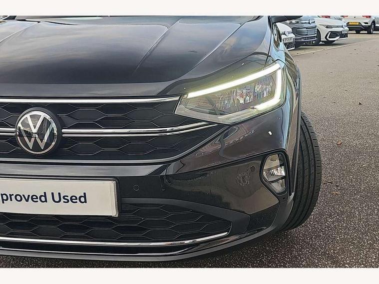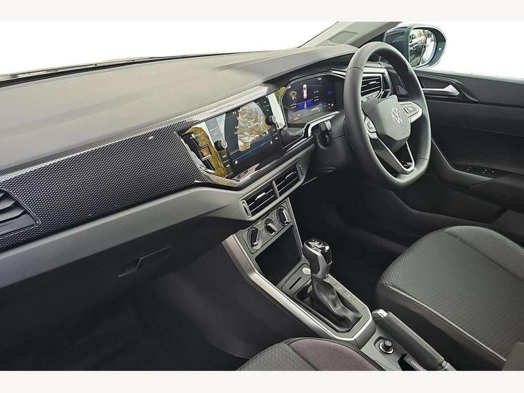 8" Digital cockpit basic display, Adaptive cruise control, Advanced driver attention and drowsiness monitor, Dynamic road sign display, e-Call (emergency call), Power Steering, Rear view camera, Travel assist including emergency assist, Washer fluid level indicator, Wireless Charging including Bluetooth, Start-stop system with battery regeneration (recuperation - energy recovery during braking), Digital radio reception (DAB+), WeConnect plus, Ambient lighting with logo projection, Aspherical driver's exterior mirror, Body coloured bumpers, Body coloured exterior mirror housings and door handles, Electric windows, External USB type C socket and charging sockets, Heat insulating glass windscreen, LED rear combination lamp, LED third brake light, Left convex exterior mirror, Power folding adjustable/heated exterior mirrors and front passenger exterior mirror lowering function, Rear fog light on one side, reversing light on both sides, Rear side wing doors, Rear wash/wipe with intermittent wipe setting, Side windows in heat-insulating glass, from B-pillar and rear window dark tinted, 'Slash/ Austin' Cloth upholstery, 12V socket in centre console, 2 front reading lights, 3 rear head restraints, 3 seat bench in 2nd row, Black carpets, Ceramique headliner, Child seat anchor for child seat system i-Size, 2x top tether and child seat anchor in front on front passenger side, Door and side trim panels in titan black, Driver and front passenger seat height adjustment, Front centre armrest, Handbrake lever handle in leather, Height and reach adjustable steering wheel, Leather trimmed gear knob, Leather wrapped multifunction steering wheel with paddle shift, Luggage compartment floor, Luggage compartment light, Lumbar support for driver's and front passengers seat, Seat covers in titanium black, Single front passenger seat, Split folding backrest with centre armrest and unsplit rear seat bench, Storage compartment under front seats, Sun visors with illuminated vanity mirrors, Titanium black instrument panel, Chrome Package - Taigo, Drivers assistance package - Taigo, Light and sight pack - Taigo, 2 x 3-point seatbelts/outer rear seats with ECE label, 3-point seat belts in front with pretensioner and height adjustment, 3-point seatbelt for centre rear seat, Driver and front passenger airbag with front passenger airbag deactivation, Driver and front passenger safety-optimised head restraints, Electronic stability control, Extended and predictive pedestrian/ cyclist protection, Front and rear disc brakes, Front curtain and side airbags with center airbag, Hill start assist, Manual rear child locks, Single tone horn, Tyre pressure loss indicator, Anti-theft alarm system with interior monitoring, backup horn, and towing protection, Keyless locking and starting system keyless access with safelock, Black (slush) Dashboard, Lava stone black gloss/matt decorative inserts in dash and front door panels, Low rolling resistance tyres,