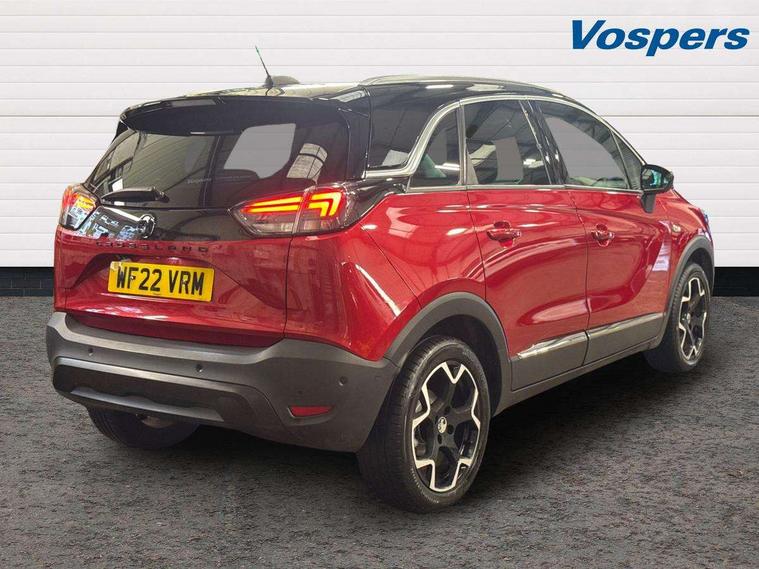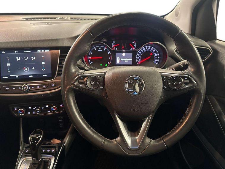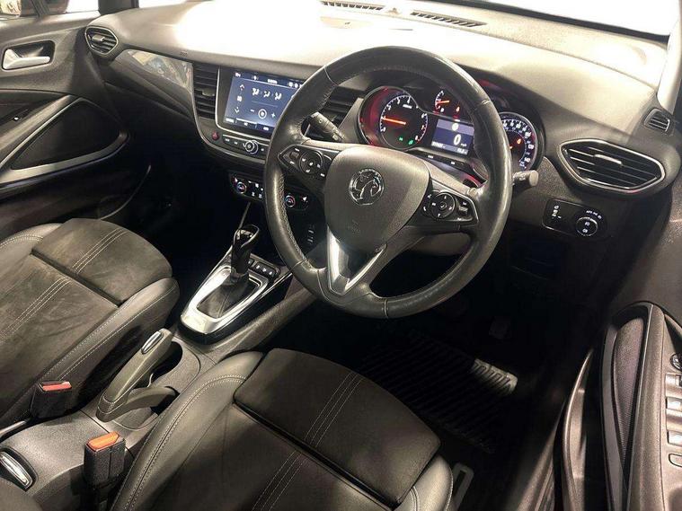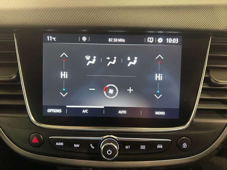 3.5" colour instrument display, Audible lights on warning, Cruise control + speed limiter, Digital clock with automatic RDS time adjustment, E-call, Forward collision warning, Front camera system, Instrumentation - Speedometer, rev counter, low fuel gauge warning light + water temperature gauge warning light, shift up/down indicate light, Lane departure warning system, Multi function trip computer, Multimedia sat nav pro with 8" colour touchscreen, AM/FM, Bluetooth streaming, Bluetooth mobile phone portal, apple CarPlay/Android Auto + 6 speakers, Outside temperature display with ice warning, Panoramic rear view camera, Refridgerant low indicator, Service interval indicator, Speed sensitive power steering, Speed sign recognition, Start/stop system, Without wireless charger, Front wheel drive, 2 x USB connections, DAB Digital radio, Steering wheel mounted audio/phone/cruise controls, 2 speed wipers/wash wipe/intermittent wipe, Automatic anti dazzle rear view mirror, Automatic headlamp levelling system, Automatic high beam control with cornering light, Automatic lighting control, Black door mirror housings, Black griffin logo, vizor frame, rear lettering and skid plates, Black radiator grille with chrome bar, Black roof, Body colour door handles, Body colour front and rear bumpers, Chrome effect upper window moulding, Dark tinted rear side windows + tailgate window, Electric folding door mirrors, Electrically adjustable and heated door mirrors, Flexible roof mounted aerial, Front power windows with express up/down and anti-pinch function, Hazard warning lights, Headlamps for left side traffic, Heated rear window, Integrated tailgate spoiler, Intermittent rear wash/wipe, LED 3rd brake light, LED daytime running lights, LED front fog lights, LED Headlights, LED side repeat indicators, LED tail lights, Rain sensitive windscreen wipers, Rear fog lights, Rear power windows with express up/down and anti-pinch function, Rear screen wiper - intermittent, Rear side wing doors, Reversing light, Side window demist vents, Silver effect side door mouldings, Silver roof rails, Solar heat absorbing windscreen and windows, Welcome lighting, Windscreen demist vents, 12v power outlet - front, 12V power outlets on rear seat, 2 way front passive headrests, 3 seat bench in 2nd row, 3 spoke flat bottomed leather covered steering wheel with bezel decoration, 4 way electrically adjustable lumbar support for drivers seat, 4 way electrically adjustable lumbar support for front passenger seat, Adjustable rear seat backrest, Air recirculation facility, Alcantara suede/vinyl upholstery, Ambient lighting, Anti submarining ramps in front seats, Cabin particulate filter - removes dust, airborne particles and pollen, Driver and front passenger illuminated vanity mirrors with flip up covers, Dual zone electronic climate control, Ergonomic active front seats with 8 way manual adjustable driver and front passenger seats with height, reach, and backrest, Fade up/fade down on interior lighting, Four adjustable facia vents, Front door pockets with bottle holders, Front map reading lights, Fully carpeted luggage area, Glovebox with lid, Height adjustable front/rear head restraints, Illuminated load area, Interior courtesy light operated by all doors, Isofix system on outer rear seats, Jet black premium leather side bolsters, Luggage compartment cover, Multi-speed fan with Illuminated control, Open storage compartment in centre console, Passenger assist handles, Reach + rake adjustable steering column, Rear centre armrest, Rear door pockets with bottle holders, Rear floor ventilation ducts, Rear reading lights, Satin chrome effect bezel on steering wheel, Seat cushion extension, Single front passenger seat, Storage pockets on front seat backs, Two drinks holders in centre console, Uplevel centre console front centre armrest with storage, Winter pack - Crossland, 3x3 point rear seatbelts, 6 airbags - Driver and co-driver front, front side, head curtain roof airbags, front and rear row coverage airbags, ABS, Automatic emergency braking with pedestrian detection, Child locks on rear doors, CSC - Cornering stability control, Deactivate switch for side impact airbags, Deformation zones front and rear, Driver drowsiness alert system, Dual seatbelt pretensioners on front seats, EBD - Electronic brakeforce distribution, Energy absorbing steering column, Engine drag torque control, ESP + traction control, Front and rear seatbelt unfastened audible warning and warning light, Front side impact airbag, HBA (Hydraulic Brake Assist), Hill start assist, Hydraulic brake boost, Inertia reel lap and diagonal seatbelts for all seats, Passenger airbag deactivate switch, Pedestrian detection, Rear seat belt pretensioners, Reinforced passenger safety cell, Seatbelt load limiter, Side impact protection beams, Smart seatbelt reminder for front and rear seats, Tyre pressure monitoring system, 2 remote folding keys, Electronically protected audio equipment, Engine immobiliser, Keyless entry and start, Locking wheel nuts, Remote central deadlocking, Remote control central locking activation switch on driver door, Remote control central locking operates on doors, tailgate and fuel filler flap, Remote security alarm system, Visible vehicle identification number, Black facia with silver trim insert, Black trim inserts on front doors, Cluster black with chrome rings, 17" five twin spoke diamond bi colour alloy wheels,