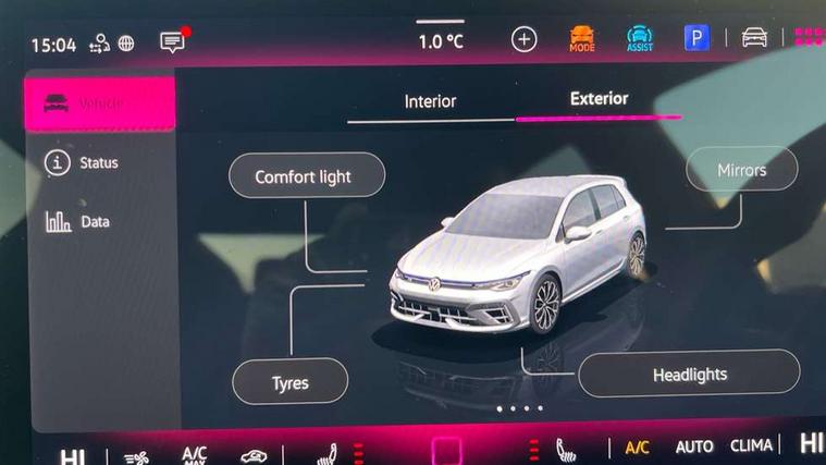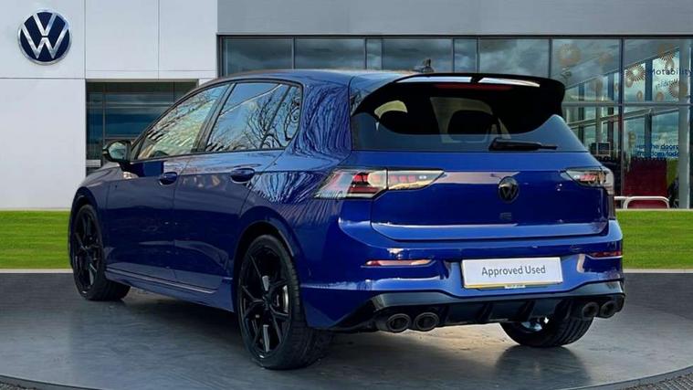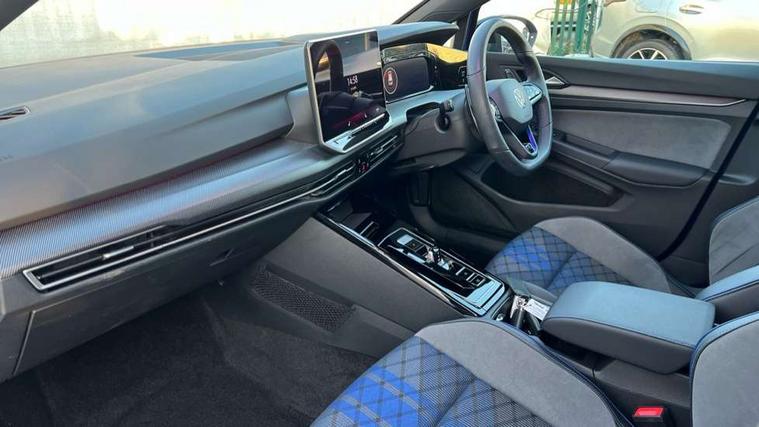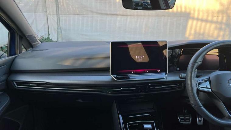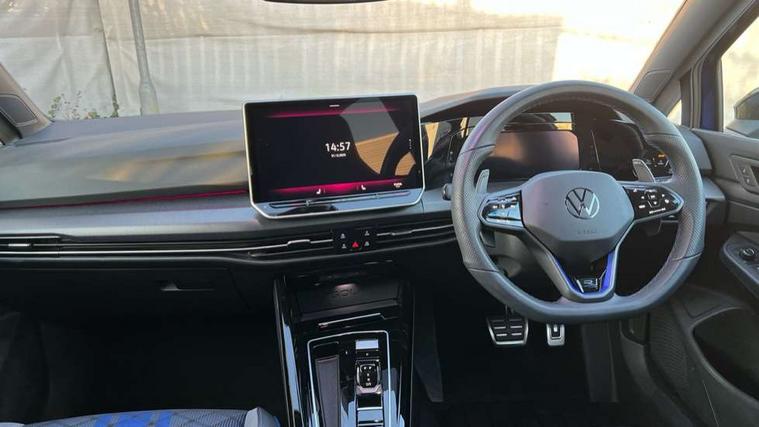 Activated carbon canister, Adaptive cruise control (ACC), Advanced driver attention and drowsiness monitor, Dynamic road sign display, E-Sim card for online connectivity, eCall emergency call system, Electronic maximum speed limit increased to 270 km/h, includes driving Modes 'drift' and 'special', larger roof spolier and GPS laptimer + G-Meter, Multi-color Digital cockpit pro, selection of different info profile possible, Multifunction front facing camera for distance control, Navigation system, Oncoming vehicle braking when turning including swerve support, Side assist blind spot lane change system, rear traffic alert and exit warning system, Speed limiter, Speedo, rev counter, electronic odometer, trip, service interval display, exterior temperature and fuel gauge, Traffic jam assist, Voice enhancer and voice control, Warning signal and warning light for front and rear seatbelts not fastened, We connect plus preparation, We connect preparation, Wireless app connect, All wheel drive - 4Motion, Petrol Particulate Filter, Start-stop system with battery regeneration (recuperation - energy recovery during braking), XDS electronic differential lock for improved traction and handling, 2 USB C ports in front, 2 USB charging sockets on the centre console in the rear charging capacity upto 45W, Digital radio reception (DAB), Diversity antenna for FM reception, Gaming platform via car app, Infotainment system with 12.9" display, Mobile phone interface with inductive charging feature, 3rd brake light, Auto dimming rear view mirror, Automatic headlamp activation with Coming home and Leaving home feature, Black badge on B-pillar, Black mirror caps, Black strips on radiator grille and headlights, Body colour door handles, Darkened headlights, Darkened R Logos and VW logos in front, rear and on fender, Exterior mirrors convex on the left and aspherical on the right, Front and rear electric windows, Front fog lamps and cornering light, Heat insulating windshield made of laminated glass, Illuminated lighting animation with wake up/goodbye scenario, LED matrix headlights with ambient light V2, advanced high beam, dynamic range contol with cornering, LED rear lamp with indicator, poor weather, LED separate daytime running light, R name plate, Rain sensor, Rear fog light on one side and reversing lights on both sides, Rear side wing doors, Rear tinted glass 65% light absorbing from B pillar backwards, Rear windscreen washer and wiper with interval delay, Remote electrically foldable door mirrors, puddle lights and reverse activated passenger's door mirror, Welcome light with surround lighting, 12V socket in front centre console, 12V socket in luggage compartment, 3 rear head restraints, 3 seat bench in 2nd row, 30 colour ambient lighting, illuminated center console storage compartment in front, Air care climatronic 3 Zone automatic climate control with rear air conditioning control panel, Aluminium gearshift handle, Brushed stainless steel pedals, Chrome plated radiator grille inserts, air vent surrounds and light switch surrounds, Entry lights, Front + rear black carpet mats, Front centre armrest, Integrated front head restraints, ISOFIX anchors for child seats on outer rear bench seats and on front passanger seat compatible for i-Size, Luggage compartment lighting, Rear cupholder and loadthough, Single front passenger seat, Soul black instrument panel, Soul black roof lining, Split folding backrest with centre armrest and unsplit rear seat bench, Sun visors with illuminated vanity mirrors, Driver assistance pack - Golf Estate/Hatchback Auto, R styling pack - Golf, Technology park and comfort pro package - Golf Hatchback, 3 point height adj front seatbelts + pretensioners, 3 rear three point seatbelts, ABS, Autonomous emergency braking front assist with pedestrian and cyclist monitoring, Child locks on rear doors, Driver and front passenger airbag with front passenger airbag deactivation, Electronic parking brake with auto hold, ESC (Electronic Stability Control), Extended pedestrian protection measures, Front and rear black brake calipers with darkened R-logo, Hill start assist, Rear disc brakes, Two tone horn, Tyre pressure loss indicator, Volkswagen roadside assistance, Anti theft wheel bolts, Preparation for alcohol interlock, 19" Estoril alloy wheels in black with progressive steering, Sporty vehicle dynamics, Tool kit for tyre mobility set, Tyre mobility kit Includes 12V compressor and tyre sealant, Wheel hub cover with darkened R-logo,