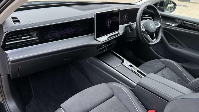 2 x Front USB-C ports, 2 x USB-C charging sockets on the centre console in the rear, charging capacity up to 45W, Adaptive cruise control, Advanced driver attention and drowsiness monitor, Chat GPT function for IDA voice assistant, Digital cockpit pro 10.25" high resolution, Discover media navigation system includes streaming and internet, Dynamic road sign display, E-Sim card for online connectivity, eCall emergency call service, Electronic engine sound, Full electric tailgate operation, Inductive smartphone charging without external antenna connection, Memory feature for park assist, Oncoming vehicle braking when turning including swerve support, Park assist pro with park distance control (Remote park assist), Predictive speed limiter, Preparation for We connect and We connect plus, Wireless app connect, Battery 340 A (58 Ah), Front wheel drive, Petrol Particulate Filter, 8 Speakers, Auto dimming interior rear view mirror, Automatic headlights, Body colour bumpers, Body colour door handles, Electric panoramic sunroof, tilting and sliding panoramic sunroof with rear panoramic sunroof, Heated windscreen washer jets, Laminated safety glass windshield, heat and sound insulating, LED third brake light, Rain sensor, Rear side wing doors, Rear wiper, Welcome light with surround lighting, 3 seat bench in 2nd row, 3 zone air care climatronic with rear air conditioning control panel, 30 colours options interior ambient lighting, Front + rear carpet mats, Front head restraints, Front sports comfort seats, Isofix child seat preparation, easy-fit (for two outer rear seats, and front passenger seat), compatible with I-size, Leather-wrapped, heated and multi-function steering wheel with shift paddles, Luggage compartment cover, power operated, Rear centre armrest, Single front passenger seat, Standard pedal cluster, Sun visors with illuminated vanity mirrors for driver and front passenger, Sunblind for rear side windows, Three rear head restraints, Unsplit rear seat bench, split folding backrest, Acoustics pack - Passat Estate, LED High matrix headlamps pack - Passat, 3x3 point rear seat belts, ABS (Anti locking brake system) includes BAS (Brake assist) and EBD (Electronic brake pressure distribution), Autonomous emergency braking front assist with pedestrian and cyclist monitoring, Disc brakes in front, Driver/Front Passenger airbags, Drivers knee airbag, Electronic parking brake with auto hold, ESC (Electronic stability control) + EDL (Electronic Differential lock) and ASR (Traction control), EDTC (Engine drag torque control), Extended safety system with proactive passenger protection system, Front passenger airbag deactivation switch, Hill hold function, Tyre pressure loss indicator, Warning triangle and first aid kit, Alarm with interior protection, Electronic engine immobiliser, Keyless locking and starting system keyless access with safelock, Aluminium decorative inserts, Tool kit for tyre mobility set, Trims for alloy wheels, Tyre mobility kit including compressor and sealing foam,