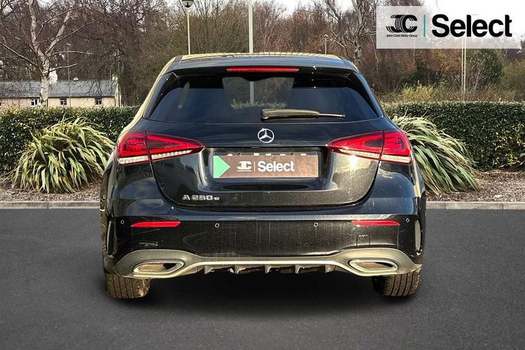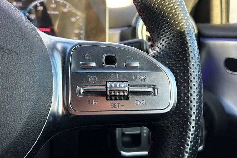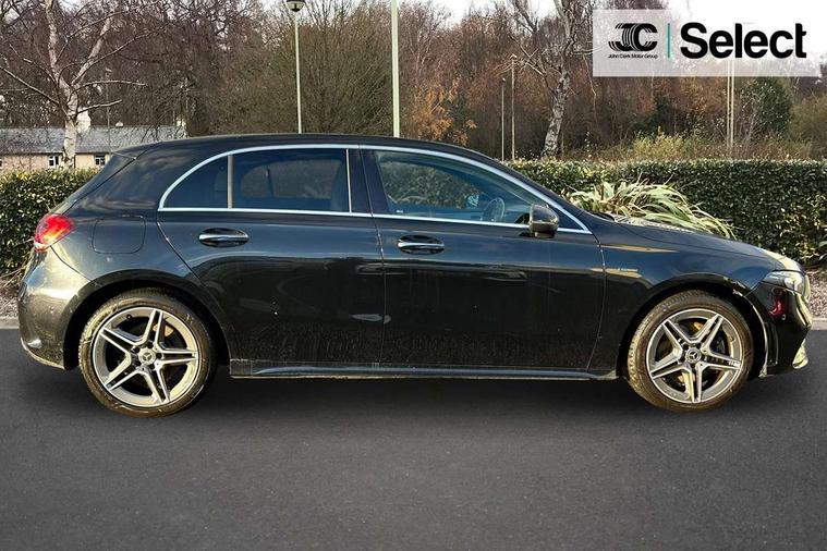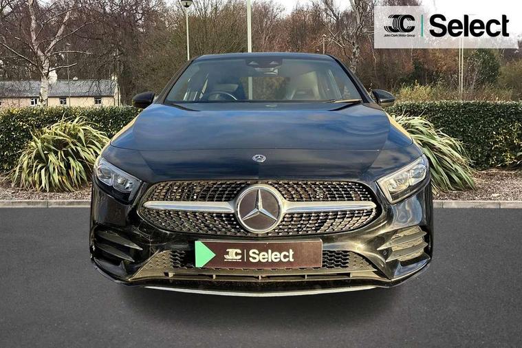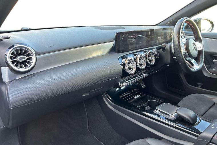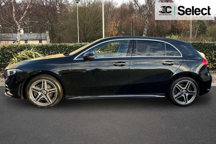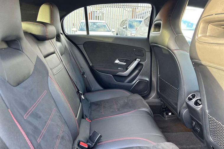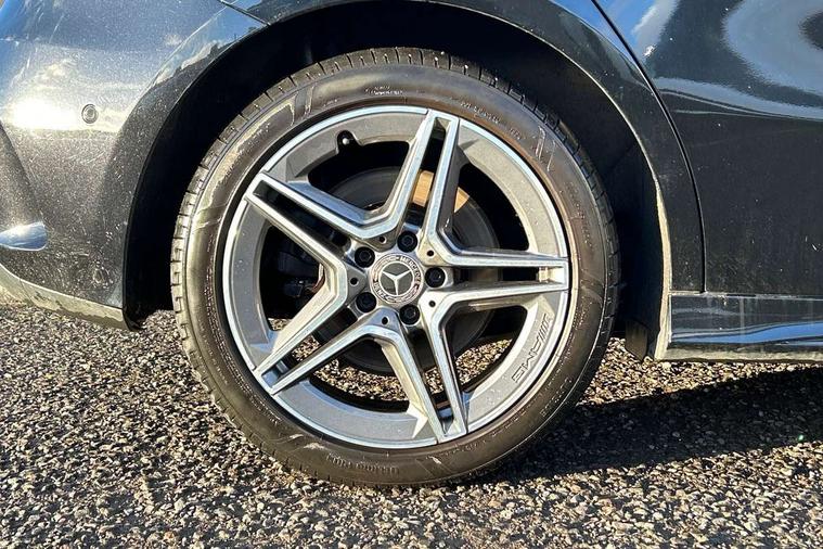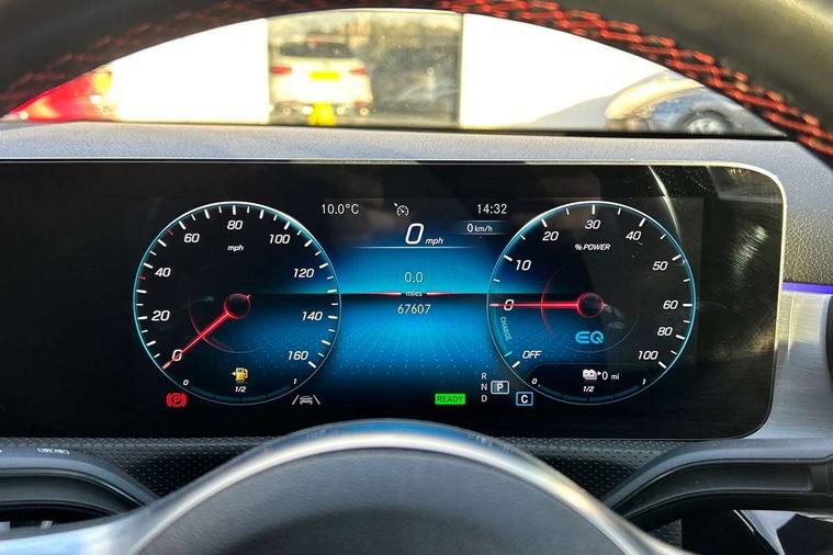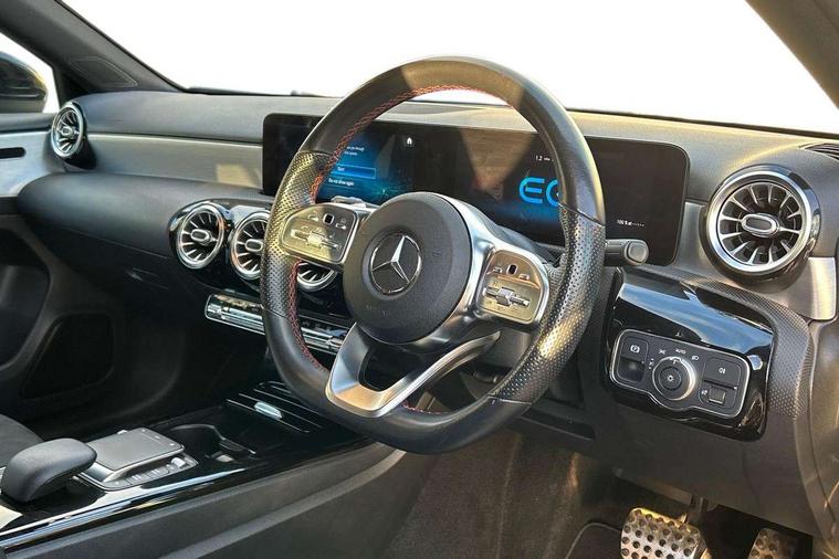 10.25" Digital instrument cluster display screen, 10.25" media display, 180 degree rear view camera with parking guidelines, Acoustic ambient protection, Active lane keep assist, Active park assist with parktronic system including front and rear parking sensors, Attention assist, Brake pad wear indicator warning light, Car wash mode, Cruise control + speed limiter, Direct steering, Dual bluetooth interfaces, DYNAMIC SELECT with a choice of driving modes (ECO, Comfort, Sport and Individual), ECO start/stop function, Fluid level warning indicator for fuel, oil, coolant and washer fluid, Hard-disk navigation, Hey Mercedes Voice activation, Lamp failure indicator, MBUX augmented reality for navigation, Mercedes me connect including emergency call system, accident recovery, breakdown and maintenance management, Outside temperature gauge, Owners manual in English, Pre-installation for private car sharing, Pre-installation for Vehicle Monitoring, Pre-installation for Vehicle Setup, Preinstallation for Mercedes Benz link, Service indicator (ASSYST), Smartphone integration with Apple CarPlay and Android auto, Speed sensitive power steering, Trip computer, Wireless charging, 7.4 kW monophase on board charger, Comfort suspension, Mode 3 charging cable 11 kW, Rear axle multi-link, 10 speakers, 2 USB ports (type C) in rear stowage compartment and one in front of center console, DAB Digital radio, MBUX multimedia system with DAB digital radio and touchpad including satellite navigation, Mercedes-Benz advanced sound system - 225W, 4 Electric Front and Rear windows, Adaptive brake lights, AMG bodystyling - Front apron with splitter in chrome, rear apron with chrome trim and chrome visible trim elements in tailpipe, Black weather strip, Body colour bumpers, Body colour door handles, Body colour side skirt, Body coloured door mirrors, Chrome beltline trim, Diamond radiator grille with chrome pins and silver louvre + chrome insert, Electric adjustable and heated door mirrors with integrated LED side indicators, EQ badging, Exhaust system - Twin visible tailpipes in polished stainless steel, Headlamp assist automatic headlamp activation, Heated glass rear windscreen + timer control, Illuminated front door sill panels with Mercedes-Benz lettering, LED high performance headlamps with integrated LED daytime running lights, LED tail lamp, LED third brake light, Privacy glass, Radio aerial, Rain sensing windscreen wipers with two sensitivity settings, Rear fog lights, Rear wiper, Window line trim strip in chrome, 3 Spoke flat bottom leather multi function steering wheel with perforated leather in grip area, 40:20:40 split folding rear seats, Artico man-made leather/Microfibre Dinamica upholstery with red contrast stitching, Auto Mercedes-Benz child seat recognition sensor, Black air vents with surround in silver chrome, Black roof lining, Brushed stainless steel sports pedals with rubber studs, Charging socket, Controller on centre console with chrome surround, Floor mats with stitched edging and AMG lettering, Front centre armrest with storage compartment, Front seat backs luggage nets, Front seat cushion length adjustment, Galvanished gear shift paddles on steering wheel, Heated front seats, Height/reach adjustable steering column, Interior lighting - 64 colour Ambient lighting, Interior mirror with reading lamps in black and frameless, Manual height adjustable front seats, Pre-entry climate control, Rear armrest with 2 cupholders, Rear head restraints, Seat occupancy sensor for front passenger seat, Sports seats with integrated headrests, Stowage compartment in centre console with retractable cover, Sunvisors with illuminated vanity mirrors, Touchpad on center console, Twin front cupholders, Two zone thermotronic luxury automatic climate control, Light and sight pack - A Class, Mirror package - A Class, Seat comfort pack - A Class, 3 rear 3 point seatbelts, ABS with Brake Assist, Active bonnet, Active brake assist includes forward collision warning system with autonomous braking, Adaptive brake assist with hold function and hill start assist, Black seatbelts, Childproof locks manually operated for rear doors and electrically operated for rear power windows, Crash responsive emergency lighting, Driver and passenger head and side airbags, Drivers knee airbag, Dual stage driver/passenger airbags, Electronic parking brake, ESP curve dynamic assist, ESP with ASR, Front and rear seatbelt reminder, Front brake callipers with Mercedes Benz lettering, ISOFIX and top tether child seat fixing points in two outer rear seats, Perforated front brake discs, Radar based regeneration, Tyre pressure monitoring system, Warning triangle and first aid kit, Window airbags, Alarm system/interior protection/immobiliser, Keyless entry lock/unlock, Keyless Go, Remote central locking and crash sensor with emergency opening function, Urban guard vehicle protection system with immobiliser and interior protection, Light aluminium with longitudinal grain interior trim, 18" AMG 5 twin spoke light alloy wheels in titanium grey with highsheen finish, Summer tyres, Tirefit sealant kit,