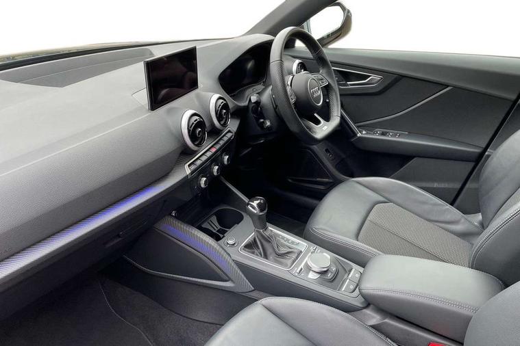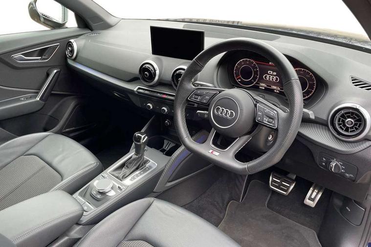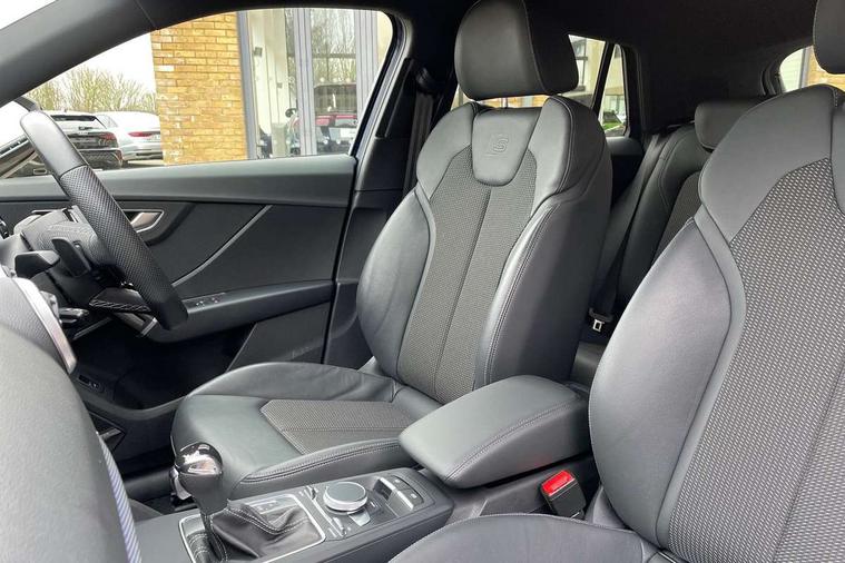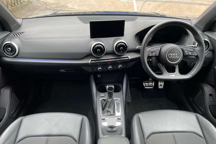Aluminium interior element, Matt brushed aluminium trim inlays, Black styling pack - Q2, 3x3 point rear seatbelts, 6 airbags - Front, curtain and front side airbags, Electromechanical parking brake, Electronic stabilisation control including ABS, ASR and EDL, Hill hold assist, Pre-sense front with pedestrian recognition, Seatbelt monitoring, Tyre pressure warning light, Warning triangle and first aid kit, Anti theft alarm, Anti theft wheel bolts, 2 x SDXC card reader, 8 passive loudspeakers, DAB Digital radio, DVD Drive, Auto dimming rear view mirror, Black window trims, Bumper in full body colour paint finish, Electrically adjustable, auto dimming and heated door mirrors with integrated LED side indicators, Front windscreen with grey tinted sunband, LED headlights with LED rear lights, Privacy glass - dark tinted rear and rear side windows from B-pillar backwards, Wheel arch trims in manhattan grey, 3 spoke flat bottomed multi-function leather sport steering wheel with gear shift paddles, 4-way electric lumbar support for front seats including seat height adjustment for both front seat, 60/40 split folding rear seat bench, Black cloth headlining, Electronically operated child locks, Front and rear head restraints, Front centre armrest, Front/rear floor mats, Height/reach adjust steering wheel, Illuminated door sill trims with S logo, ISOFIX child seat mounting for front passenger with airbag deactivation and outer rear seat including top tether attachment point for outer rear seats, Stainless steel pedals, Tool kit, Audi connect navigation and infotainment includes innovative services, Audi connect remote and control connects your vehicle to your smartphone, Audi drive select, Audi drive select - Power steering assistance + engine + gearshift, Audi drive select with efficiency, Audi smartphone interface, Audi virtual cockpit, Automatic start/stop system with recuperation, Bluetooth interface includes bluetooth audio streaming, Cruise control, MMI navigation plus with MMI touch, Power operated tailgate, Progressive steering, Rear parking sensors,