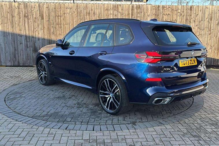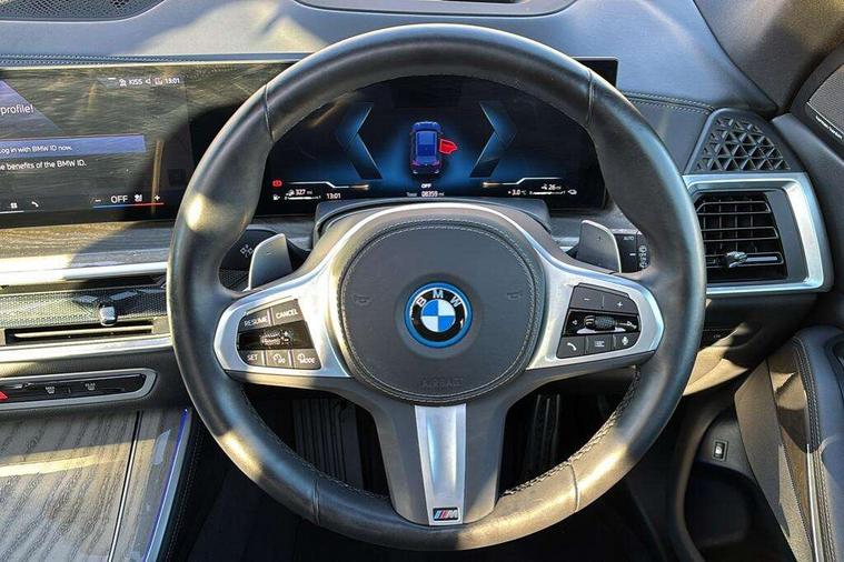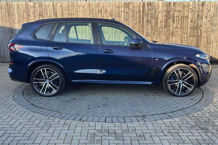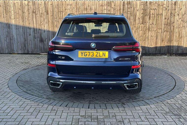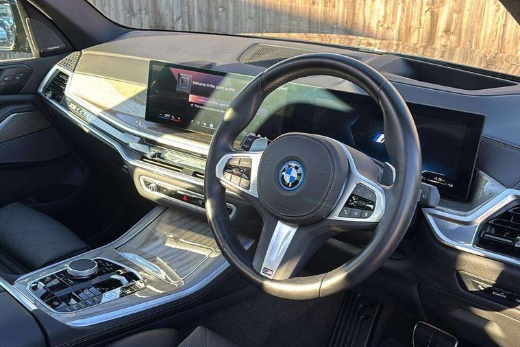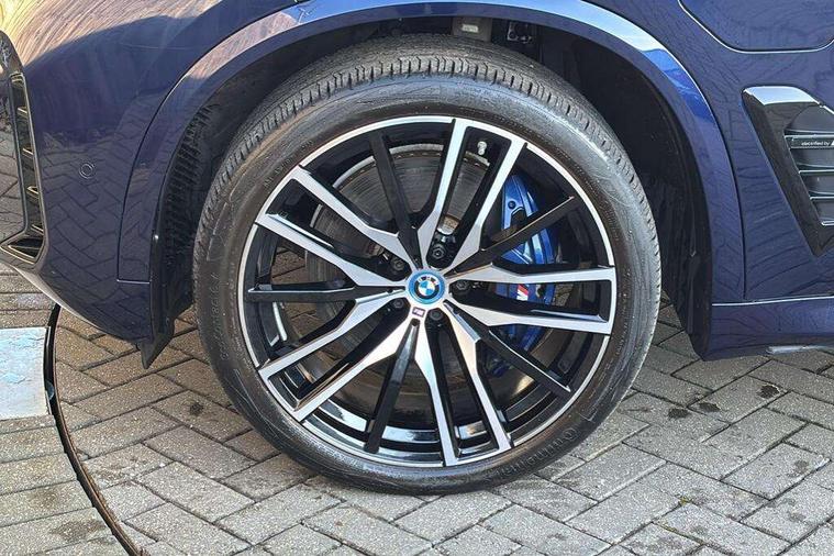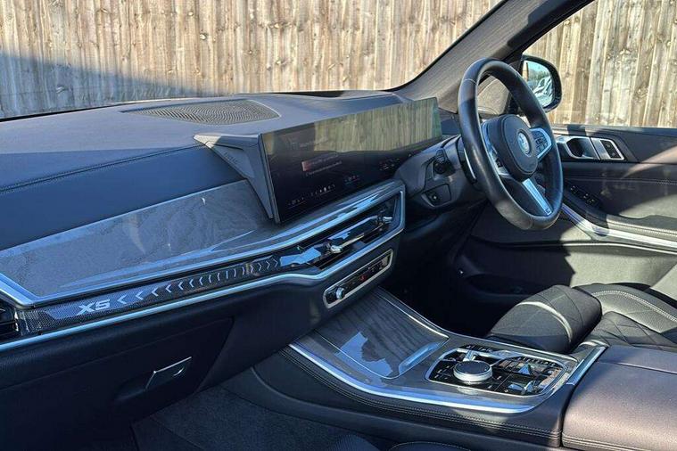Attentiveness assist, Automatic tailgate operation, BMW ConnectedDrive online services, BMW live cockpit + with curved 12.3 instrument cluster/14.9 central display, nav/Tuner with diversity reception, RDS/4GLTE/remote software upgrade, BMW Teleservices, Condition based service, Cruise control with brake assist, eCall emergency call system, Enhanced bluetooth with wireless charging, Integrated owner's handbook, PAS, Speed limiter, Wi-Fi hotspot, Adaptive 2-axle Front and rear air suspension, Drive performance control with ECO PRO comfort + sport mode, Eight speed steptronic sport automatic transmission and gearshift paddles on the steering wheel, Flexible charger (Mode 2), Hi-Fi loudspeaker system, Adaptive LED Headlights, Front and rear electric windows, High beam assistant, High gloss black shadow line roof rails, LED daytime running lights, Rear side wing doors, Third brake light in rear spoiler, Variable intermittent rear wash/wipe, 12V - Power sockets with 2x centre console and 1x luggage compartment, 3 seat bench in 2nd row, Foldable rear centre armrest with 2 cupholders and storage compartment, Front and rear side armrest integrated into door trim, Headrests for all seats, Luggage compartment separating net, Single front passenger seat, Three spoke sport M leather steering wheel, Velour floormats, Ambient light interior pack - X5, Driving assistant pack with radar based driver assistance system - X5, Expanded exterior mirror pack - X5/X5 M, M aerodynamics pack - X5, 3 rear seatbelts, Acoustic protection for pedestrians, Active protection, Airbags - driver/front passenger, rear and side, first and second row seats head airbags, front passenger seat airbag deactivation + knee airbag, Anti-lock braking system (ABS), Automatic Stability Control (ASC), Brake energy regeneration, Cornering brake control (CBC), Crash sensor activating central locking release, hazard warning lights, fuel cut off, interior lighting + activation of safety battery terminal clamp, DSC - Dynamic Stability Control, Dynamic Traction Control - DTC, Electromechanical parking brake with automatic drive away release and auto hold function, Electronic brake force distribution, Hill start assistant, M Sport blue painted brake calipers with 'M' designation, Mechanical child proof lock on rear doors, Tyre pressure monitoring system, Tyre pressure sensors, Ventilated front and rear disc brakes, Warning triangle and first aid kit, Closing system with central locking, Comfort access system, Locking wheel bolts, Sensatec instrument panel,