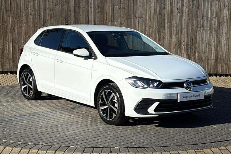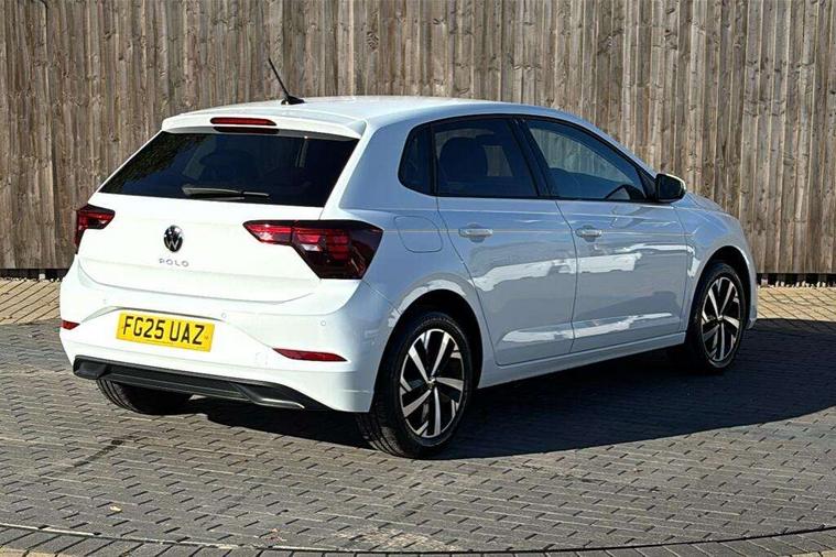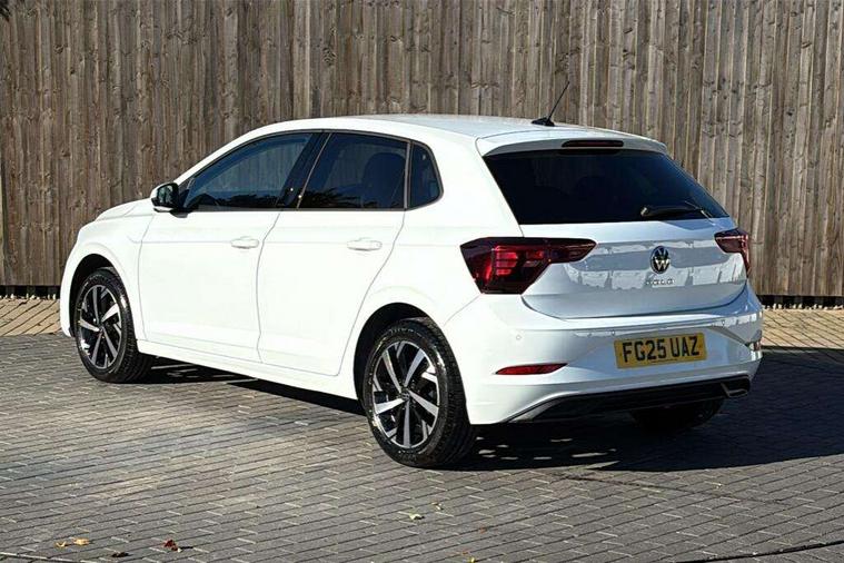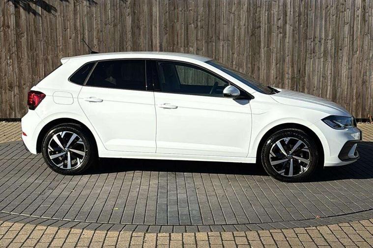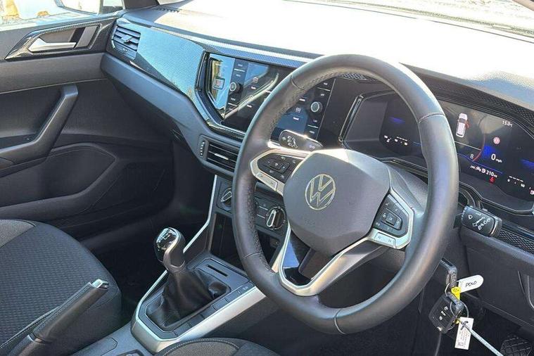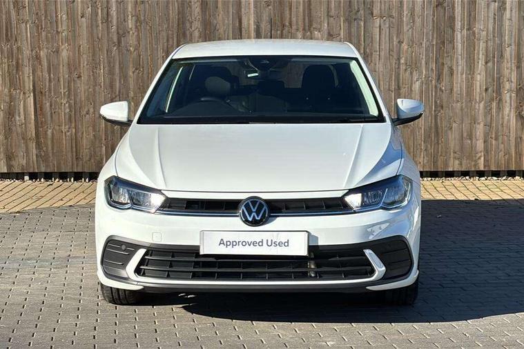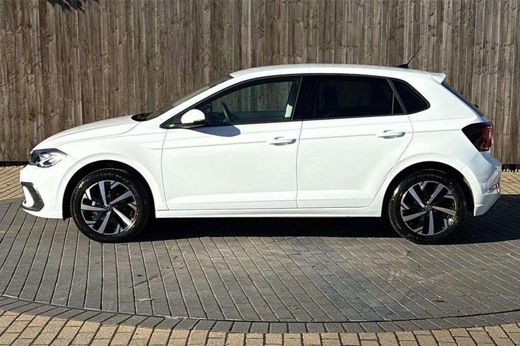 Adaptive cruise control without follow-to-stop and speed limiter, Advanced driver attention and drowsiness monitor, Bluetooth mobile phone interface, Dynamic road sign display, Emergency call service, Multifunction front facing camera for distance control, Park distance control, Power assisted speed sensitive steering, Preparation for navigation system with media and internet package, Preparation for We connect and We connect plus, Rear view camera, Speedo and rev counter, electronic odometer, trip, service interval display and exterior temperature gauge, Standard rear axle, Travel Assist - Lane keeping system and traffic jam assist, Travel assist including emergency assist, Trip computer, Warning signal and warning light for front and rear seatbelts not fastened, Washer fluid level indicator, Wireless app connect, Front wheel drive, Rear shock absorpion, Start-stop system with battery regeneration (recuperation - energy recovery during braking), DAB Digital radio, Diversity antenna for FM reception, Front and rear 6 speakers, Automatic dimming interior rear view mirror, Automatic headlight control with LED separate daytime running lights with coming/leaving home function, Body colour bumpers with chrome inserts, Body colour door handles, Body colour door mirrors, Electric front windows, Engine badge deletion, Headlight range adjustment, Heat insulating and laminated safety glass windshield, LED Headlights, LED rear combination lamps, Power folding adjustable/heated exterior mirrors and front passenger exterior mirror lowering function, Rain sensor, Rear electric windows, Rear fog light, Rear side wing doors, Rear tinted glass from B-pillar backwards approx 65% tinted, Rear windscreen washer and wiper with interval delay, Third brake light, 12V power socket in centre console, 2 front and 2 rear reading lights with switch off delay and dimmer, 2 USB-C ports in the front, 2 USB-C charging sockets on the center console in the rear, 3 rear head restraints, 60/40 split folding rear seat and rear seat bench not split, Ceramique roof lining, Chrome plated radiator grille inserts, air vent surrounds and light switch surrounds, Door and side trim panel, Driver and front passenger seat height adjustment, Driver/passenger sunvisors with illuminated vanity mirrors, Front centre armrest, Front seat backrest storage pockets, Front standard seats, Handbrake lever handle in leather, Hartley/Thomas cloth upholstery, Headliner in recycled material, Isofix child seat preparation easy-fit (for two outer rear seats, and front passenger seat) compatible with I-size, Leather trimmed gear knob, Luggage compartment cover, Luggage compartment lighting, Removable luggage compartment floor, Single front passenger seat, Standard climatic zones, Standard pedal cluster, Three spoke leather wrapped multifunction steering wheel, Light and vision pack - Polo, 3 point height adj front seatbelts + pretensioners, 3 point seat belt for centre rear seat, 3 point seatbelts, outer rear with ECE lable, ABS, Driver and front passenger airbag with front passenger airbag deactivation, Drivers and front passengers safety optimised head restraints, ESC (Electronic stability control) + EDL (Electronic Differntial lock) and ASR (Traction control), Extended and predictive pedestrian/ cyclist protection, Front assist with autonomous emergency braking (for Adaptive Cruise Control ACC up to 130 mph), Front curtain and side airbags with center airbag, Front disc brakes, Hill hold control, Manual child lock in rear doors, Rear drum brakes, Single tone horn, Tyre pressure loss indicator, Alarm with interior protection, Anti-theft alarm system with interior monitoring, backup horn, and towing protection, Anti-theft wheel bolts, Electronic engine immobiliser, Lava stone black gloss/matt decorative inserts in dash and front door panels, 16" Torsby alloy wheels, Low rolling resistance tyres,