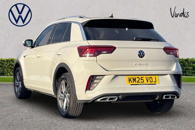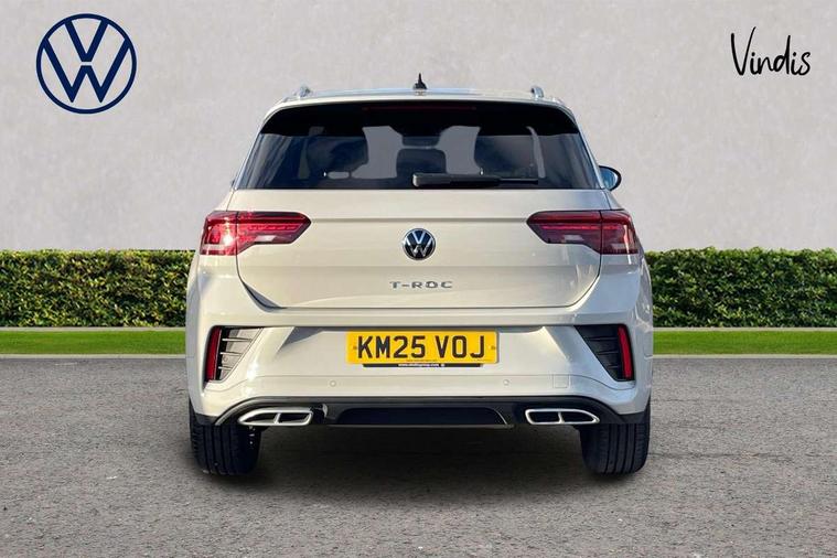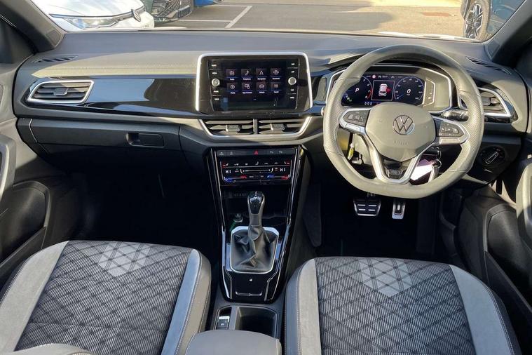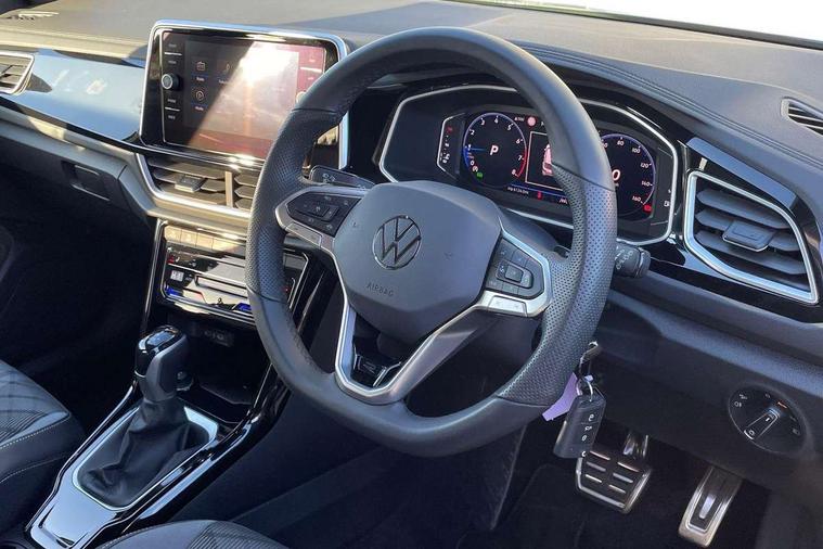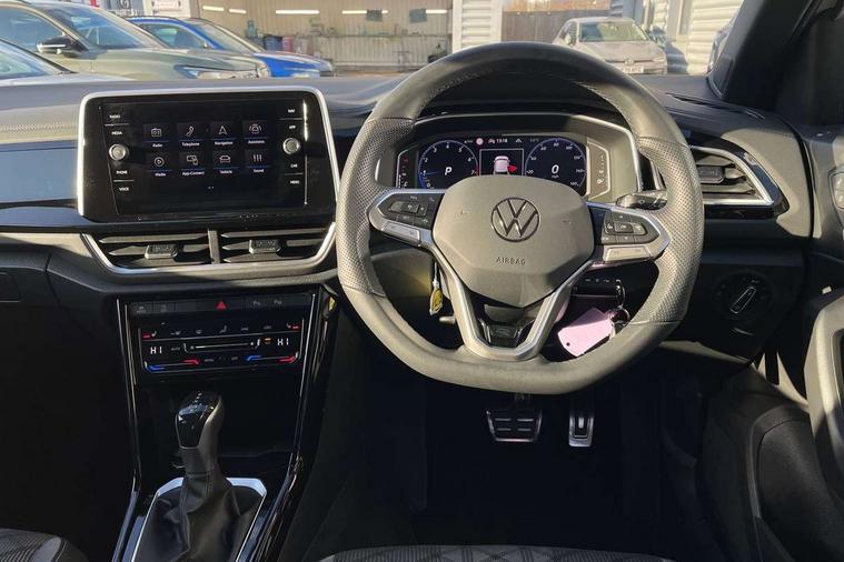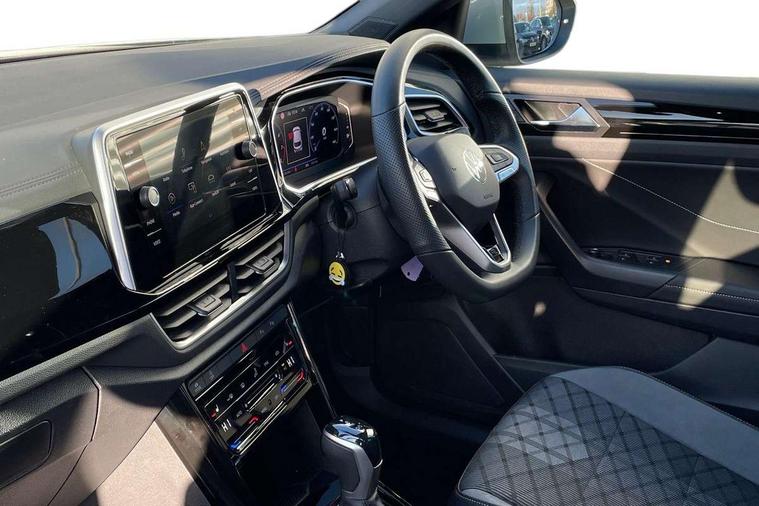 10.25" Digital cockpit pro, Advanced driver attention and drowsiness monitor, Emergency call service, Lane keeping system Lane Assist, Mobile phone interface, Modified key software - reduce switch off time for key status change to Long no motion, Online services, Park assist including front and rear parking sensors, Service interval indicator, Tailgate/trunk lid release from outside, Think blue trainer driver tips and journey analysis, Warning sound and light for front seatbelts unfastened, Wireless app connect, Battery regeneration during braking, Start/stop function with battery regeneration, DAB Digital radio, Diversity antenna for FM reception, Front and rear 6 speakers, Music playback - MP3, WMA and AAC files, Premium USB cable in choice of either Apple or Android smartphone compatibility, SD card slot, Simultaneous pairing of 2 compatible mobile devices, Title and cover art display, We Connect and We Connect Plus functionality, Auto dimming interior rear view mirror, Automatic hazard lights activation under emergency braking, Automatic headlight control with LED separate daytime running lights with coming/leaving home function, Body coloured exterior mirror housings and door handles, Electrically adjustable and heated door mirrors, Extended roof spoiler, Exterior mirrors aspherical on driver side, convex on front passenger side, External USB type C socket and charging sockets, Front windscreen wiper with intermittent wipe and 4 position delay, Heated rear window, LED 3rd brake light, LED rear combination lamps, LED rear number plate lights, Power windows with comfort operation and circuit breaker, Privacy glass for rear side windows and rear window, R-Line design body coloured bumpers, Rain sensor, Rear exhaust tailpipe, Rear fog light on one side and reversing lights on both sides, Rear side wing doors, Rear wash/wipe with intermittent wipe setting, Remote electrically foldable door mirrors, puddle lights and reverse activated passenger's door mirror, 12V power socket in centre console, 3 rear head restraints, 3 seat bench in 2nd row, 4 load lashing points in luggage compartment, Air care climatronic air conditoning system with active combination filter and 2-zone temperature control, Black roof lining, Chrome plated decorative trims, Chrome plated radiator grille inserts, air vent surrounds and light switch surrounds, Door and side trim panel with leatherette insert, Front + rear carpet mats, Front centre armrest, Front cupholders x 2, Front footwell illumination, Front reading light, Front scuff plates with R Line logo, Front seat back storage pockets, Glove compartment door with light, Instrument lighting, white adjustable panel illumination, Interior ambient lighting and surround lighting, Interior light delay, Isofix child seat preparation, Leather gearshift handle, Load-through provision with cup holder when folded down ('Unsplit rear seat bench, split folding backrest, with centre armrest), Luggage compartment lighting, Single front passenger seat, Stainless steel pedals, Storage compartment in left and right luggage area, Storage compartment in rear doors, Storage compartments in driver and front passenger doors, Sunvisors with illuminated vanity mirrors, Variable boot floor, height adjustable and removable, Driver assistance pack without proactive passenger protection - T-Roc, 3 point height adj front seatbelts + pretensioners, 3 point seatbelts in outer rear with ECE label, ABS, Child locks on rear doors, City emergency braking and pedestrian monitoring, Driver and front passenger airbag with front passenger airbag deactivation, Driver and front passenger safety-optimised head restraints, Drivers seatbelt reminder, Electronic parking brake, Electronic Stability Control (ESC) inc EDL (Electronic Differential Lock) and ASR (Traction Control), Front and rear passengers curtain airbag system including front side airbags, Hill start assist, Predictive pedestrian protection, Rear disc brakes, Two tone horn, Tyre pressure loss indicator, Volkswagen roadside assistance, Piano black decorative inserts in dashboard and front door trim panels, Trims for alloy wheels,