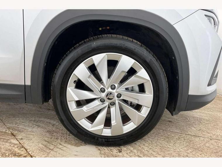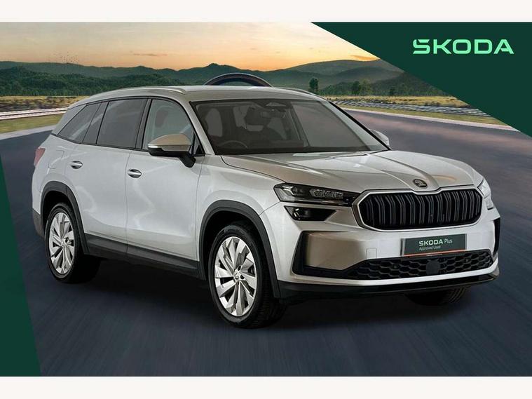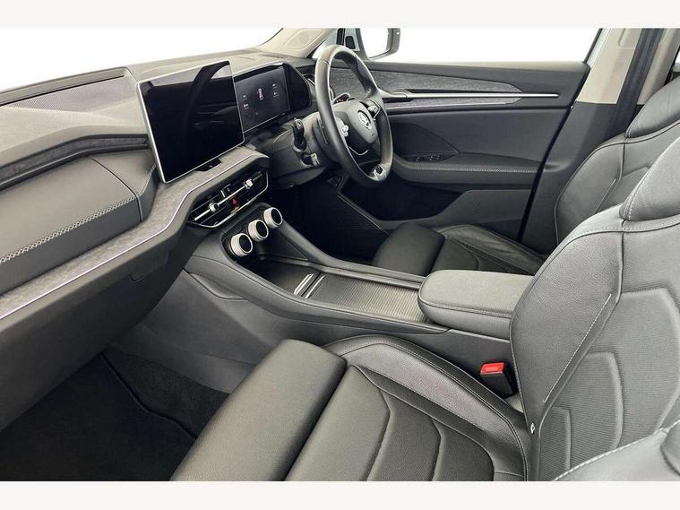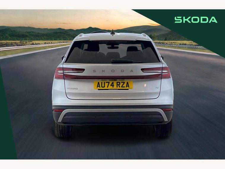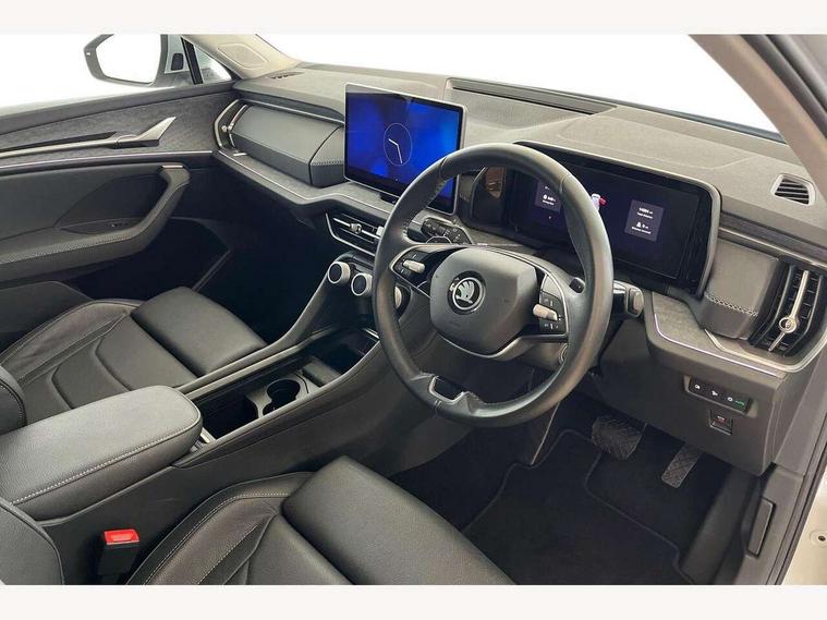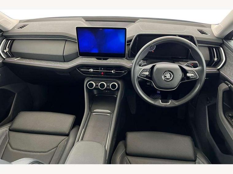 13" satellite navigation touchscreen display, Blind spot detection with door exit warning, Bluetooth system, ChatGPT functionality, Drive mode selector, Driver alert with fatigue sensor, Driver drowsiness alert system, Dry display cleaner, e call+, Front cross traffic assist, Lane assist, PAS, Rear traffic assist, Tailgate unlocking from outside, Traffic sign recognition, USB C Port x 2 in front centre console, Virtual Cockpit - 10.25" digital display, Voice control system, Wireless charging for two smartphones (15W) with cooling function, Wireless SmartLink for Apple CarPlay and Android Auto, 32A charging cable, Stop/start function, 2x USB-C in the rear, DAB Digital radio, Aero front windscreen wipers with intermittent function, Auto dimming rear view mirror, AWL (all weather lighting) and all weather light with cornering function, Black wheel arch surrounds, Body colour bumpers, Body colour door mirrors and handles, Cornering light and poor weather light, Electric folding /adjustable/separted heated/folding door mirrors, auto dimming with boarding sports and memory function, Electric front and rear windows, Heat insulating glass in windshield, Heated rear window, Ice scraper in fuel tank cap, Invisible tailpipe, LED daytime running lights, LED rear fog light, LED third brake light in rear spoiler, Light assistant with automatic headlight control and coming home feature, Logo projection in door mirrors, Privacy glass, Rear side wing doors, Rear spoiler, Rear window wiper, Red decorative strip between rear LED lights, Safety reflectors on front and rear doors, Window control switches with black trim, Windscreen wipers with rain sensor, Without engine designation, 1.5l bottle holder points in all door, 12V socket in boot, 1x centre rear reading light, 3 configurable smart dials with 32mm coloured display, 3 seat bench in 2nd row, 4 foldable roof handles with rear coat hooks, Ambient interior lighting - Dashboard, front-door stowage compartments, front and rear door panels and footwell lighting, Automatic gear selector on steering wheel, Chrome interior door handles, Driver/front passenger reading lights, Fabric headlining, Fixed bench 40:60:40 split folding backrests, Front and rear floor mats, Front centre armrest with jumbo box storage compartment, cup holder and 12V socket, Front courtesy lights, Height adjustable front headrests, Isofix child seat fittings in outer rear seats and front passenger with top tether, iV badging on boot, Manually adjustable steering column, Pollen filter, Rear centre armrest with cupholders, Rear seat boot backrest release, Retractable luggage compartment cover, Single front passenger seat, Sliding trunk cover, Small Bags on the inner sides of the front backrests, Storage pocket including mobile phone pockets on the backs of the front seats, Sunvisors with illuminated vanity mirrors, Three rear height adjustable headrests, Ticket holder on A Pillar, Tri zone climate control, Umbrella in door panel x1 made from sustainable materials, Upper and lower glovebox with card holder and coin compartment, USB C port by rear view mirror for charging only (15W), Exterior styling pack - Kodiaq, Auto door release and activation of warning lights in the event of an accident, Driver and front passenger airbag with knee airbag and front passenger airbag deactivation, Electric child locks, Electronic parking brake, ESC (incl. ABS+EMD+MSR+ASR+EDL+HBA+DSR+RBS+ESBS+MCB+TSA+XDS), Front assist with braking reaction to vehicles, pedestrians and cyclists, Front disc brakes, Fuel cut off safety device, Height adjustable front 3 point seatbelts + pretensioners, Hill hold control, Junction assist with automatic emergency braking, Rear disc brakes, Safety vest holder in door, Seat belt reminder for all seats, Three point rear seat belts, Two tone horn, Tyre pressure monitor, Anti-theft wheel bolts, Immobiliser, Remote central locking with 2 keys, Swan feathers grey dashboard and door decorative inserts, Breakdown kit,
