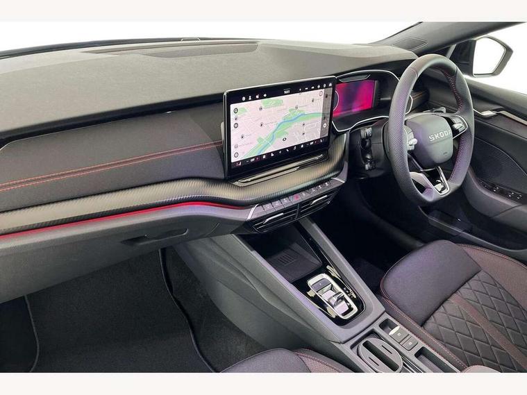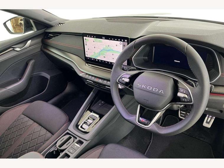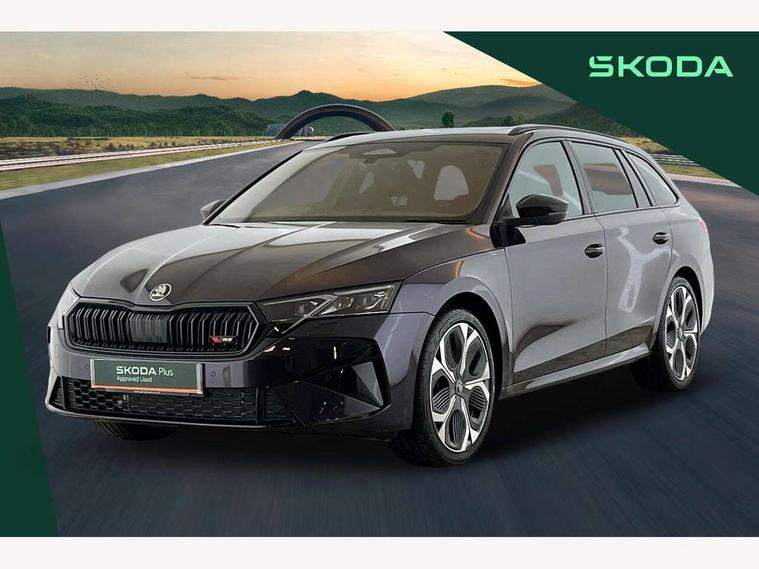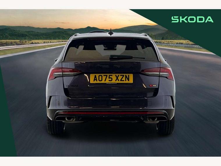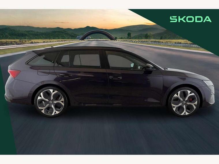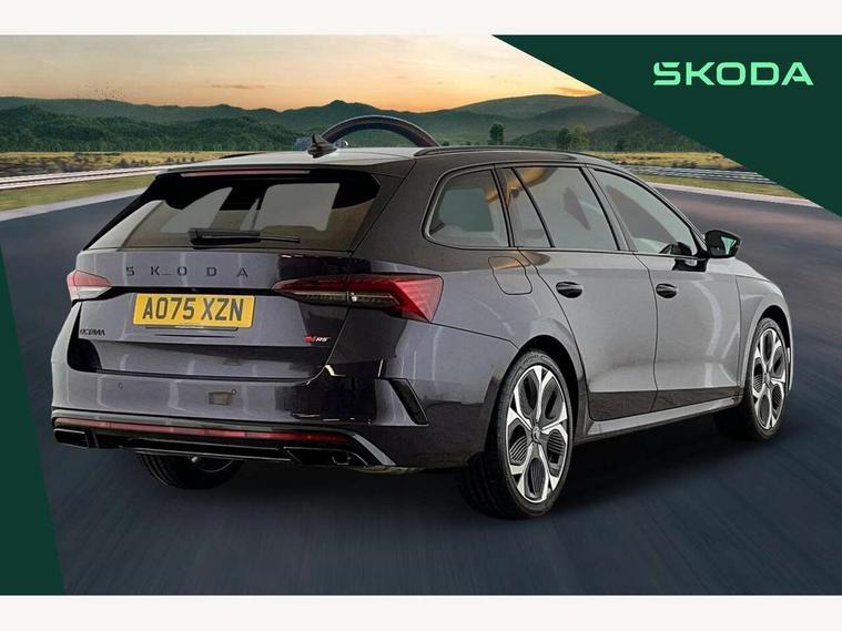1x USB Typc C port in rear view mirror, 4x USB Type C ports - 2x in front centre console and 2x in rear (45W), Drive mode selection, Driver fatigue sensor, eCall emergency system, Electronic engine sound, Front assist system, Progressive dynamic steering, Traffic sign recognition, Turn Assist, Virtual Cockpit - 10.25" digital display, Voice control system, Wireless charging (15W) with cooling function, Wireless SmartLink for Apple CarPlay and Android Auto, Electronically controlled limited slip differential, vRS suspension, 13" touchscreen display with navigation, DAB Digital radio, Aero front windscreen wipers with intermittent function, Auto dimming rear view mirror, Black sport exhaust pipes, Body colour bumpers, Body colour door handles, Bumpers with rear red reflector strip, Electric front and rear windows, Exterior gloss black sports styling including front grille, window surrounds, door mirrors and badging, Gloss black diffuser, Gloss black roof rails, Gloss black spoiler, Heated rear windscreen, High beam control, High level third brake light, Ice scraper in fuel cap, LED daytime running lights, Logo projection in front doors, Rain and light sensors, Rear fog light on one side and reversing lights on both sides, Rear privacy glass, Rear side wing doors, Rear window wiper, Unique vRS bumpers and exterior styling, 12 volt socket in boot, 2x umbrella in door, 3 rear headrests, 3 seat bench in 2nd row, 4 foldable roof handles, Aluminium pedals, Front head restraints, Front sport seats, Heated front seats, Illuminated glovebox, Interior door handles in dark chrome, Jumbo Box storage, Luggage compartment lighting x2 lights, Mechanical rear seat release from boot, Single front passenger seat, Steering wheel in black leather with black stitching, Storage compartments in left and right of boot, Sun visors with mirrors, Sunglasses storage, Three spoke leather sports multifunction steering wheel with paddles, Ticket holder, Unsplit rear bench seat, split folding backrest with centre armrest with cupholder, Waste bin in door panel, Comfort package - Octavia Estate, Family package - Octavia, Light and view package plus - Octavia, vRS Design Selection pack - Octavia, 3x3 point rear seat belts, Alarm with interior monitoring, tilt sensor and back up horn, Curtain airbags and front side airbags, Driver and front passenger airbags, Drivers knee airbag, Electronic parking brake, ESC including ABS, EBV, MSR, ASR, EDS, HBA, DSR, Front central airbag, Hill hold assist, ISOFIX on front passenger seat and outer rear seats, Passenger airbag deactivate switch, Red brake calipers, Three point seat belts in front and rear, Two tone horn, Tyre pressure monitor, Visual and acoustic seat belt reminder, Warning reflectors in front door, Anti-theft wheel bolts, Keyless entry and start/stop, Remote central locking, Gloss black air vent surrounds, 19" Elias anthracite alloy wheels,