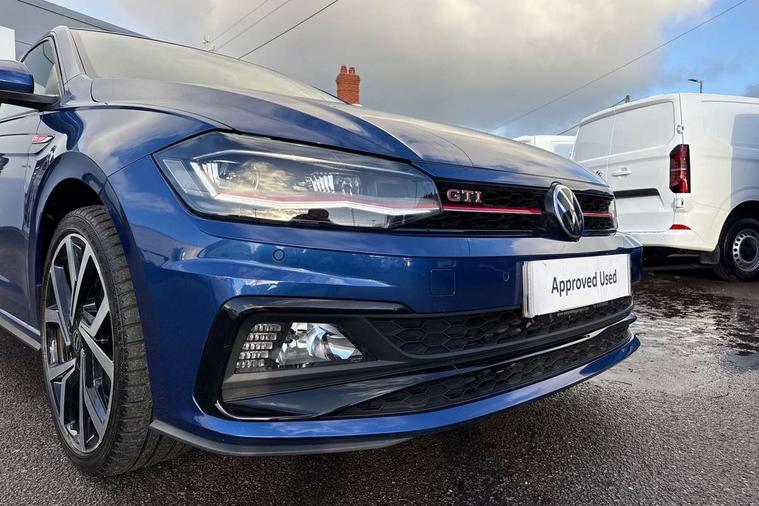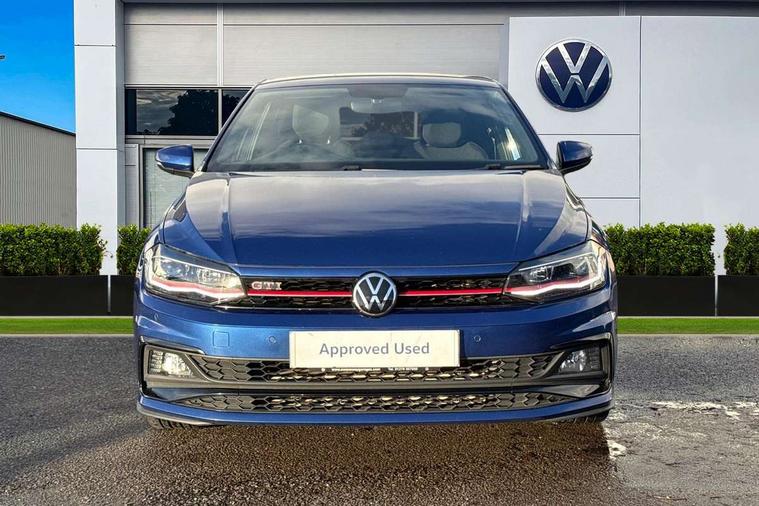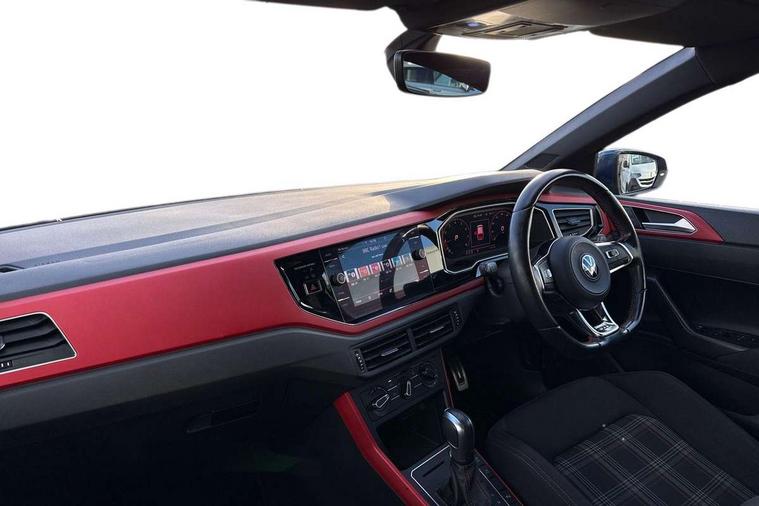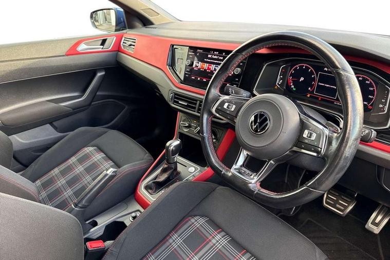 ACC - Adaptive cruise control with front assist, forward collision warning, distance monitoring, city emergency brake and speed limiter, Digital clock, Digital Cockpit Pro - Active info display, Driver alert system, Driving Mode Selection with four preset modes - Eco, normal, sport or individual modes, Emergency call service, Lights on warning, Multifunction computer plus, Power assisted speed sensitive steering, Speedo and rev counter, electronic odometer, trip, service interval display and fuel gauge, Start/stop system, Volkswagen connect, Warning buzzer and light for front seatbelts unfastened, Wireless app connect, Battery regeneration during braking, Galvanished body, Sports select suspension lowered by 15mm, XDS electronic differential lock for improved traction and handling, Diversity antenna for FM reception, Black grille with chrome surround, Body colour door handles, Body coloured side sills, Chrome trimmed strip on lower bumper, Door sill protectors with GTI logo, Electric front windows, Electrically adjustable and heated door mirrors with reverse activated kerb view adjustment on passenger's side, Front windscreen washers and wipers with 4 speed intermittent delay, GTI name plate, Heated rear window with auto timer, High level 3rd brake light, LED darkened rear light clusters, LED headlamps for low beam and high beam with separate daytime running light and automatic headlight range adjustment, LED rear number plate lights, Rear diffuser, Rear electric windows, Rear windscreen washer and wiper with interval delay, reverse activated, Twin tailpipe exhaust, 2 bag hooks in luggage compartment, 2 front cupholders and 12 V socket with cover, 3 rear head restraints, 60/40 split folding rear seat, Ambient lighting in front foorwell, front/rear door and dashboard light strips, Centre console storage with open storage compartment, Chrome-plated electric mirror adjustment switch surround, Chrome-plated electric window button surround, Driver and front passenger seat height adjustment, Driver and front passenger sunvisors with illuminated vanity mirrors, Dust/pollen filter, Folding rear seat backrest, Front + rear carpet mats, Front head restraints, Front seat backrest storage pockets, Front sport seats, Gear lever gaiter in black trim surround, Glovebox, Handbrake grip button in chrome effect, Height/reach adjustable steering column, Instrument lighting, adjustable panel illumination, Interior light with delay, Isofix Preparation 2 Rear child seats, Leather gear knob and handbrake grip, LED interior lighting - 2 reading lights front and rear with interior delay and dimming function, Luggage compartment cover, removable, Luggage compartment lighting, Luggage compartment with variable load floor, Lumbar adjustment for front seats, Stainless steel pedals, Storage compartment in front doors, Storage compartment in rear doors, Storage compartment under front seats, Three spoke leather wrapped multifunction sports steering wheel with shifting paddles, Titanium black roof lining and sun visors, Unique R Line door sill protectors, GTI styling pack - Polo, Light and sight pack - Polo, 3 point height adj front seatbelts + pretensioners, 3x3 point rear seatbelts, ABS, Automatic post collision braking, Driver/front passenger airbag, Drivers and front passengers safety optimised head restraints, ESP with EDL + ASR, Front and rear passenger curtain airbags, Front passenger airbag deactivation, Front seat side impact airbags, Front/rear disc brakes, Hill hold control, Hydraulic Brake Assist (HBA), Predictive pedestrian protection, Red brake calipers, Single tone horn, Tyre pressure monitoring system, Alarm with interior protection and deactivation via infotainment system, Electronic engine immobiliser, Remote central locking with 2 remote folding keys, Remote keyless entry using key fob including Start/Stop button on centre console, Chrome plated air vent surround, Chrome plated instrument surrounds,