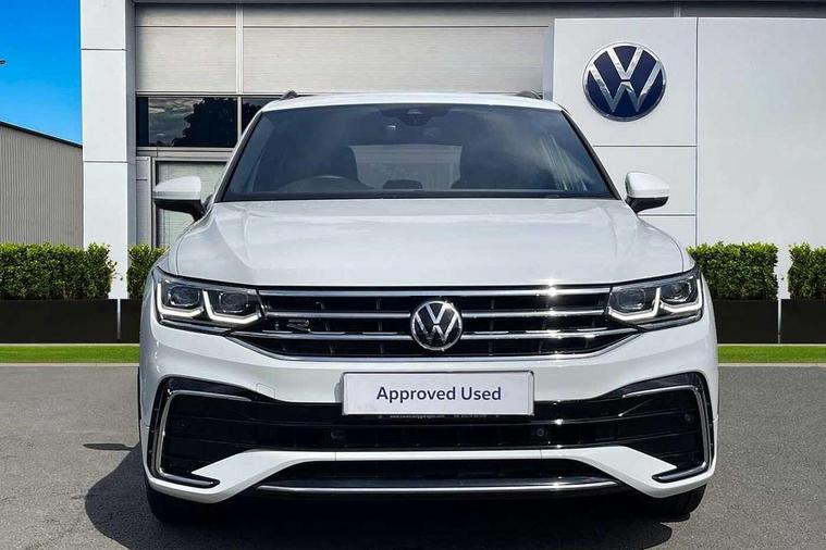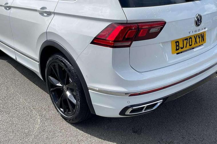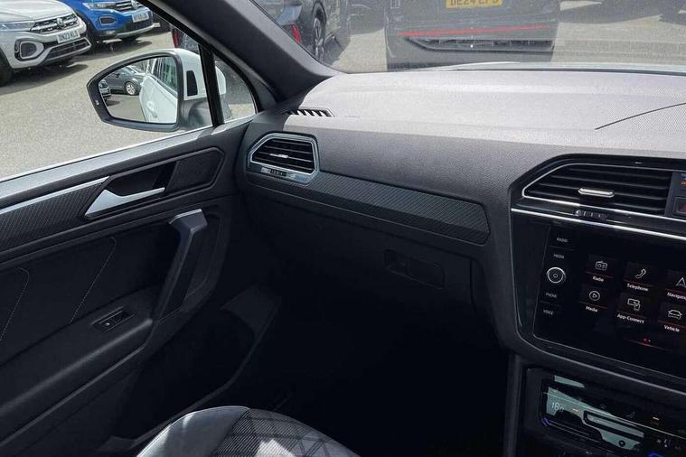 Adaptive cruise control ACC stop and go including speed limiter, App-Connect incl. App-Connect Wireless for Apple CarPlay and Android Auto, Bluetooth phone integration system, Digital Cockpit Pro - Active info display, Distance control assist, Driver alert system, Driver profile selection, Dynamic road sign display, eCall emergency call system, Electromechanical speed sensitive power steering, Front/rear Parking distance control, Lane keeping system Lane Assist, Lights on warning, Multifunction front facing camera, Outside temperature display, Premium multifunction display with multi colour display, Service interval indicator, Start/stop system with regenerative braking, Tailgate/trunk lid unlocking from outside, Warning sound and light for doors and tailgate open, Battery regeneration during braking, Diesel particulate filter, Misfuel prevention device for diesel engine, XDS electronic differential lock for improved traction and handling, 2 USB-C ports in the front, 1 USB-C charging socket on the center console in the rear, Diversity antenna for FM reception, Radio, SD card slot, Simultaneous pairing of 2 compatible mobile devices, SMS functionality - read, compose and send SMS messages using touch-screen display, Title and cover art display, Auto dimming interior rear view mirror, Automatic headlight control system, Black roof rails, Body colour door handles, Body coloured bumpers in R Line style, Chrome moldings on the side windows, Coming/leaving home lighting function, Dynamic headlight range control, Front and rear electric windows, Heated rear window, High level 3rd brake light, Laminated safety glass windshield, heat and sound insulating, LED rear number plate lights, License plate carrier in front and rear, Poor weather light and cornering light, Power adjustable, folding and heated door mirrors with surround lighting, front passenger exterior mirror lowering function, Privacy glass for rear side windows and rear window, R Line body kit, R Line side sills, Rain sensor windscreen wipers, Rear exhaust tailpipe, Rear fog lamp, Rear spoiler in R style, Rear windscreen washer and wiper with interval delay, Side and rear windows in heat insulating glass, Trailer Stability Programme, Unique R Line badging, Windscreen wipers/ intermittent wipe + 4 position delay, 12V outlet in center console rear and in luggage compartment, 12V outlet in front and tray, 2 cup holders in front, 2 LED front reading lights, 2 LED rear reading lights, 3 rear headrests, 4 load lashing points, 40:20:40 split folding rear seats, Air Care Climatronic 3 zone automatic climate control with enhanced air filter and controls in the rear, Backrest release for left front seat, Black headlining, Brushed stainless steel pedals and footrest, Carpet mats in front and rear with decorative stitching in Gray, Door and side trim panel in foam film, insert in leatherette, Driver + front passenger lumbar support, Front footwell illumination, Front seats head restraints (x-adjustment), Height adjustable front seats, Height/reach adjust steering wheel, Instrument lighting white adjustable panel illumination, Interior light with delay, Isofix Preparation 2 Rear child seats, Leather gear knob, Leather wrapped multifunction steering wheel with paddle shift, Lockable cooled glovebox, Luggage compartment lighting, Rear bench seat asymetrically split folding, longitudinally movable and folding with load-through hatch and center armrest, Remote unlocking for rear seat backrest, Removable luggage cover, Safety optimised front head restraints, Sliding/reclining rear seats, Standard rear seat release, Storage compartment in driver's door, Storage compartment in passenger's door, Storage compartment in rear doors, Storage compartments in luggage area left and right, Storage tray on dashboard, Sun visors with illuminated vanity mirrors, Tool kit, Top front comfort seats, Variable boot floor, height adjustable and removable, Ambience pack - Tiguan R Line, Driver assistance pack plus - Tiguan Auto, 3 point seat belt for centre rear seats, 3 point seat belts with seat belt pretensioners for the outer rear seats, Active bonnet, Curtain airbags for front and rear passengers, Driver/Front Passenger airbags, Drivers knee airbag, Electronic parking brake with auto hold, Electronic Stability Control with driver steering recommendation, ABS, ASR, EDL, EDTC and trailer stabilization, Front assist with autonomous emergency braking (for Adaptive Cruise Control ACC up to 130 mph), Front disc brakes, Front passenger airbag deactivation, Front side airbags, Height adjustable front 3 point seatbelts + pretensioners, Hill hold control, Pedestrian monitoring system, Rear disc brakes, Rigid safety cell with front and rear crumple zones, Two tone horn, Warning sound and light for front seat belts if unfastened, Warning triangle, Anti theft alarm system with interior monitoring, backup horn and towing protection, Anti theft wheel bolts, Electronic engine immobiliser, 20" Misano black with diamond turned surface alloy wheels with Airstop tyres,