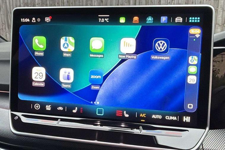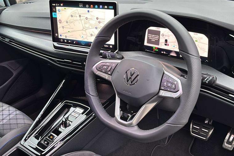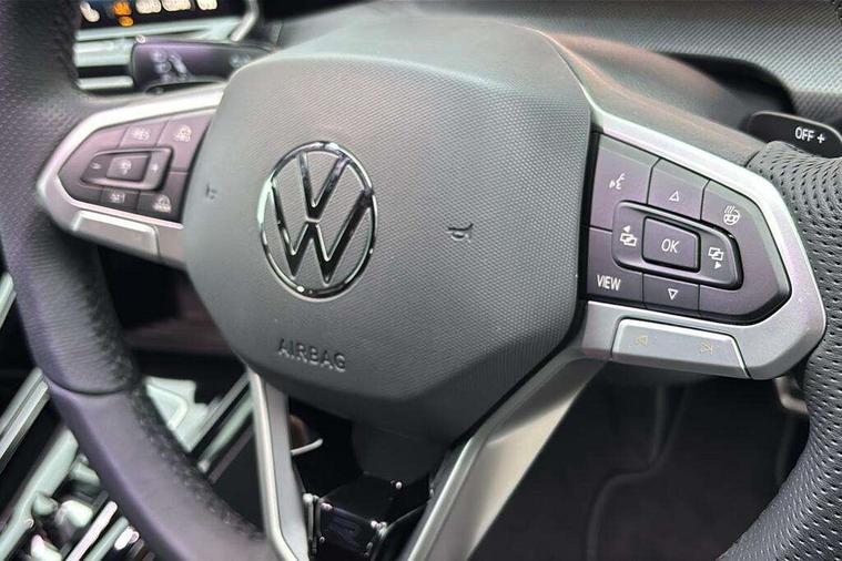 Activated carbon canister, Adaptive cruise control (ACC), Advanced driver attention and drowsiness monitor, Dynamic road sign display, Dynamic steering, E-Sim card for online connectivity, eCall emergency call system, Multi-color Digital cockpit pro, selection of different info profile possible, Multifunction front facing camera for distance control, Navigation system, Oncoming vehicle braking when turning including swerve support, Speed limiter, Speedo, rev counter, electronic odometer, trip, service interval display, exterior temperature and fuel gauge, Traffic jam assist, Voice enhancer and voice control, Warning signal and warning light for front and rear seatbelts not fastened, We connect plus preparation, We connect preparation, Wireless app connect, Hybrid propulsion system, Petrol Particulate Filter, Start-stop system with battery regeneration (recuperation - energy recovery during braking), XDS electronic differential lock for improved traction and handling, 2 USB C ports in front, 2 USB charging sockets on the centre console in the rear charging capacity upto 45W, Digital radio reception (DAB), Diversity antenna for FM reception, Gaming platform via car app, Infotainment system with 12.9" display, Mobile phone interface with inductive charging feature, 3rd brake light, Automatic headlamp activation with Coming home and Leaving home feature, Body colored bumpers in R-Line style, Body colour door handles, Exterior mirrors convex on the left and aspherical on the right, Front and rear electric windows, Heat insulating windshield made of laminated glass, LED separate daytime running light, Rear exhaust tailpipe, Rear fog light on one side and reversing lights on both sides, Rear side wing doors, Rear windscreen washer and wiper with interval delay, Remote electrically foldable door mirrors, puddle lights and reverse activated passenger's door mirror, Welcome light with surround lighting, 12V socket in front centre console, 12V socket in luggage compartment, 3 rear head restraints, 3 seat bench in 2nd row, Ambient lighting with 30 colour including LED light unit in front footwell with selectable light colour, Black roof lining, Brushed stainless steel pedals, Chrome plated radiator grille inserts, air vent surrounds and light switch surrounds, Door insert, side trim panel and arm support in leatherette, Front + rear black carpet mats, Front centre armrest, Front seat lumbar support adjuster, Integrated front head restraints, ISOFIX anchors for child seats on outer rear bench seats and on front passanger seat compatible for i-Size, Luggage compartment lighting, Manual height adjustable front passenger seat, Manually height adjustable driver seat, Plastic gear knob, Premium sports seats in front, Rear cupholder and loadthough, Sardegna cloth upholstery with front and outer rear seats Art Velour inner sides of bolsters, Single front passenger seat, Split folding backrest with centre armrest and unsplit rear seat bench, Sun visors with illuminated vanity mirrors, Titanium black instrument panel, 3 point height adj front seatbelts + pretensioners, 3 rear three point seatbelts, ABS, Autonomous emergency braking front assist with pedestrian and cyclist monitoring, Child locks on rear doors, Driver and front passenger airbag with front passenger airbag deactivation, Electronic parking brake with auto hold, ESC (Electronic Stability Control), Extended pedestrian protection measures, Hill start assist, Rear disc brakes, Two tone horn, Tyre pressure loss indicator, Volkswagen roadside assistance, Anti theft wheel bolts, Preparation for alcohol interlock, Decorative inserts carbon grey for dashboard and front door trim panels, Tool kit for tyre mobility set, Tyre mobility kit Includes 12V compressor and tyre sealant,