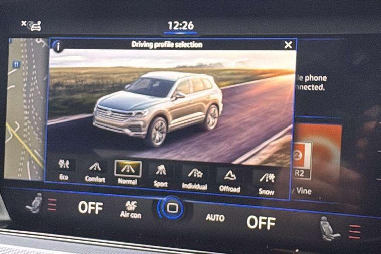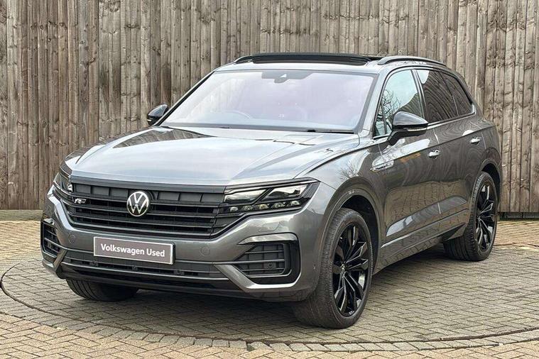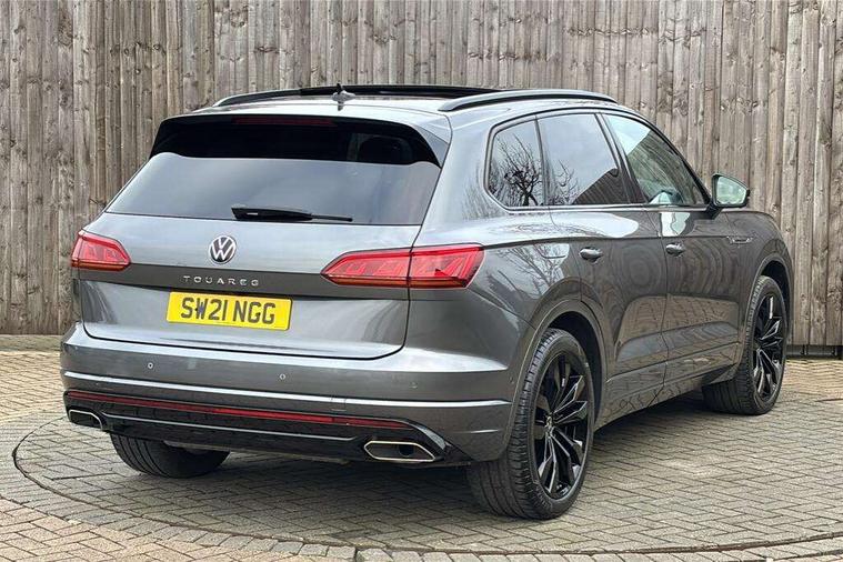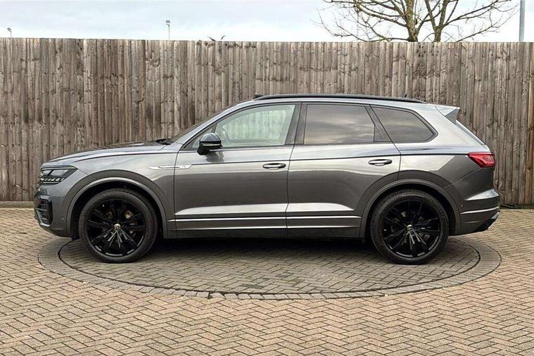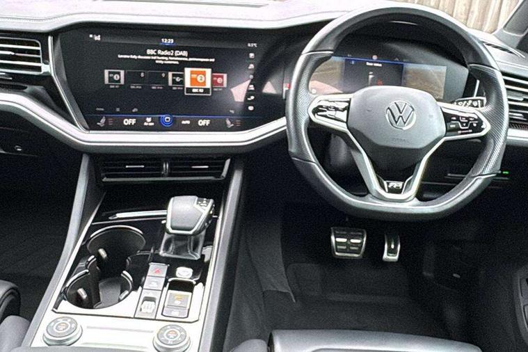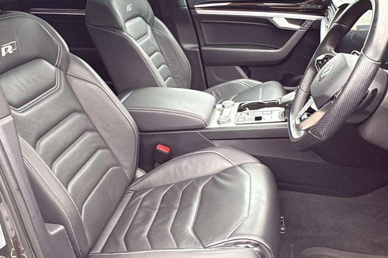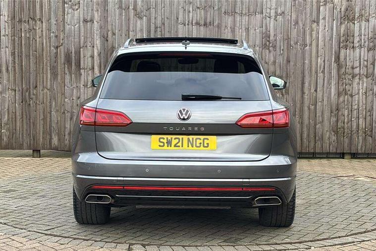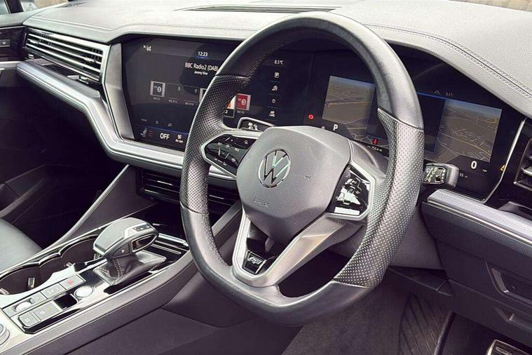 2D/3D map view, ACC - Adaptive cruise control with front assist, forward collision warning, distance monitoring, city emergency brake and speed limiter, Apple car play/Android Auto, Audible and visual fatigue detection system, Bluetooth hands free telephone connection, Car information display, Drive select with Damper control, Driver alert system, Dynamic road sign display camera controlled system with visual warning for traffic and road signs, eCall emergency system, Fully electric tailgate + keyless entry and start, Instrument cluster, MirrorLink, Multifunction camera with lane assist, Multifunction computer premium with 7" colour display, One touch indicators with repeat function, Service interval indicator, Speed sensitive power steering, Start/stop system with regenerative braking, Tailgate power latch, Think blue trainer driver tips and journey analysis, Traffic sign recognition, Voice control system, Wireless Smartphone charger, Torsen limited slip differential, DAB Digital radio, Dynamic navigation based on TMC+, Gesture control for infotainment system, Multi device interface (MDI) with illuminated USB-C connection, Music playback - MP3, WMA and AAC files, SD card slot, Simultaneous pairing of 2 compatible mobile devices, SMS functionality - read, compose and send SMS messages using touch-screen display, Title and cover art display, Volkswagen media control, Adaptive low beam for urban and motorway use, Auto dimming rear view mirror, Automatic coming/leaving home lighting function, Automatic headlights, Black anodised roof rails, Black door mirrors, Black rear diffuser, Black side window surrounds, Black upper and lower grille louvres extending into headlights and radiator grille, Body colour door handles, Body coloured wheel arches, C signature gloss black front air intake, Chromed tailpipe on the left and right integrated in the bumper with trapezoid design, Dusk sensor, Dynamic headlight range control, Electric front tilt/slide panoramic sunroof and fixed rear sunroof, Electrically power adjustable, heated, folding, auto dimming, front passenger exterior door mirror lowering function, Front and rear electric windows, Galvanised body, Gloss black finish B pillar, Gloss black rear diffuser, Headlight washers, Heat insulating darkened glass in side and rear windows, Heated windscreen washer jets, IQ.Light-LED matrix headlight, daytime running light with dynamic cornering light and indicator, LED rear fog light, LED rear number plate lights, Plastic scuff plates in door apertures, Poor weather light, Puddle lights, Rain sensor, Rear wiper, 12V socket in front and rear centre console and boot, 2 Coat hooks on B pillar, 3 rear head restraints, 3 spoke sport heated leather multi-function sports steering wheel with gear shift paddles - generation 2, 4 way adjustable front head restraints, 4 way electric lumbar support for driver and front passenger, 4 zone climate control, 40:20:40 split folding slide/recline rear seat, B pillar vents, Black lower edge of door extending sills, Branded points of interest, Double sun visor for drivier and passenger with LED illuminated vanity mirrors, Electric luggage compartment cover, Folding rear centre armrest with 2 cupholders, Front + rear carpet mats, Front centre armrest with storage box, Gear shift indicator, Height/reach adjust steering wheel, Illuminated air conditioned glovebox, Isofix preparation for 2 rear child seats, Jack and tool kit, Leather trimmed gear knob with gloss black inlay/aluminum trim, Leatherette door trim, LED luggage compartment lighting, Load through provision, Luggage compartment with load lashing rings, Plastic loading edge protection, Rear seat remote release levers, Soul black headlining, Stainless steel pedals, Innovision cockpit pack - Touareg, 3 point front seatbelts with pre-tensioners, ABS, Active bonnet, Automatic post collision braking system, Curtain airbags, Driver/Front Passenger airbags, EBD + Brake Assist, EDL, Electronic parking brake with auto hold, ESC with ASR, Front seat side impact airbags, Hill descent control, Hill start assist, Passenger airbag deactivate switch, Seatbelt warning lamp and buzzer, Three 3 point rear seatbelts, Two tone horn, Volkswagen roadside assistance, Warning triangle and first aid kit, Alarm with interior monitoring in cab, backup horn and towing protection, Child security locks for front and rear doors, Electronic engine immobiliser, Remote central locking, Black decorative trims on the side windows, High gloss black centre console,