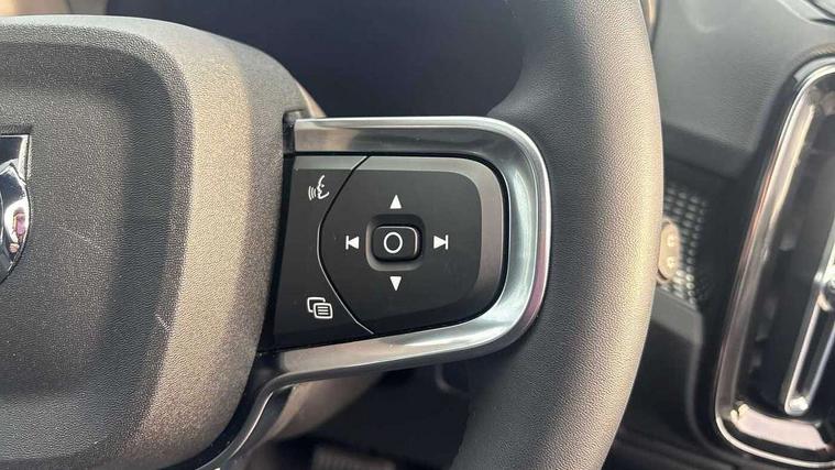 12.3" Progressive Driver Display, 360 degree surround view parking camera with side proximity sensors, 9" centre console portrait touch screen, Adjustable steering wheel force, Bluetooth hands free telephone kit, E-call, Front park assist, Google automatic services - Nav with google maps, apple carplay/android auto, voice recognition with google assistant, Hands free power tailgate, Lane keep assist with driver alert control, Oncoming Lane Mitigation, Rear park assist, Speed limiter, Speed sensitive steering, Wireless/Inductive Mobile Phone Charging, Dynamic chassis, DAB Digital radio, Premium Sound by Harman Kardon, Dolby Pro Logic II Surround Sound, Dirac Unsion, 12 speakers/600W and subwoofer, Steering wheel mounted remote controls, Active bending pixel LED headlights with adaptive shadow technology, Active high beam incorporating daytime running lights, Adaptive brake lights with high level LED brake lights, Auto dimming interior mirror, Automatic headlamp levelling, Dark tinted windows for rear door side windows and cargo compartment, Front aluminium tread plates, Front and rear electric windows, Headlight cleaning system, High gloss black front and rear skid plate, High gloss black mesh front grille with high gloss black surround, High gloss black window trim, Home safe and approach lighting, Integrated roof rails in high gloss black, LED front fog lights, Power glass tilt and slide panoramic sunroof with sun curtain, Puddle lights, Rain sensor with automatic windscreen wiper activation, Rear side wing doors, Rear wiper, Roof antenna, Roof spoiler, Visible VIN plate, 12V socket in front tunnel console and cargo compartment, 2 zone electronic climate control with clear zone air quality system and pollen filter, 3 seat bench in 2nd row, 3 Spoke tailored steering wheel with chrome trim, 60/40 versatile split folding rear seat, A-pillar parking ticket holder, Ambient front door and instrumental panel lighting, Centre console cupholders and storage, Flexible load floor and grocery bag holder, Floor mats, Front door pocket and front cupholder illumination, Front footwell illumination, Front headrests, Front reading light and theatre lighting, Front seat cushion extensions, Front tunnel pocket, Glovebox bag hook, Heated front seats, Height adjustable passenger seat, Height/reach adjustable steering column, High gloss centre tunnel deco, Illuminated glovebox, Illuminated luggage compartment, Illuminated tailgate, Illuminated vanity mirrors, Integrated waste bin, Isofix attachments on rear seats, Load protection net, Multi directional lumbar support, Power driver seat with memory + exterior mirrors memory, Power folding rear headrests, Power passenger seat, Rear armrest / integral cup holders / storage tray, Rear reading and courtesy lights, Single front passenger seat, Underfloor cargo storage, Climate pack without heated front seats - XC40, Driver assist pack - XC40, 3x3 point rear seatbelts, City safety with steering support with Pedestrian + cyclist + front collision warning with full auto brake and rear auto brake, Drivers knee airbag, Dual stage driver/passenger airbags, Electronic parking brake with auto hold, First aid kit, Front and outer rear seatbelt reminder and pretensioners, Front seats SIPS airbags, Hill descent control, Hill start assist, Inflatable curtain, Passenger airbag cut-off device, Power child locks on rear doors, Road sign information display, Run off Road Mitigation, Run off Road Protection, SIPS (Side Impact Protection System), Slippery road and hazard light alert, Stability and Traction Control with Spin control, Engine Drag Control and Corner Traction Control, Tyre pressure monitoring system, Vehicle deceleration control with Anti-lock Brake System, Electronic Brake Distribution and Emergency Brake Assist, Warning triangle, WHIPS whiplash protection system - front, Anti-theft alarm including immobiliser/volume sensor + level sensor, Key integrated remote control central locking + fuel flap with deadlocking system and auto open/close power windows, Keyless drive includes keyless entry and keyless start, Locking wheel nuts,