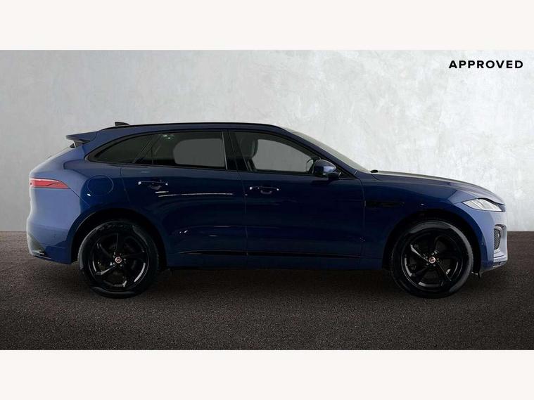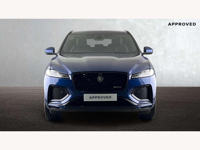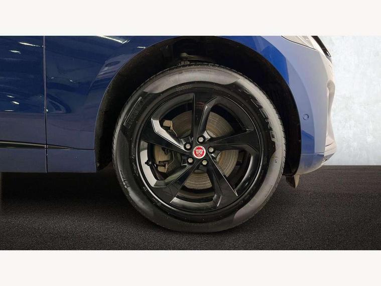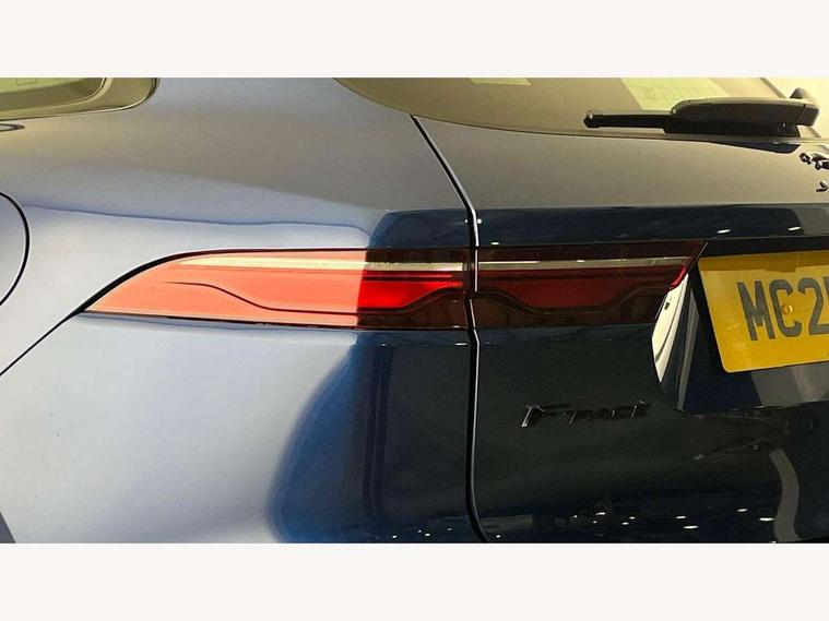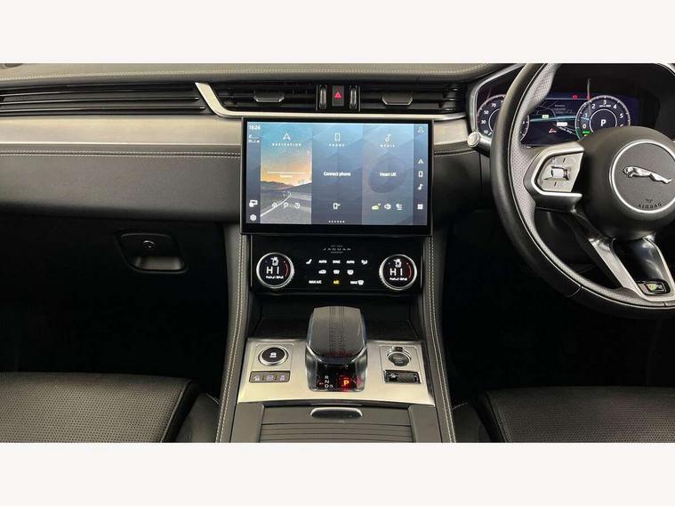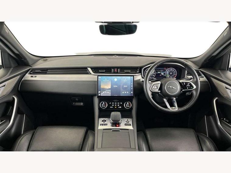 11.4" touchscreen, 3D surround camera, Android Auto, Apple car play, Bluetooth connectivity, Driver alert system, Driver condition monitor, Eco driving style assistant, Electric power assisted steering, InControl remote, Interactive Driver display instrument cluster, Jaguar Toggle shift selector, Lane departure warning system, Lane keep assist, Outside temperature gauge, Personalisation profile management, Pivi pro connected navigation system with app interface and media storage, Pro services and wifi hotspot, Push button starter, Service interval indicator, Speed proportional steering, Start up sequence with movement in dials and lighting, Traffic sign recognition with adaptive speed limiter, Trip computer, Voice control system, 7 kW onboard charger, 8 speed automatic transmission, Adaptive dynamics, All terrain progress control, All Wheel Drive (AWD), Configurable dynamics, Open differential with torque vectoring by braking, Public charging cable, AM/FM radio, Bluetooth streaming, DAB Radio (Digital Audio Broadcasting), Dynamic volume control, InControl apps, InControl protect, iPod integration, 3 flash lane change indicators, Approach Illumination, Auto dimming rear view mirror, Automatic headlights, Body colour door mirrors, Electric windows with one touch open/close and anti trap, F-Pace badge, Green tinted glass, Heated front windscreen + heated washer jets, Heated rear window with timer, Jaguar script and leaper, LED tail lights, Non acoustic front windscreen, P400e AWD badge, R Dynamic badge on side door, Rain sensor windscreen wipers, Rear fog lights, Rear metal tread plates, Rear wiper, Trailer stability assist, Variable front intermittent wipers, 12V power point front, 3 rear headrests, Air distribution speed, Cabin lighting, Centre armrest console, Centre console with side storage, Deletion loadspace storage rails, Door sill tread plates, Fold flat front seats, Front centre armrest with storage compartment, Front door storage space, Glovebox finisher with jaguar script, Heated steering wheel, Hooks in loadspace, Illuminated glovebox, Interior front door handles with separate locking switches, ISOFIX on outer rear seats, Jaguar sense, Luggage tie downs in loadspace, Mist sensing, Multifunction steering wheel, Overhead lighting console, Overhead stowage for sunglasses, Passive front head restraints, Premium carpet mats, R-Dynamic branded leather steering wheel, Rear air vents, Rear armrest with twin cupholders, Rear centre headrest, Rear door storage space, Reversible boot floor, Satin chrome gearshift paddles, Shopping bag hook, Sunvisors with illuminated vanity mirrors, Twin front cupholders with cover, Online Pack with data plan - F-Pace, 380mm front brakes and 325mm rear brakes, 3x3 point rear seatbelts, ABS, All surface progress control (ASPC), Brake pad warning light, DSC - Dynamic Stability Control, Electric parking brake (EPB), Front airbags with passenger seat occupant detector, Front and rear seatbelt reminder, Front side airbags, Full length side window curtain airbag, Hill launch assist, Power operated child locks, Torque vectoring brake, Traction control, Tyre pressure monitoring system, Immobiliser, Keyless Start, Locking wheel nuts, Perimeter alarm, Remote central locking, Valet mode, Summer tyres, Tyre repair system,