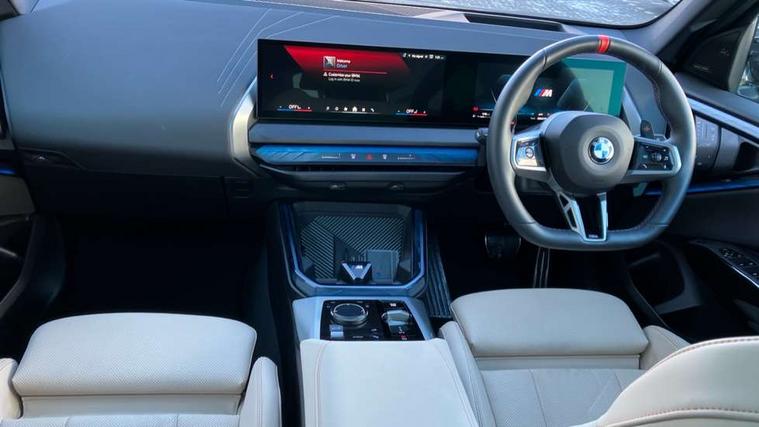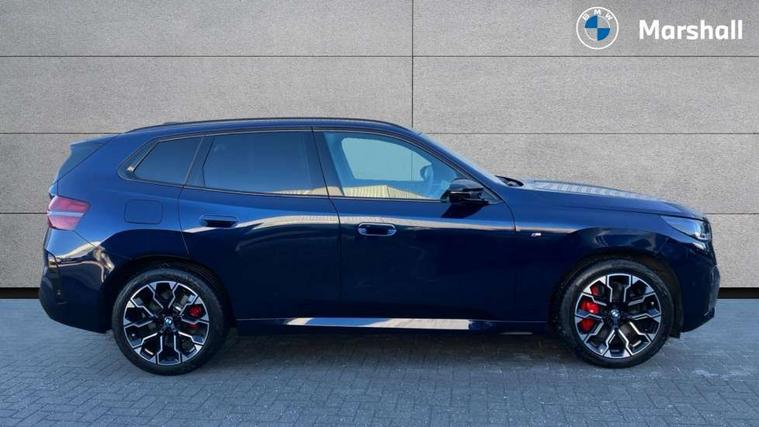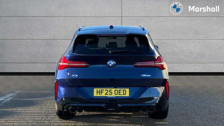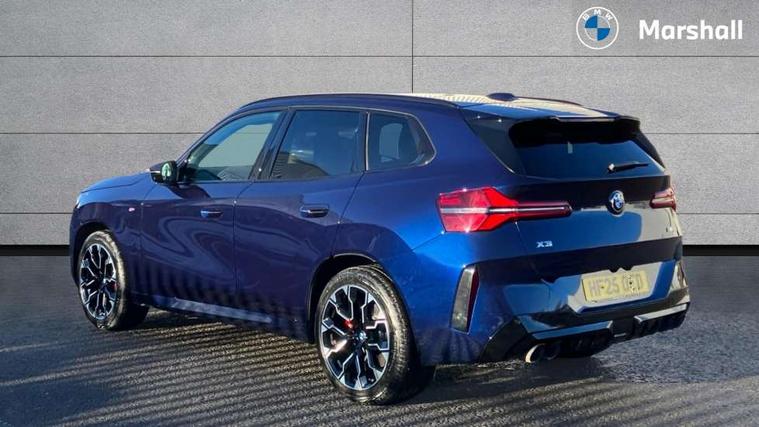 Active guard professional, Attentiveness assist, Automatic operation of tailgate, BMW ConnectedDrive online services, BMW iDrive, BMW Live cockpit plus, BMW Online services, BMW Teleservices, Brake pad wear indicator, Condition based service, Cruise control with brake function + speed limiter, Drive off assistant, Driving Assistant Plus Preparation, Flat tyre monitor, Language version English, My Mode - Personal, Efficient, Sport, Relax, Expressive, Reversing assist camera, Servotronic system, Variable sport steering, Dynamic stability control, Multiple control arm rear axle, Steptronic transmission with gearshift paddles, Two-joint strut-type front axle with tension strut, DAB tuner, Personal eSim, 4 tailpipe tips, Adaptive LED Headlights, B-pillar trim panel in black high-gloss, BMW badge on front and rear, BMW M-specific front/rear bumpers and side sills, BMW M-specific radiator grille with horizontal bars in Dark Silver and M logo, Body colour mirror caps, Daytime running lights, Door handles flush to the surface with lock barrel on driver's side, Dynamic brake lights, Electric adjustable and heated door mirrors, Electric window trap release and convenient opening/closing feature, Headlight beam throw control, Heated rear window, Heated windscreen washer jets, High beam assistant, LED 3rd brake light, LED rear lights, LED tail lights, LED turning indicators, Locking of the doors, M-specific Exterior mirrors, Mirror base and mirror blade in satinised aluminium, Mirror triangle in black high-gloss, Model inscription on right tailgate, Rain sensor with automatic headlight activation, Rear side wing doors, Rear wiper, Reversing light, Side window frame in black high-gloss, Sun protection glass, Windscreen wipers, 12v power socket in front centre console and luggage compartment, 2 x USB Type C ports for charging and data transmission (front centre console) and 2 x USB Type C ports for charging (rear centre console), 3 rear headrests, 3 seat bench in 2nd row, 3 zone automatic air conditioning, 40:20:40 split folding rear seat with loading system, Ambient lighting, Anthracite headlining, Electric adjustable seats with memory function, Floor mats in velour, Footrest and pedals in black plastic, Four grab handles integrated in roof lining, Front armrest with integrated control panel, Front centre console trim in black high-gloss, Front head restraints, Front passenger seat, Front sports seats, Glove compartment, i-Size / ISOFIX attachment points on both outer rear seats, with covers in black, Interior door handles in dark chrome, Luggage compartment separating net, M sport leather steering wheel, Multifunction steering wheel, Rear side armrests integrated into door trim, Selector lever with toggle operation, Steering column adjustment, Sun visors with illuminated vanity mirrors, Three upper retaining strap clips integrated into the rear panels of the seat backrests, Through loading system, Two front cupholders and two in the rear center armrest, Wireless charging tray, BMW Iconic Glow exterior package - X3, Connected pro package - X3, Interior and exterior mirror package - X3, M Sport pro pack - X3, 3 point seatbelts, Airbag deployment is controlled with respect to the intensity and scope, Anti-lock braking system (ABS), Automatic hold function, BMW emergency call, Brake assist, Brake drying, Brake energy regeneration, Braking readiness, Central airbag, Child locks on rear doors, Cornering brake control (CBC), Crash Sensor - activation of central locking release, hazard warning light and interior lighting, Driver and front passenger front and side airbags, Dynamic brake control, Electromechanical parking brake, Front and rear disc brakes, Head airbags, Integrated braking system, M sport seatbelt, Post Crash Collision Warning with braking function, Trailer stability control, Tyre pressure sensor, Warning triangle, Alarm system, Closing system with central locking, Comfort access system with BMW digital key plus, Locking wheel bolts, Start/stop button with keyless motor start with acoustic drive, Tyre repair kit plus,