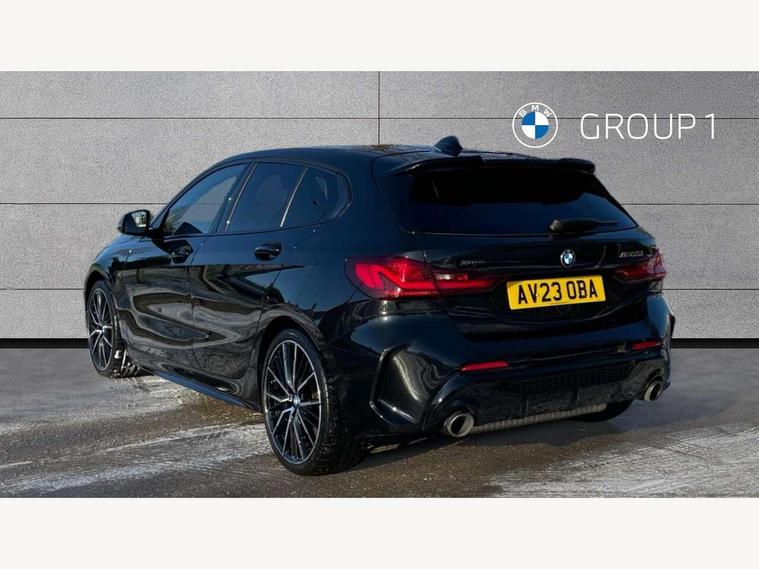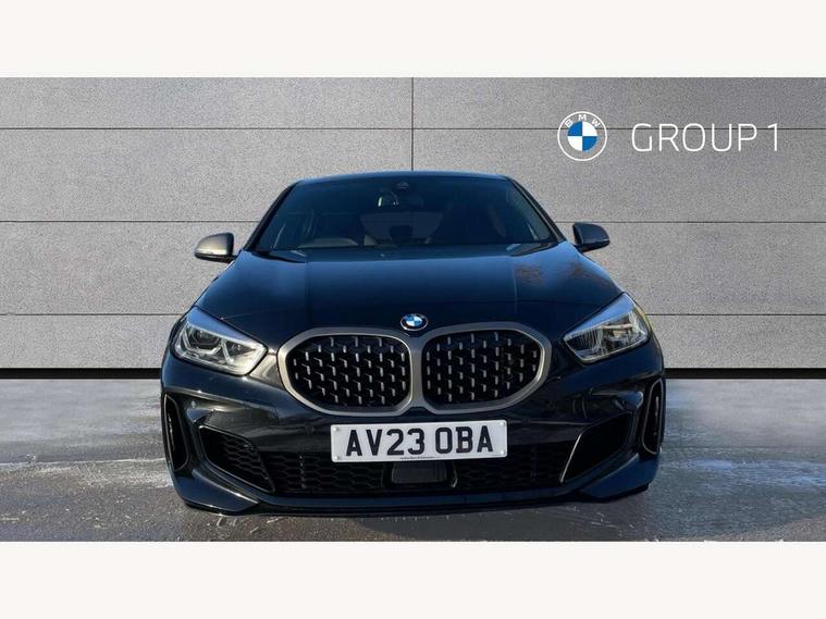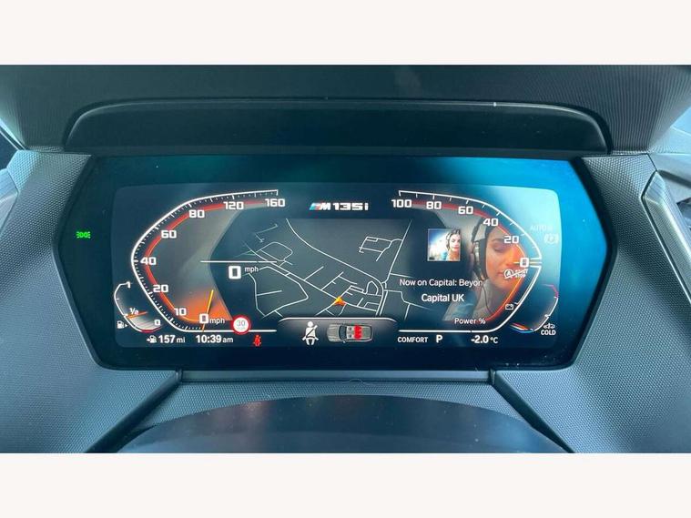 Active guard plus, Attentiveness assist, BMW ConnectedDrive online services, BMW Teleservices, Check Control warning system for monitoring of lights and door/luggage compartment open warning, Cruise control with speed limiter, Eco pro mode, Electric power steering, Electro hydraulically controlled multi-plate clutch transfers drive to rear axle and with power take-off device located on the front differential., Energy efficient operating strategy, Front axle single joint with specific axle kinematics to minimise drive influences on steering + provide increased rigidity agile driving behaviour, Gearshift time display in manual mode, Integrated owners handbook, Lane departure warning system, M Sports steering with M135i xDrive specific settings, Oil sensor for level and grade, On board computer, Optimum shift indicator, Personal Profile, Pull away assistant, Rigidly mounted rear subframe - Multi link construction with separate spring / damper configuration and excellent driving characteristics, Speed limit Info including no-overtaking indicator, Sporty fast gear shifting in sport mode, Aluminium lightweight construction, Anti roll bar front and rear, Balancer shaft, Double VANOS, Drive Performance Control, Eight speed sport automatic transmission with gearshift paddle switches, Electronic differential lock, Electronic selector lever, Engine cover with M performance designation, High precision injection, Larger fuel tank capacity (50 litres), Launch control, M135i specific heavily de-throttled engine intake air guide, M135i specific high-performance cooling package, M135i specific larger turbocharger with integrated divert-air valve, Petrol Particulate Filter, Twin tube gas filled shock absorbers with degressive characteristic curve, VALVETRONIC engine management, Variable, stepless and infinitely adjustable distribution of drive torque between the front and rear axles, xDrive intelligent all wheel drive with M135i specific reinforced components, DAB Digital radio, Auto dimming rear view mirror, Automatic headlight beam throw control, Automatic windscreen wipers and automatic headlight, Body colour door handles, Body colour roof trims, Cerium grey exterior mirror caps, Direction indicator side lights in exterior mirrors, Electrically adjustable exterior mirror with mirror adjustment switch on drivers armrest and aspheric on driver side, convex on passenger side, Exhaust tailpipe, Cerium Grey with bevelled finish - twin, round 100mm, left and right split, Fading support, Folding side mirrors with auto dimming/folding wing mirrors with auto dimming, Follow me home headlights, Front and rear bumper system with replaceable deformation elements, Front and rear electric windows with open and close fingertip control, anti trap facility and comfort closing, Front door sill finishers with M135i designation, Green tinted heat protection glazing, High gloss shadowline window frame, Recess cover mirror frames and B/C pillar embelisher trim, High level third brake light, Integrated front windscreen with washer jets, Kidney grille frame in Cerium Grey with Mesh design, LED daytime running lights, LED eyebrow turn indicators, Lightweight engineering, M logo designation side in cerium grey, M Performance exhaust system with valve control and minimised exhaust back pressure, M Performance specific setup, M Sport spoiler, Matt black air guide grilles, Matt black wheel arch trim, Model designation on electric bootlid includes xDrive designation for M135i xDrive, Nearside reverse light in rear light cluster, Preparation for high beam assistant, Rear fog lights, Rear side wing doors, Rear window wiper, Reinforced crank drive, new pistons and adapted con rods, Shark fin antenna, Trailer stabilisation logic, Visible VIN plate, Welcome lighting, 12V power socket in front centre console with blanking plug, 3 rear seat head restraints, 3 seat bench in 2nd row, 3 spoke sports leather steering wheel with black leather and stitching, pearl chrome decorative finish, specific M Badge, Anthracite headlining, Black boot net with lashing eyes, Cargo function on 2nd seat row, Child seat ISOFIX attachment for two outer rear seats and front passenger seat with anchorage points, Conditioned based service, Driver and front passenger backrest net on rear, Driver and front passenger seat heating, Driver side folding compartment in instrument panel, Folding rear clothes hook, Four grab handles integrated in roof lining, Front and rear door pockets with bottle holders, Front and rear side armrest integrated into door trim, Front armrest, Front M sports seats, Glove compartment, Height adjustable front head restraints, Luggage compartment for bag hooks on left and right, foldable luggage compartment liner and four lashing eyelets, Manual adjust steering wheel, Multi-function controls for steering wheel, Single front passenger seat, Storage compartment in centre console, Storage compartment in luggage compartment, Stowage of the parcel shelf in luggage compartment trim, Sun visors with vanity mirrors and insert tab, Two front centre console cupholders, Two zone automatic air conditioning, Type C two USB ports in rear centre console, Velour floor mats, Additional interior lighting pack - 1 Series M135i, BMW live cockpit professional pack- 1 Series, Connected pack professional - 1 Series, Interior lights pack - 1 Series, M Sport exterior styling aerodynamics pack - 1 Series 135i, 2 tone horn, 3 point seatbelts on all seats, front pyrotechnic belt tensioners, stopper and belt force limiters, rear coded belt buckles, Airbags - Front driver/passenger, front and rear curtain head protection, front side, manual deactivation of front passenger airbag, Anti lock braking system (ABS) with brake assist, BMW emergency call, Brake drying, Braking readiness, Child proof locking system in rear door, City braking function, Comfort modes, Cornering brake control, Crash sensor activating of airbags, Unlocking doors, hazard warning lights, interior light