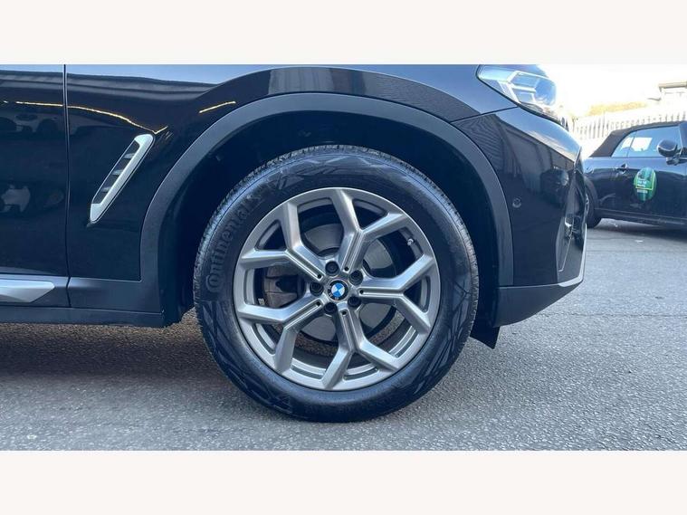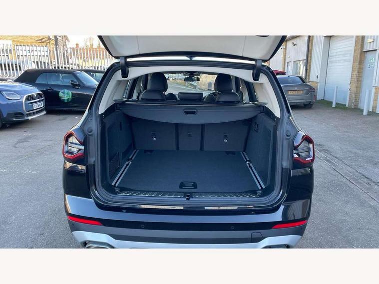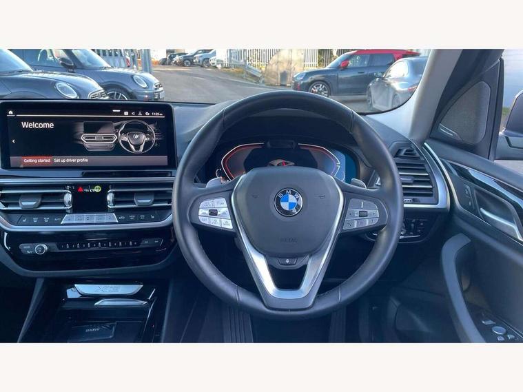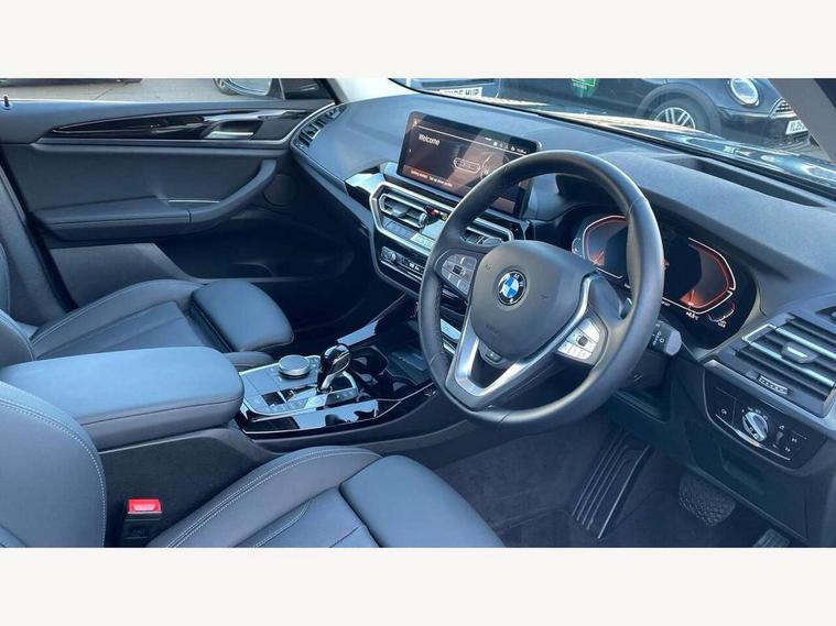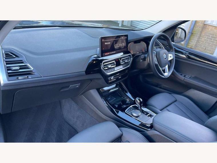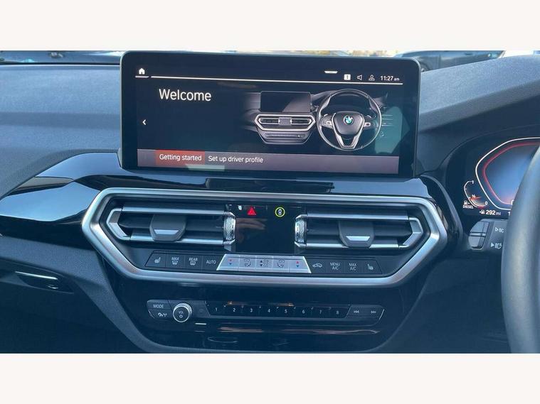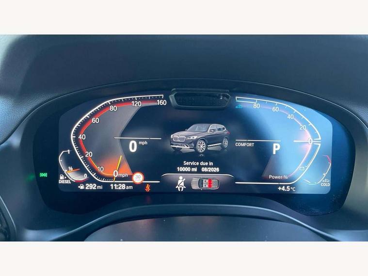 Active Guard, Attentiveness assist, BMW Live Cockpit Professional nav system including 12.3" instrument display + 12.3 high resolution control display, BMW Online services, BMW Teleservices, Brake pad wear indicator in front and rear, Check Control warning system for monitoring of lights and door/luggage compartment open warning, Condition based service - BMW service history, electronic service booklet, integrated owner's handbook, Connected drive services, Electric boot lid, Electric Power Steering (EPS) with Servotronic, Front/rear Parking distance control, iDrive touch controller with 8 favourite buttons, Instrument cluster with speedometer with mph readout, tachometer, fuel gauge and oil temperature gauge, Lights on warning by audio warning signal when ignition is switched off, Oil sensor for level and grade, warning by check control system, On board computer - average speed+fuel consumption, service interval, clock/date, odometer/trip meter, outside temperature display and ice warning, Optimum shift indicator, Personal Profile - automatic lock when driving away selectable, Run flat indicator, Stop/start system, Automatic transmission with gearshift paddles, Diesel particulate filter, Incorrect fuelling protection, Larger capacity fuel tank, Multi-link rear suspension, BMW professional radio/CD/MP3, DAB tuner, Acoustic glazing, Aluminium exterior trim, Automatic windscreen wipers and automatic headlight, Black finish on B pillars, Body colour door handles, Body colour electric adjust heated aspherical door mirrors, Body colour roof mouldings, Body coloured bumpers, Direction indicator, side repeaters, integrated in exterior mirrors, Dynamic brake lights, Exhaust tailpipes - dual, round, split left and right with chrome finisher, Fingertip control / anti-trap function on electric window, Folding wing mirrors with auto dimming, Follow me home headlights, Front and rear bumper system with replaceable deformation elements, Front and rear electric windows, Glacier silver metallic matt in side sills, Gloss chrome tailpipes finishers, Green tinted heat insulating glass, Heated windscreen washer jets, High beam assistant, High level 3rd brake light incorporating LED Technology, Interior rear view electrochromatic mirror with automatic anti dazzle function, LED tail lights, Lightweight engineering, M Sport entry door sill strips, Matt aluminium roof rails, Model designation, Rain sensor, Rear side wing doors, Rear wing door, Rear wiper, Shark fin antenna, Visible VIN plate, Welcome lighting, Windscreen wipers with adjustable interval, xLine exterior styling with underbody protection, 12V power point in luggage area, 12V power socket in front centre console, 2 x USB Type C ports for charging and data transmission (front centre console) and 2 x USB Type C ports for charging (rear centre console), 3 rear headrests, 3 seat bench in 2nd row, 3 spoke sports leather multi-function steering wheel, 3 zone automatic air conditioning, 4 lashing points to secure luggage, 40:20:40 split folding rear seat with loading system, Ambient lighting, Automatic interior light when door is opened/ignition switched off or via remote key, Floor mats in velour, Foldable storage floor with compartment, Four grab handles integrated in roof lining, Front and rear bottle holders integrated into door trim storage compartments, Front and rear side armrests integrated into door trim, Front centre armrest with storage compartment, Front door sill finishers with BMW X-line designation, Front footwell lights, Front head restraints, Front passenger seat, Front sports seats, Front/rear courtesy lights with soft on/off dimming, Front/rear reading lights, Heated front seats, Isofix rear child seat preparation, Leather gear knob, Lockable glove compartment, Luggage area underfloor compartment, Luggage compartment lighting, Parcel shelf removeable and storable under boot floor, Reach and rake adjustable steering column, Rear centre armrest with 2 cupholders, Removable / retractable luggage cover, Sensatec perforated upholstery, Slope adjustable rear seats, Storage compartment in rear centre console and front/rear door trims, Sun visors with vanity mirrors and ticket pocket, Toolkit located in luggage compartment, Two front cupholders with removable oddments tray/lid, Connected pro pack - X3, ADB - Automatic Differential Brake, Anti-lock braking system (ABS) with brake assist, Automatic Stability Control (ASC), Battery safety cut-off, BMW emergency call, Brake drying, Brake energy regeneration, Braking pre-tensioning, Child locks on rear doors, Cornering brake control (CBC), Crash Sensor - activation of central locking release, hazard warning light and interior lighting, Deactivation of fuel pump in the event of a crash, Driver and front passenger front and side airbags with passenger deactivation and ITS front and rear head airbags, Driver and front passenger knee airbag, DSC+, Dynamic brake control, Dynamic Traction Control - DTC, Electromechanical parking brake, Hill descent control, Hill start assist, Seatbelt security check for front seats, Side impact protection, Three point seatbelts to all seats with front and outer rear pyrotechnic belt tensioners and seat belt force limiters, Two tone horn, Tyre pressure sensor, Ventilated front and rear disc brakes, Warning triangle and first aid kit, Central locking switch for all doors, fuel filler cap and luggage compartment, Electronic engine immobiliser, Locking wheel nuts, Remote control including two integrated key - one button for open/close all lockable content, windows and separate button for open luggage compartment, Remote control Thatcham category 1 alarm, Start/stop button with Comfort Go keyless engine start and auto Start/stop deactivation button, Low rolling resistance tyres, Tyre repair kit,