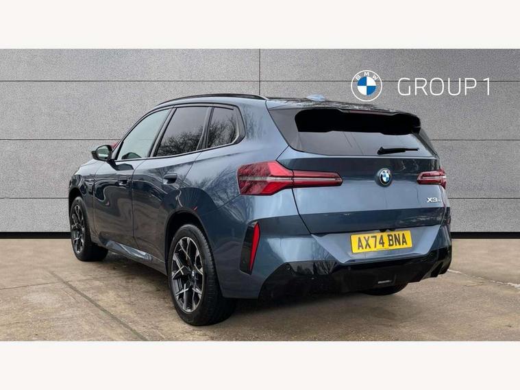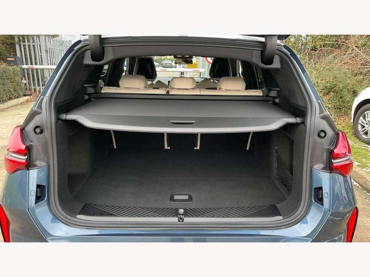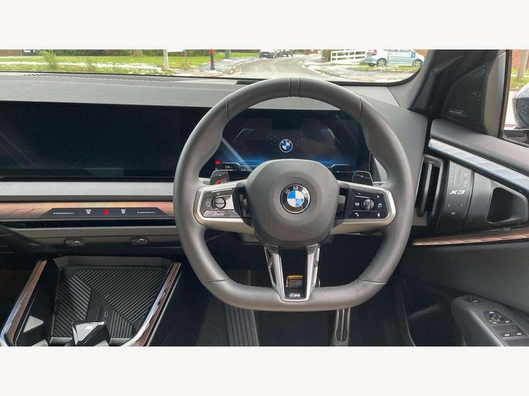 Active guard professional, Attentiveness assist, Automatic operation of tailgate, BMW ConnectedDrive online services, BMW iDrive, BMW Online services, BMW Teleservices, Brake pad wear indicator, Condition based service, Cruise control with brake function + speed limiter, Drive off assistant, Driving Assistant Plus Preparation, Flat tyre monitor, Language version English, My Mode - Personal, Efficient, Sport, Relax, Expressive, Parking assistant, Reversing assist camera, Servotronic system, Variable sport steering, Dynamic stability control, Multiple control arm rear axle, Steptronic transmission with gearshift paddles, Two-joint strut-type front axle with tension strut, DAB tuner, Personal eSim, 4 tailpipe tips, B-pillar trim panel in black high-gloss, BMW badge on front and rear, BMW M-specific front/rear bumpers and side sills, BMW M-specific radiator grille with horizontal bars in Dark Silver and M logo, Daytime running lights, Door handles flush to the surface with lock barrel on driver's side, Dynamic brake lights, Electric adjustable and heated door mirrors, Electric window trap release and convenient opening/closing feature, Headlight beam throw control, Heated rear window, Heated windscreen washer jets, High beam assistant, LED 3rd brake light, LED rear lights, LED tail lights, Locking of the doors, M high-gloss shadowline, M-specific Exterior mirrors, Mirror base and mirror blade in black high-gloss, Mirror triangle in black high-gloss, Rain sensor with automatic headlight activation, Rear side wing doors, Rear wiper, Reversing light, Side window frame in black high-gloss, Windscreen wipers, 12v power socket in front centre console and luggage compartment, 2 x USB Type C ports for charging and data transmission (front centre console) and 2 x USB Type C ports for charging (rear centre console), 3 rear headrests, 3 seat bench in 2nd row, 3 zone automatic air conditioning, 40:20:40 split folding rear seat with loading system, Ambient lighting, Anthracite headlining, Electric adjustable seats with memory function, Floor mats in velour, Footrest and pedals in black plastic, Four grab handles integrated in roof lining, Front armrest with integrated control panel, Front centre console trim in black high-gloss, Front head restraints, Front passenger seat, Front sports seats, Glove compartment, i-Size / ISOFIX attachment points on both outer rear seats, with covers in black, Luggage compartment separating net, M sport leather steering wheel, Multifunction steering wheel, Rear side armrests integrated into door trim, Selector lever with toggle operation, Steering column adjustment, Sun visors with illuminated vanity mirrors, Three upper retaining strap clips integrated into the rear panels of the seat backrests, Through loading system, Two front cupholders and two in the rear center armrest, Wireless charging tray, Connected pro package - X3, Driving assistant package - X3, Interior and exterior mirror package - X3, 3 point seatbelts, Airbag deployment is controlled with respect to the intensity and scope, Anti-lock braking system (ABS), Automatic hold function, BMW emergency call, Brake assist, Brake drying, Brake energy regeneration, Braking readiness, Central airbag, Child locks on rear doors, Cornering brake control (CBC), Crash Sensor - activation of central locking release, hazard warning light and interior lighting, Driver and front passenger front and side airbags, Dynamic brake control, Electromechanical parking brake, Front and rear disc brakes, Head airbags, Integrated braking system, Post Crash Collision Warning with braking function, Trailer stability control, Tyre pressure sensor, Warning triangle, Alarm system, Closing system with central locking, Comfort access system, Locking wheel bolts, Start/stop button with keyless motor start with acoustic drive, Tyre repair kit,