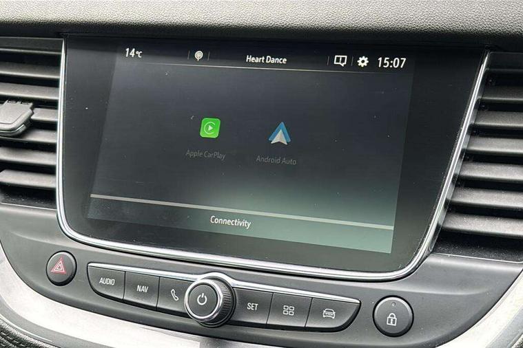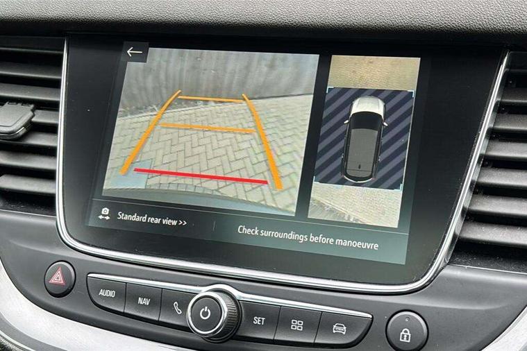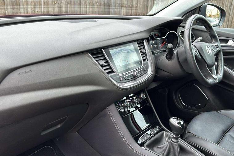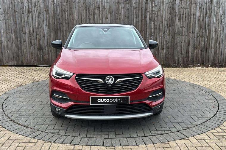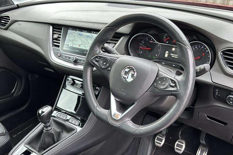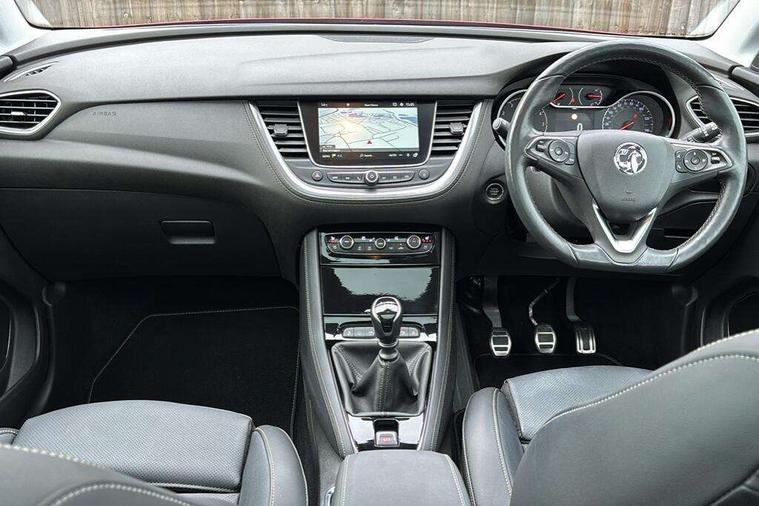 3.5" colour information display, Audible lights on warning, Central facia display with digital clock, outside air temperature and audio information, Cruise control with speed limiter, Digital water temperature gauge with warning light, eCall emergency call system, Fuel gauge with low fuel level warning light, Gearshift up/down indication light, Lane departure warning system, Multi function trip computer, Multimedia navi pro with 8" colour touch+ sat nav+AM/FM/DAB radio, bluetooth audio streaming/mobile phone portal, Apple carplay/Android auto, USB, Rev counter, Service interval indicator, Speed sensitive electric power assisted steering, Speed sign recognition, Speedometer, Vauxhall connect including Ecall and connected services, iPod connection, Steering wheel mounted audio/phone/cruise controls, Alloy effect front door sill covers, Auto tilting door mirrors, Automatic anti dazzle rear view mirror, Automatic lighting control, Body colour door handles, Chrome effect bar on front grille, Chrome side window trim, Collapsible windscreen wipers, Dark tinted rear windows, Door to door illumination, Electrically foldable door mirrors with puddle lights, Electrically operated front and rear windows with safety auto reverse and one touch up/down facility, Gloss black finish B pillar, Hazard warning lights, Heated windscreen, High beam assist, High level centre rear brake light, IntelliLux LED headlights with adaptive forward lighting, Intermittent rear window wash/wipe, LED daytime running lights, LED front fog lights, LED rear fog lights, LED tail lights, Manual headlight beam levelling, Rain sensor windscreen wipers, Rear spoiler, Reversing lights, Shark fin aerial, Side protection mouldings, Side window demist vents, Sound absorbing windscreen, Twin electrically adjustable and heated door mirrors, Two speed windscreen wipers with variable intermittent wipe, Upper and lower bumper design, Welcome lighting, Windscreen demist vents, 12V electrical accessory socket in front, 12V electrical accessory socket in luggage compartment, 230V accessory socket, 3 spoke leather covered heated steering wheel with satin chrome bezel, Alloy sports pedals, Anti submarining front seats, Automatic air direction and fan speed with manual override, Black sienna leather side bolsters, Chrome effect interior door handles, Covered storage compartment in centre console and in driver armrest, Driver's centre armrest, Driver/passenger sunvisors with illuminated vanity mirrors, Electronic dual zone climate control with air conditioning + advanced predictive logic control using sensor + Charcoal filter + illuminated controls, Four adjustable facia vents, Front and rear passenger assist handles, Front door pockets with 2.6 litre capacity, Front seat back storage pockets, Heated rear windscreen with timed cut-off, Height adjustable front and rear head restraints, Interior courtesy light operated by all doors, Isofix attachment on front seat, Isofix system on outer rear seats, Luggage compartment cover, Premium lighting -Ambient centre console downlighter/ambient lighting in front doors, Reach + rake adjustable steering column, Rear door pockets with 1.8 litre capacity, Rear passenger compartment heating ducts, Rear reading lights, Sienna perforated leather upholstery, Two drinks holder in centre console, Ventilated glove box with lid, Ergonomic active sports front seats and power driver's seat pack - Grandland X, Exterior styling pack - Grandland X, Park and Go pack three - Grandland X, Safety pack - Grandland X, Versatility pack - Grandland X, Winter pack one - Grandland X, 3x3 point rear seatbelts, Anti-lock braking system (ABS), Child proof locks on rear doors, CSC - Cornering stability control, Deactivation switch for front passenger front and side impact airbags, Deflation detection system, Deformation zones front and rear, Driver/Front Passenger airbags, Dual seatbelt pretensioners on front seats, EBD - Electronic brakeforce distribution, Electronic parking brake, Energy absorbing steering column, Engine drag torque control, Front and rear seatbelt reminder, Front seat side impact airbags, Full size curtain airbags for driver, front passenger and outer rear passenger seats, Hill start assist, Hydraulic Brake Assist (HBA), Inertia reel lap and diagonal seatbelts for all seats, Load limiters on outer rear seatbelt retractors, Outer rear seatbelt pretensioners, Reinforced passenger safety cell, Side impact protection beams, Switchable electronic stability programme, Traction control, Tyre pressure monitoring system, 2 remote folding keys, Electronically protected audio equipment, Engine deadlock and immobiliser, Keyless entry and engine start/stop includes power operated tailgate with foot sensor, Locking wheel nuts, Remote control central locking, Remote security alarm system, Visible vehicle identification number, Black door panels with black premium leather effect inserts, 19" Multi spoke bi-colour diamond cut alloy wheels,