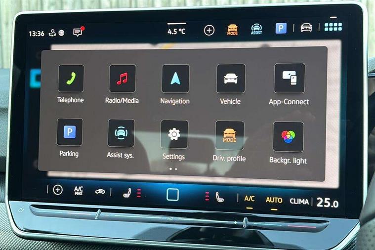 Activated carbon canister, Adaptive cruise control (ACC), Advanced driver attention and drowsiness monitor, Dynamic road sign display, Dynamic steering, E-Sim card for online connectivity, eCall emergency call system, Multi-color Digital cockpit pro, selection of different info profile possible, Multifunction front facing camera for distance control, Navigation system, Oncoming vehicle braking when turning including swerve support, Speed limiter, Speedo, rev counter, electronic odometer, trip, service interval display, exterior temperature and fuel gauge, Traffic jam assist, Voice enhancer and voice control, Warning signal and warning light for front and rear seatbelts not fastened, We connect plus preparation, We connect preparation, Wireless app connect, Hybrid propulsion system, Petrol Particulate Filter, Start-stop system with battery regeneration (recuperation - energy recovery during braking), XDS electronic differential lock for improved traction and handling, 2 USB C ports in front, 2 USB charging sockets on the centre console in the rear charging capacity upto 45W, Digital radio reception (DAB), Diversity antenna for FM reception, Gaming platform via car app, Infotainment system with 12.9" display, Mobile phone interface with inductive charging feature, 3rd brake light, Auto dimming rear view mirror, Automatic headlamp activation with Coming home and Leaving home feature, Body colored bumpers in R-Line style, Body colour door handles, Exterior ambient lighting, Exterior mirrors convex on the left and aspherical on the right, Front and rear electric windows, Heat insulating windshield made of laminated glass, LED separate daytime running light, Rain sensor, Rear exhaust tailpipe, Rear fog light on one side and reversing lights on both sides, Rear side wing doors, Rear windscreen washer and wiper with interval delay, Remote electrically foldable door mirrors, puddle lights and reverse activated passenger's door mirror, Volkswagen logo in front, illuminated lighting animation with wake up/goodbye scenario and illuminated door handles, Welcome light with surround lighting, 12V socket in front centre console, 12V socket in luggage compartment, 3 rear head restraints, 3 seat bench in 2nd row, Ambient lighting with 30 colour including LED light unit in front footwell with selectable light colour, Black roof lining, Brushed stainless steel pedals, Chrome plated radiator grille inserts, air vent surrounds and light switch surrounds, Door insert, side trim panel and arm support in leatherette, Front + rear black carpet mats, Front centre armrest, Front seat lumbar support adjuster, Integrated front head restraints, ISOFIX anchors for child seats on outer rear bench seats and on front passanger seat compatible for i-Size, Luggage compartment lighting, Manual height adjustable front passenger seat, Manually height adjustable driver seat, Plastic gear knob, Premium sports seats in front, Rear cupholder and loadthough, Sardegna cloth upholstery with front and outer rear seats Art Velour inner sides of bolsters, Single front passenger seat, Split folding backrest with centre armrest and unsplit rear seat bench, Sun visors with illuminated vanity mirrors, Titanium black instrument panel, Black exterior Styling package with Matrix LED headlights - Golf, Winter package - Golf DSG Estate/Hatchback, 3 point height adj front seatbelts + pretensioners, 3 rear three point seatbelts, ABS, Autonomous emergency braking front assist with pedestrian and cyclist monitoring, Child locks on rear doors, Driver and front passenger airbag with front passenger airbag deactivation, Electronic parking brake with auto hold, ESC (Electronic Stability Control), Extended pedestrian protection measures, Hill start assist, Rear disc brakes, Two tone horn, Tyre pressure loss indicator, Volkswagen roadside assistance, Anti theft wheel bolts, Preparation for alcohol interlock, Decorative inserts carbon grey for dashboard and front door trim panels, 18" Leeds alloy wheels, Tool kit for tyre mobility set, Tyre mobility kit Includes 12V compressor and tyre sealant,