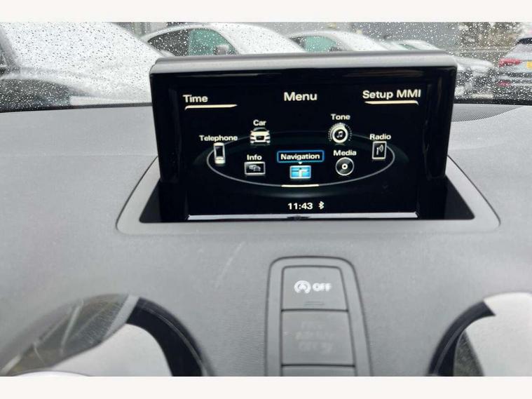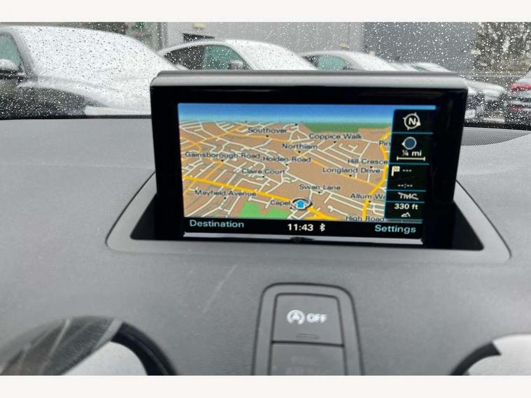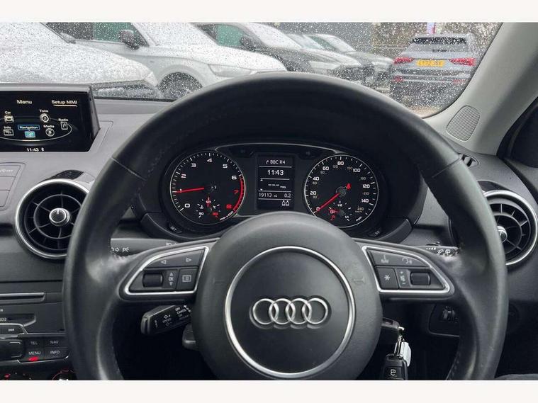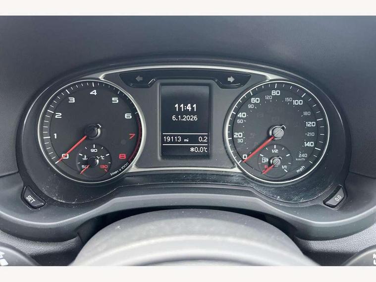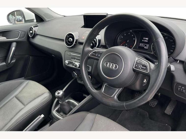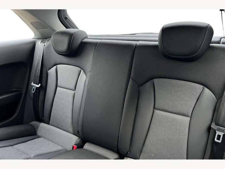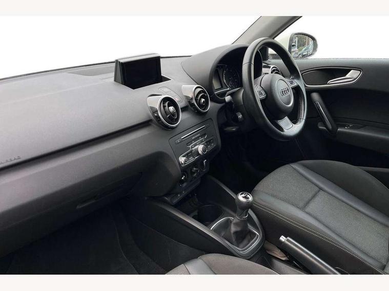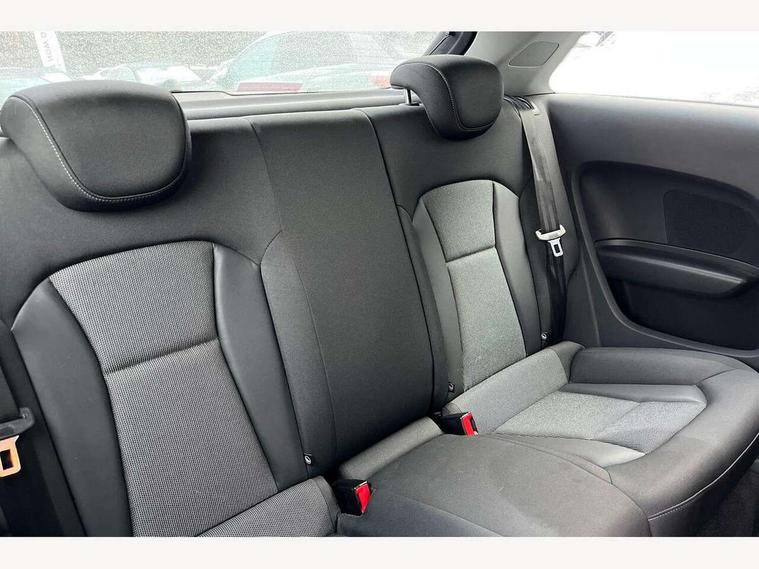 Cruise control, Driver's information system, Electro-mechanical PAS, Low washer fluid indicator, Service interval indicator, Voice control system, Additional SD card reader, Audi music interface, Bluetooth audio streaming, DAB Digital radio, Adaptive brake lights, Body coloured bumpers, Body coloured door mirrors, Electric adjustable door mirrors, Electric front windows, Front fog lights, Heat insulating glass, Heated door mirrors, Heated rear windscreen, Rear wiper, 12V Accessory socket in centre console, 3 spoke leather multifunction sports steering wheel, Adjustable rear head restraints, Cupholders in centre console, Door sills trims with aluminium inlays, Front floor mats, Front head restraints, Front seats - 'Easy Entry', Front sports seats, Height adjustable front seats, Illuminated glovebox, Isofix attachments on outer rear seats, Jack and tool kit, Leather handbrake, Lumbar adjustment for front seats, Rake/reach adjustable steering wheel, Split folding rear seats, Titanium grey cloth headlining, Non smoking pack - A1, ABS/EBD, Brake assist function, Driver and passenger side airbags, Driver/Front Passenger airbags, EDL, ESP with ASR, First aid kit, Front and rear seatbelt reminder, Front passenger airbag deactivation, Head airbags, Height adjustable front seatbelts, Rear three point seatbelts x 2, Tyre pressure monitor, Warning triangle, Locking wheel bolts, Remote control central locking, Thatcham category 1 alarm + immobiliser, Tyre repair kit,