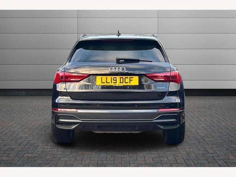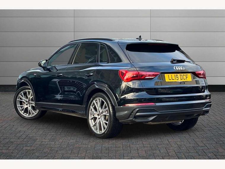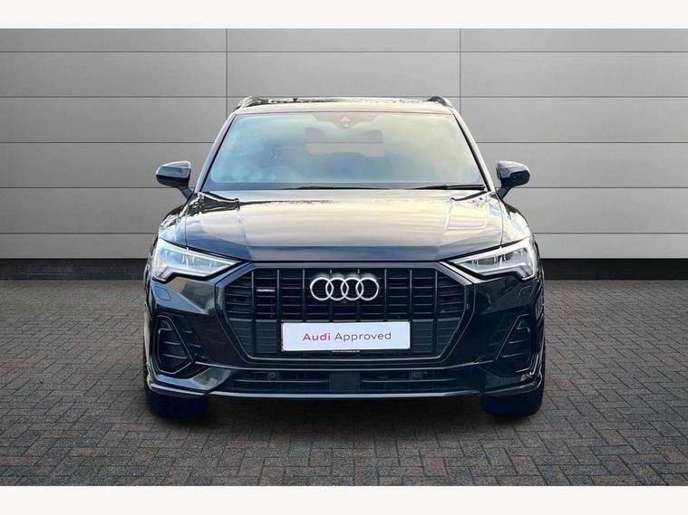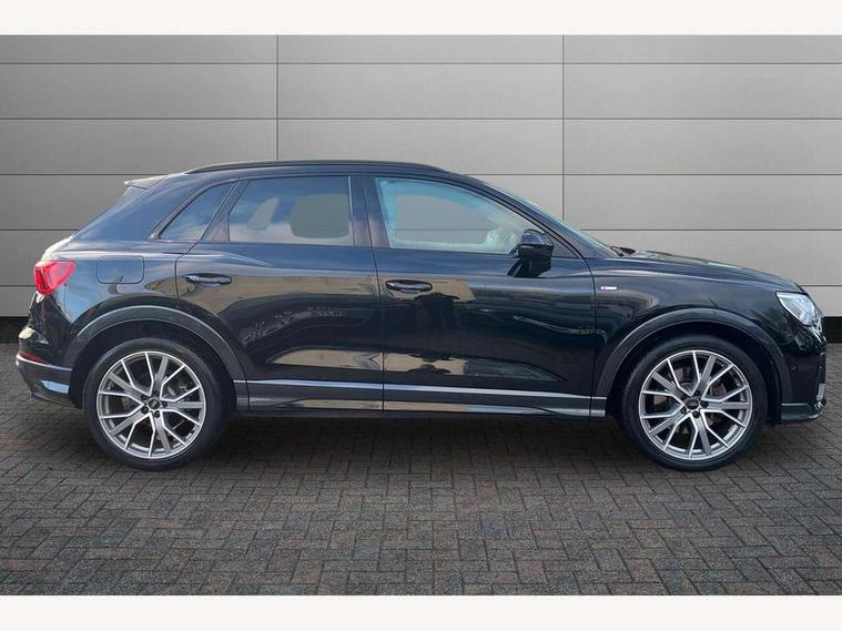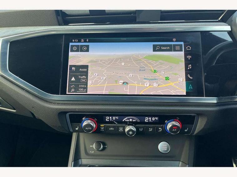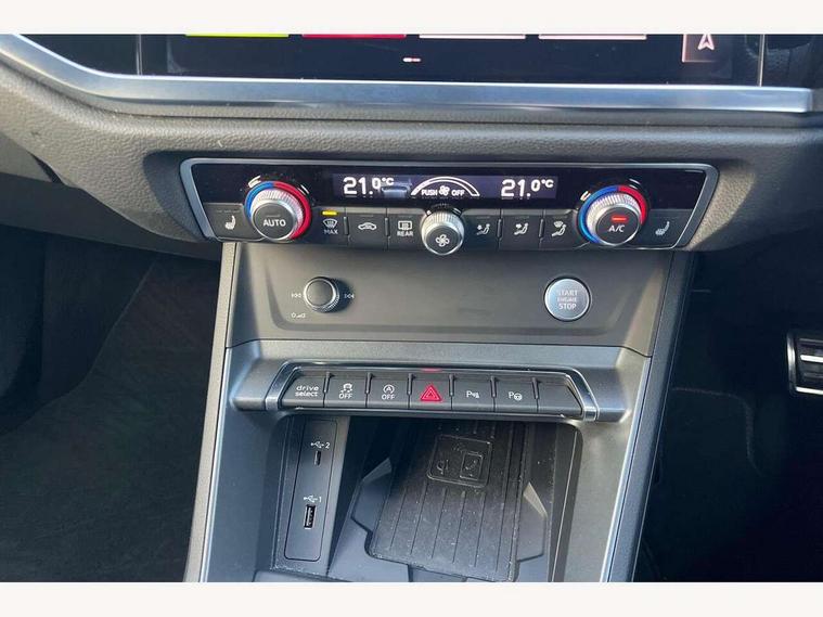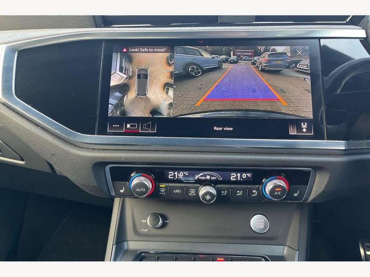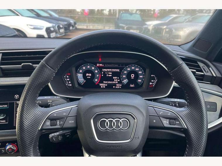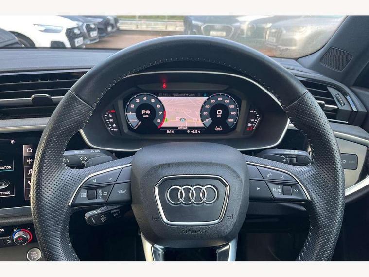 360 degree parking camera, Audi connect safety and service (e-call), Audi drive select, Audi lane departure warning, Audi parking system plus with front and rear sensors, Audi phone box with wireless charging, Audi side assist, Audi smartphone interface, Audi virtual cockpit plus, Bluetooth interface, MMI navigation plus with MMI touch, Power opening/closing tailgate, Progressive steering, Rear cross traffic alert, Service interval indicator, Stop/start system, Voice control system, Adaptive suspension with damping control, Bang & Olufsen 3D Premium Sound System, DAB digital radio module, Acoustic windscreen, Aluminium roof rails, Auto dimming and folding door mirrors, Auto dimming rear view mirror, Black roof rails, Contrast bumpers in Manhattan grey paint finish, Diffuser in matt Platinum grey, Electrically adjustable and heated door mirrors with integrated LED side indicators, Front and rear electric windows, Front fog lights, Front side air inlets in matt platinum grey, Front spoiler blade in matt platinum grey, Front spoiler in matt selenite silver, Grille vertical bars in aluminium silver/Matt, Headlight washers, High gloss black finish B and C pillars, Matrix LED headlights with LED rear lights and dynamic front and rear indicator, Panoramic opening glass sunroof, Privacy glass, Rain and light sensors, Rear diffuser strip in selenite silver, S line bumpers in contrasting Manhattan grey, 12V socket in rear centre console, 3 spoke flat bottomed high multi-function leather sport steering wheel with gearshift paddles, 4 way electric lumbar support for driver and front passenger, 40:20:40 split folding rear bench seat, Adjustable rear seat bench/backrest with centre armrest and cupholder, Aluminium door sill trims, Black cloth headlining, Dual zone climate control, Electrically adjustable front seats, Front and rear black floor mats with contrast stitching in rock grey, Front and rear headrests, Front centre armrest with storage compartment and angle adjustment, Heated front seats, ISOFIX child seat mounting and Top Tether with front passenger airbag deactivation, Perforated leather gearknob, Stainless steel luggage compartment sill finisher, Stainless steel pedals, Black styling pack - Q3, Driver Assistance Pack - Q3, Multi coloured extended ambient interior lighting pack - Q3, Non smoking pack - Q3, 3x3 point rear seatbelts, 6 airbags - Driver, front passenger, curtain and side windows, Audi pre-sense front with pedestrain and cyclist recognition, Electronic stabilisation control including ABS, ASR and EDL, Hill hold assist, Pre sense basic, Seatbelt monitoring, Tyre pressure warning, Warning triangle and first aid kit, Advanced key, Anti theft alarm, Anti theft wheel bolts, Remote central locking, Dark matt brushed aluminium inlay, MMI touch colour display in gloss black with aluminium surround,
