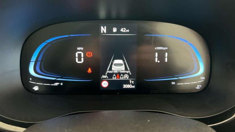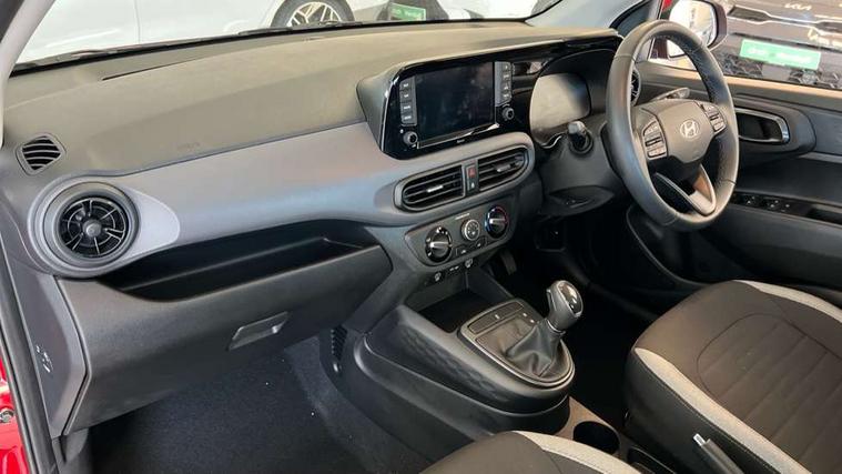 8" Touchscreen satellite navigation including mapcare and LIVE services, Apple car play/Android Auto, Bluelink mobile remote connectivity, Bluetooth connectivity with voice recognition, Cruise control, Driver attention alert system, eCall emergency call system, Forward Collision-Avoidance Assist (FCA) - Pedestrian/Cyclist, Full-width 4.2" LCD instrument cluster, Intelligent speed limit assist, Lane departure warning system with lane keep assist - LKAS, Lane follow assist, PAS, Rear parking sensors, Rear view camera with guidelines, Roadside assistance, Start/Stop function, Tailgate, Trip computer, 2 front/2 rear speakers, Front and rear USB-C ports, Front USB connection, Leading vehicle alert (LVA), Steering wheel audio, phone and cruise controls, 1 speed non intermittent rear windscreen wiper, Black finish on B pillars, Body colour door handles, Body coloured bumpers, Body coloured door mirrors, Electric front windows, Electric rear windows, Electrically adjustable and heated door mirrors, Flat metal emblem, Front grille in matte black, Front intermittent wipers, Halogen headlights, Headlights inner with Black Blade design, Heated rear window, High beam assist, Indicator light on door mirrors, LED daytime running lights, Rear roof spoiler with integrated LED brake light, Rear side wing doors, 12v power outlet - front, 3 seat bench in 2nd row, 60/40 split folding flat to floor rear seats, Auto light control, Bottle holders in front/rear doors + front centre console, Cabin and luggage compartment interior lighting, Cloth upholstery, Driver + passenger vanity mirrors, Driver's seat height adjustment, Driver/passenger sunvisors with ticket holders, Floor mats, Front door pockets, Front Head Restraints - Vertical and Horizontal Adjustment, Glove compartment, Height adjustable steering column, Isofix child seat preparation, Leather wrapped steering wheel and gear knob, Manual air conditioning, Rear door pockets, Single front passenger seat, Vertical adjustment rear head restraints, 3x3 point rear seatbelts, Airbags - front, front side and curtain airbags, Anti-lock brake system (ABS), Autonomous emergency braking (AEB) with forward collision warning system, Brake assist function, Childproof rear door locks, Electronic stability control, Front and rear seatbelt reminder, Front seatbelt pretensioners, Hill start assist control (HAC), Passenger airbag deactivate switch, Traction control, Tyre pressure monitoring system, Immobiliser, Perimeter alarm, Rear occupant alert, Remote central locking, Second remote key, Speed sensitive auto door locking, 15" Alloy wheels, Temporary mobility kit (TMK),
