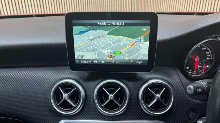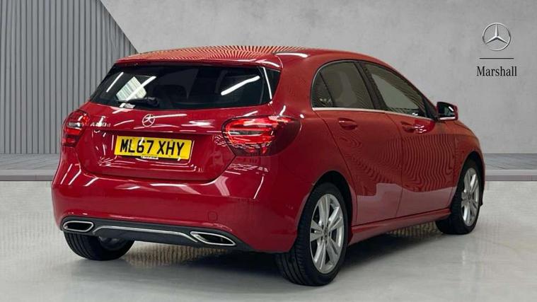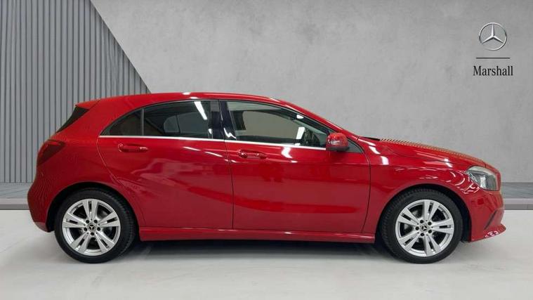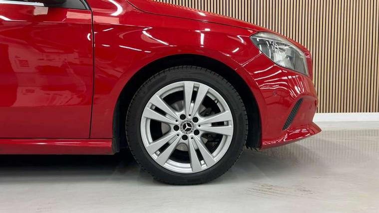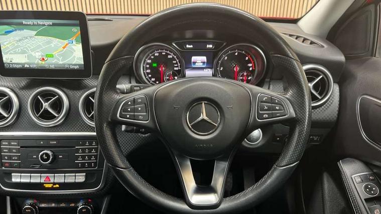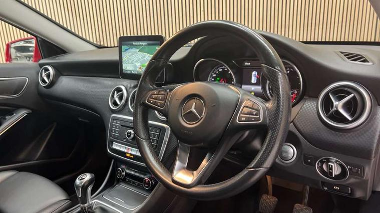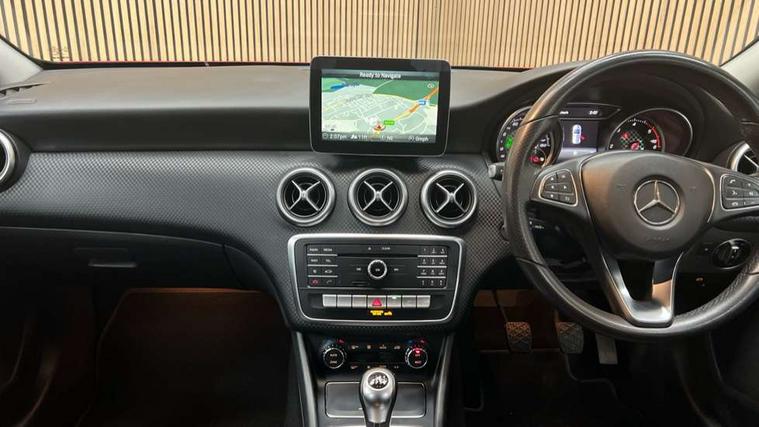 Checked pattern trim, Chrome air vent surrounds, Seat comfort pack - A Class, 3 rear 3 point seatbelts, ABS with Brake Assist, Active bonnet, Adaptive brake system, Child proof door locks, Crash responsive emergency lighting, Drivers knee airbag, Dual stage Driver/Passenger Airbags, Electronic parking brake, ESP with ASR, Front and rear seatbelt reminder, Front head airbags, Front passenger seat occupancy sensor, Front side airbags, Hill start assist, Tyre pressure monitoring system, Warning triangle and first aid kit, Window airbags, 17" 5 twin spoke alloy wheels, Tirefit sealant with electric air pump, Alarm system/interior protection/immobiliser, Keyless ignition, Remote central locking, Comfort suspension, USB port, Adaptive brake lights, Body colour bumpers, Body colour door handles, Body colour side skirt, Body coloured door mirrors, Chrome beltline, Daytime running lights, Diamond radiator grille with black pins with one louvre in silver + chrome insert, Electric adjustable heated door mirrors, Electric front windows, Electric rear windows, Headlamp assist, Heated rear window with timer, LED tail lights, Rain sensor windscreen wipers, Rear wiper, Twin Trapezoidal tailpipes, 1/3 to 2/3 split folding rear seats, 12V socket, 3 spoke perforated leather multifunction sports steering wheel, Adjustable head restraints, Artico man-made leather upholstery, Auto Mercedes-Benz child seat recognition sensor, Dual zone automatic climate control, Footwell lights, Front and rear reading lights, Front centre armrest with storage compartment, Front head restraints, Heated front seats, Height adjustable front seats, Height/reach adjustable steering column, Illuminated door sills, Illuminated glovebox, Illuminated storage compartment, Isofix rear child seat preparation, Leather gearshift, Load securing rings in luggage compartment, Luggage compartment cover, Rear head restraints, Storage compartment under load area floor, Sunvisors with illuminated vanity mirrors, Twin front cupholders, 8" colour display screen, Attention assist, Bluetooth interface for hands free telephone, Bulb failure indicator, Collision prevention assist plus, DYNAMIC SELECT with a choice of driving modes (ECO, Comfort, Sport, Sport+ and Individual), External temperature gauge, Low fluid warning light, Park assist pilot with front and rear park assist, Reversing camera, Service indicator (ASSYST PLUS), Speed sensitive parameter assisted steering, Speedtronic cruise control, Trip computer, Voice control system,