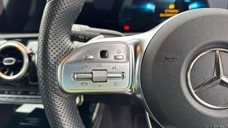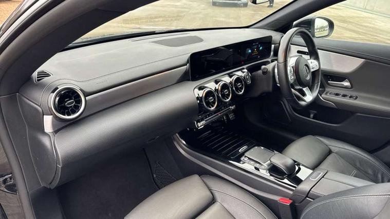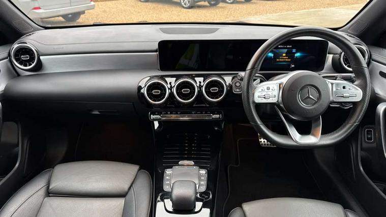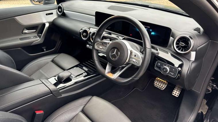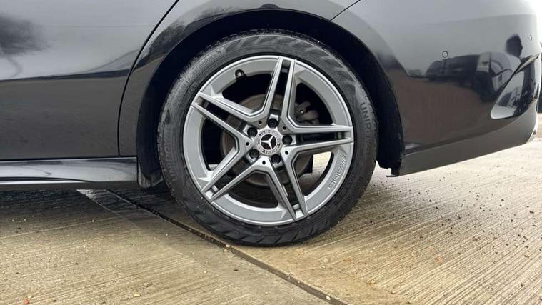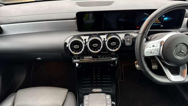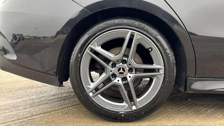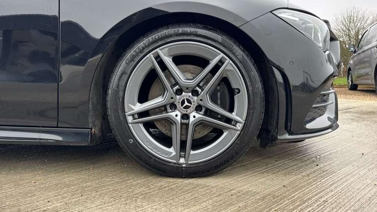10.25 inch touchscreen central media display, 7 inch Instrument display with digital cockpit, Active lane keeping assist, Attention assist - Monitors steering behaviour and long journey fatigue, Cruise control with limiter, Direct steer system with speed sensitive power steering, Dual bluetooth interfaces, DYNAMIC SELECT with a choice of driving modes (ECO, Comfort, Sport, Sport+ and Individual), ECO start/stop function, Fluid level warning indicator for fuel, oil, coolant and washer fluid, Hard-disk navigation, Hey Mercedes Voice activation, Lamp failure indicator, Mercedes me connect including emergency call system, accident recovery, breakdown and maintenance management, Outside temperature gauge, Owners manual and service booklet in English, Pre-installation for Vehicle Monitoring, Pre-installation for Vehicle Setup, Pre-installation of private car share, Preinstallation for Mercedes Benz link, Radio aerial integrated into front and rear windshields, Service indicator (ASSYST), Smartphone integration with Apple CarPlay and Android auto, Speed limit assist, Trip computer in multifunction display with current consumption indicator, Wireless charging, 7G-DCT 7 speed automatic transmission, Lowered comfort suspension, Rear axle multi-link, Sporty engine sound system, DAB digital radio tuner, MBUX multimedia system with DAB digital radio and touchpad including satellite navigation, Mercedes Benz sound system (100 W) with 6 speakers, USB (type C) ports (2) in stowage compartment and 1 in front of centre console, Adaptive brake lights, AMG body styling with AMG front apron and rear apron and visible exhaust tailpipe in chrome trim elements, AMG bodystyling side skirts, Body colour bumpers, Body colour door handles, Chrome beltline strips, Diamond radiator grille pins in chrome with silver painted louvres and chrome insert, Electric windows, Electrically adjustable and heated door mirrors with integrated LED indicators, Exhaust system with 2 Visible tailpipe trim elements and rear apron with trim in chrome, Headlamp assist automatic headlamp activation, Heated glass rear windscreen + timer control, High level LED third brake light, LED high performance headlamps with integrated LED daytime running lights, LED tail lamp, Privacy glass with dark tinting on rear side windows and rear window, Rain sensing windscreen wipers with two sensitivity settings, Rear fog lamp, Vehicle Monitoring, Vehicle Setup, Window line trim strip in chrome, 3 spoke flattened bottom nappa leather multifunction steering wheel with perforated leather in grip area, 40:20:40 split folding rear seat backrests, Air conditioning - Two zone thermotronic luxury automatic climate control with display, Air vents with surround in silver chrome, Automatic child seat recognition sensor, Black roof lining, Brushed stainless steel sports pedals with rubber studs, Floor mats with stitched AMG lettering, Front centre armrest with stowage, Front door sills with Mercedes Benz lettering, Front seat cushion length adjustment, Galvanished gear shift paddles on steering wheel, Heated front seats, Illuminated glove compartment stowage, Luggage net on driver/front passenger seat backrest, Manually adjustable front seats, Manually height and reach adjustable steering column, Rear head restraints, Rear interior lamp, Spectacles compartment for driver, Sport seats with fixed head restraints, Stowage compartment in centre console with retractable cover, Sunvisors with illuminated vanity mirrors, Touchpad on center console, Twin front cupholders, Two outer rear seat isofix and top tether child seat fixing points, Light and sight pack - CLA, Mirror pack - CLA, Parking package - CLA, Seat comfort pack - CLA, Active bonnet pedestrain safety measure which detects an impact and raises bonnet by 65mm, Active brake assist includes forward collision warning system with autonomous braking, Adaptive brake assist with hold function and hill start assist, Anti-lock braking system (ABS), Black seat belts, Bonnet with power domes, Brake pad wear warning indicator, Childproof locks manually operated for rear doors and electrically operated for rear power windows, Crash responsive emergency lighting, Driver and front passenger head and sidebags, Driver and front passenger windowbags, Drivers knee airbag, Dual stage driver and front passenger airbags, Electric parking brake, Electronic stability programme with acceleration skid control, ESP curve dynamic assist, Front and rear seatbelt reminder, Front brake callipers with Mercedes Benz lettering, Front passenger seat occupancy sensor, Three point rear seat belts, Tyre pressure monitoring system, Warning triangle and first aid kit, Alarm system with immobiliser and interior protection -Thatcham category 1, Keyless Go starting function, Remote central locking and crash sensor with emergency opening function, Light aluminium with longitudinal grain interior trim, 18" 5 twin spoke design alloy wheels painted in titanium grey with high sheen finish, Summer tyres, Tirefit tyre sealant kit,