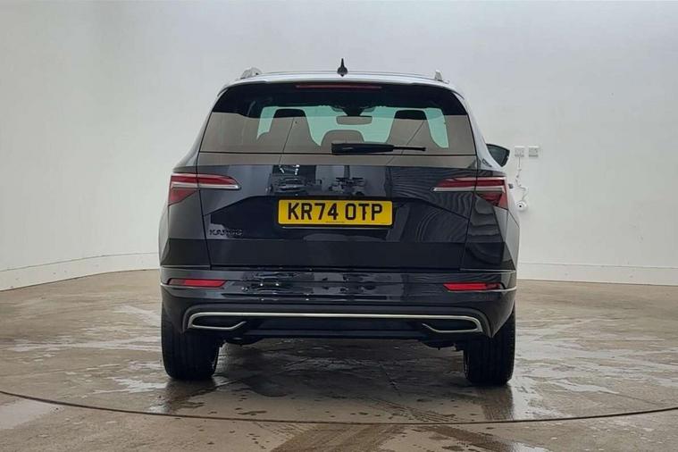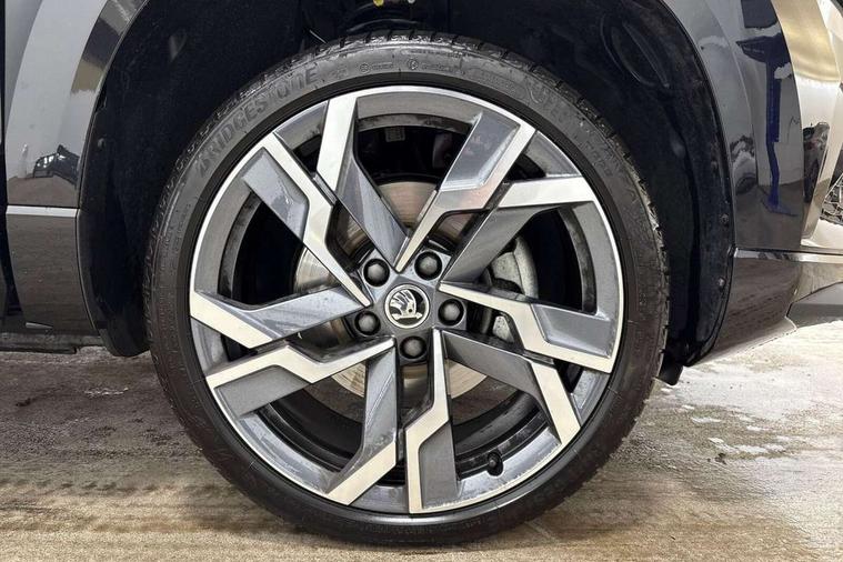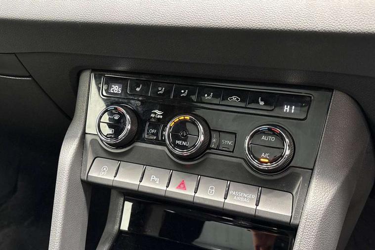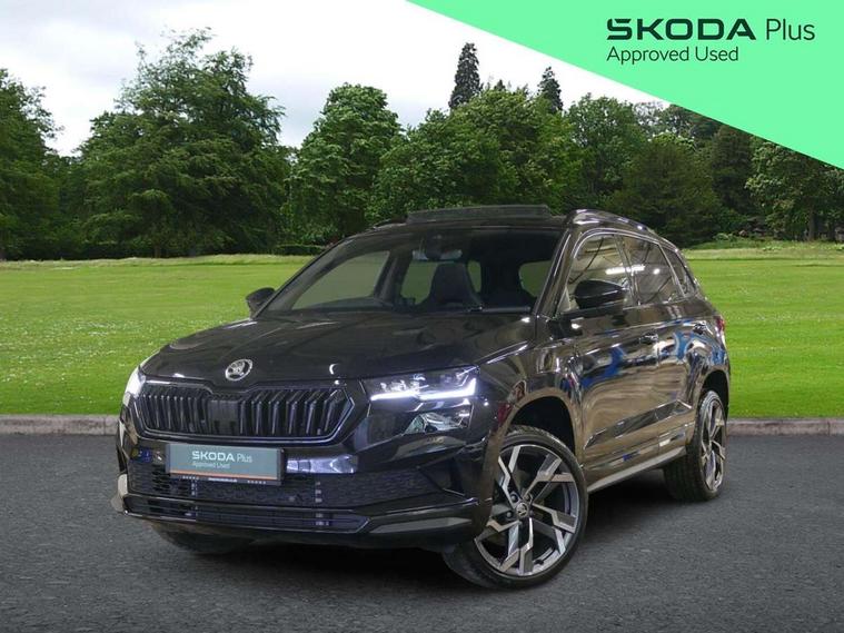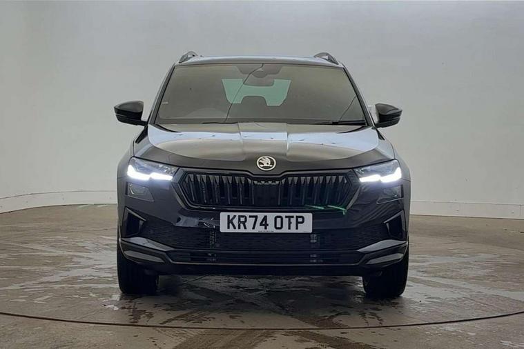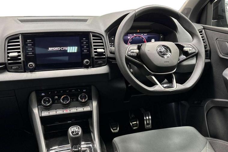 8" Digital display, Advanced driver attention and drowsiness monitor, Emergency services call system, Outside temperature gauge, Sensor for driver assistance systems, Service interval indicator, SmartLink wireless for Apple and wired for Android, Start/stop system with regenerative braking, USB C Port x 2 in front centre console, Virtual Cockpit - 10.25" digital display, Virtual pedal with electrically operated boot door, Wireless smartphone charging, DAB radio with Bluetooth, USB connection, Acoustic glass, Aero front windscreen wipers with intermittent function, Auto dimming rear view mirror with light and rain sensors, Black door mirrors, Black electric window control buttons, Black radiator grille, Black roof rails, Body colour door handles, Electric front and rear windows with child proof lock, Front door steps with SportLine logo, Heated rear windscreen, LED daytime running lights, LED rear lights with high functionality welcome effect and dynamic indicators, Light assistant (coming/leaving home/tunnel light), Panoramic sliding sunroof, Plastic scuff plates in door apertures, Privacy glass, Protective door side sills in body colour, Rear diffuser, Rear side wing doors, Rear spoiler, Rear window wiper with washer system and intermittent control, Safety reflectors on front doors, Skoda lettering on tailgate in black, Sportline badge on front fender, Sportline decorative inserts with badging, Sports front and rear bumpers, Third brake light, 1.5 litre bottle holders in driver and front passenger door panels, 12V socket in boot, 12v socket in front centre armrest with storage compartment and rear air vents, 2 x Tablet holder, 3 rear height adjustable headrests, 3 seat bench in 2nd row, 3 spoke sports leather heated multifunction steering wheel, 4 foldable roof handles with rear coat hooks, Black floor carpet, Black roof headlining, Chrome inner door handles, Foldable hooks in the boot, Front head restraints, Height adjustable front three point seats belts with tensioners, Height/reach adjust steering wheel, Ice scraper, Illuminated glovebox, Illuminated luggage compartment, Isofix child seat preparation for front passenger seat, Isofix child seat preparation outer rear, Manual lumbar support for front seats, Pen holder, Pollen filter, Rear boot cover, Rear reading lights, Rear seats fixed folding and divided 60:40, Rubbish bin door, Safety vest holder, Single front passenger seat, Storage box in upper central dashboard closed, Sunvisors with illuminated vanity mirrors, Textile floor mats, Ticket holder, Titan black interior ceiling, Umbrella under passenger seat, Under passenger seat storage compartment, LED Interior lighting pack with Skoda welcome logo - Karoq, Light Pack - Karoq, Non Smokers pack, Automatic door unlocking in case of crash, Automatic fuel cut off in case of crash, Driver airbag, Electronic parking brake with auto hold function, Emergency rear braking signal, ESC (incl. ABS+MSR+ASR+EDS+HBA+DSR+RBS+MKB), Front side airbags, Head airbags, Hill hold control, Knee airbags, Passenger airbag with switch-off function, Pedestrian monitor, Seatbelt reminder signalisation and pretensioner for all seats, Three point seatbelts rear, Two tone horn, Tyre pressure monitor, Alarm with interior monitoring, back up horn and tilt sensor with safe function, Electronic engine immobiliser, Keyless entry and start/stop, Remote central locking with 2 remote folding keys, Black air vent surround, Black centre console, carbon door decor, Satin black dashboard, Satin black door trim, 19" Sagittarius anthracite alloy wheels, Anti-theft wheel bolts protection, Breakdown and tool kit,