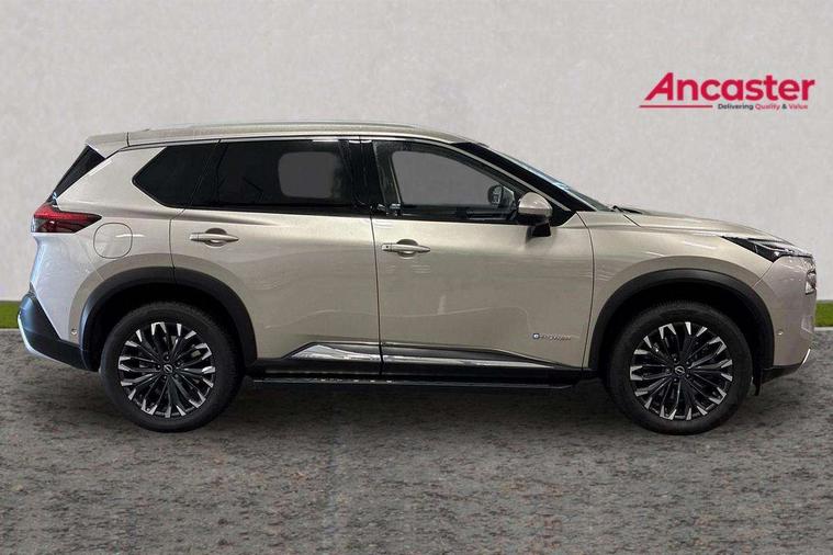 Advanced 10.8" head up display, Android auto wireless, Blind spot warning, Drive assist custom mode, Drive modes (sport, normal, eco, snow, off-road), Driver drowsiness and attention warning, e-Pedal step, Electric speed sensitive power steering, Emergency and breakdown call, Event data recorder, Front and rear parking sensors, Full Digital 12.3" TFT Digital Combimeter, Google maps services - search, weather, 3D maps and Google street view, Hands free power tailgate, Idle stop/start system, Intelligent around view monitor, Intelligent Cruise control (ICC), Intelligent driver alert system, Intelligent forward collision warning, Intelligent lane departure warning, Intelligent lane intervention, Intelligent lane keep assist, Lane departure prevention, Maximum speed limiter, Moving object detection, Nissan connect 12.3 inch touchscreen infotainment system, Nissan connect nav with TomTom traffic, Propilot assist with Navi-Link, ProPilot park, Push button starter, Rear cross traffic alert, Rear view camera, Remote control services - door locks, lights, horn and car locator, Reversing detection, Telematics - notifications and connectivity services, Traffic jam pilot, Traffic sign recognition with legal speed adjustment, Trip computer, Virtual personal assistant and firmware over the air capability, Wireless apple carplay, Wireless charging pad, AM/FM audio system with DAB, Bluetooth audio streaming, Bose premium acoustimass bass box with digital amplifier, Bose premium sound system with 10 speakers, Digital amplifier, Front USB connections (Type-A and Type-C), Rear USB charging only ports 2 Type-C, Auto rear wiper when reversing, Body colour mirror caps, Body coloured door handles, Bodyside mouldings, Chrome side window finisher, e-4ORCE badging, e-POWER badging, Electric auto folding door mirrors, Electric sunroof/sunshade, Electrically adjustable and heated door mirrors, Follow me home headlights, Headlights auto levelling system, High beam assist, Intelligent auto headlights, LED 3rd brake light, LED daytime running lights, LED front fog lights, LED headlights with adaptive driving beam, LED rear lights, Memory function for door mirrors, One touch front and rear electric windows with remote opening and closing, Partially body coloured bumpers, Rain sensing wipers, Rear privacy glass, Rear reversing light (bulb lighting), Rear roof spoiler, Rear side wing doors, Rear styling plate, Reverse tilting door mirrors, Roof rails, Shark fin antenna, Smart rear view mirror with auto dimming, Splash free wipers, Super UV and infrared cut glass, Thermaclear heated windscreen, Three blink turn signal, 12v power socket in dashboard and luggage, 2 headrests in 3rd row, 2 seat bench in 3rd row, 2x 3-point seat belts in 3rd row, 3 bench rear seats in 2nd row, 3 rear headrests, 40/20/40 folding rear seats with recline, 50/50 split/folding 3rd row of seats, Butteryfly console, Chrome interior door handles, Cup holders in 3rd row, Dark headlining, Driver and front passenger sunvisors with illuminated vanity mirrors, Driver seat back pocket, Electric adjustable 2 way lumbar support for driver, Electric adjustable 2 way lumbar support for passenger seat, Electric adjustable driver and passenger seat with memory function, Fore/Aft adjustable rear seats, Front and rear heated seats, Front centre console and armrest, Front cupholders, Front door with bottle holders, Heated steering wheel, Height adjustable driver's seat, Height adjustable front headrests, Height adjustable passenger seat, Leather shift knob, Leather steering wheel, Luggage board system, Luggage space lighting, Multifunction steering wheel, Passenger seat back pocket, Quilted premium leather upholstery, Rear armrest with 2 cupholders, Rear door bottle holders, Single front passenger seat, Sliding second row seats, Steering column mounted gear shift paddles, Tilt/telescopic adjustable steering wheel, Tri zone automatic climate control with pollen filter, Two rear isofix child seat anchorage points with top tether, Sky pack - X-Trail, 3rd row seat belts reminder, 3x3 point rear seatbelt pretensioners + load limiters, ABS with EBD and brake assist, Active brake limited slip, Auto hold function, Child locks on rear doors, Curtain and front side, far side airbags, Driver and passenger airbags, Driver, passenger and 2nd row rear seat belt reminder, Electronic parking brake, Front seatbelt pretensioners + load limiters, Height adjustable front seatbelts, Hill start assist, Intelligent blind spot intervention, Intelligent front emergency braking with pedestrian, cyclist recognition and junction assist, Intelligent rear automatic braking, Tyre pressure monitoring system, Vehicle dynamic control, Advance intelligent key with driver memory storage (seats, mirrors, audio), Approach unlock and walk away lock, Engine immobiliser, Remote central door locking with deadlocking, Thatcham Cat.1 alarm, Tyre puncture repair kit,