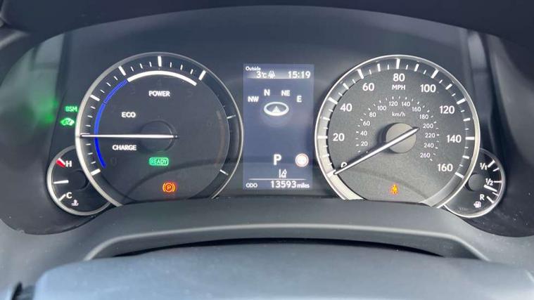 12.3" Touchscreen display and remote touch interface, 360 degree panoramic view monitor, 5 Driving modes EV/Normal/Eco/Sport/Sport+, Analogue clock with GPS function, Apple car play/Android Auto, Bluetooth mobile phone connectivity, BSM - Blind spot monitoring, Electric power steering, Front and rear parking sensors with intelligent clearance sonar, Hands free power boot lid operation with kick sensor, Head up Display, Lane change flasher function, Lexus link connected services with available optional wifi, Lexus Premium Navigation with full European map capability, street view and connected services, Multi-information display 4-inch TFT, Push button starter, Reversing camera with back guide lines, Wireless Smartphone charger, Adaptive variable suspension, Vehicle Dynamics Integrated Management (VDIM), Vehicle Stability Control (VSC), AUX socket with VTR compatibility, DAB Digital radio, DVD, Front and rear USB ports, Mark Levinson sound system with 15 speakers, 3 eye LED headlights with adaptive high beam system with bladescan, Auto dimming rear view mirror, Front and rear electric windows, Headlight washers, Heated, auto-folding door mirrors, auto dimming with rerverse tilt and memory, LED brake lights and rear lights with emergency brake signal, LED cornering headlights, LED daytime running lights, LED front and rear sequential indicators, LED front fog lights, Privacy glass, rear doors and tailgate, Puddle lights, Rain sensor windscreen wipers, Roof rails, 10 way electric power front seats, 2 map pockets in the rear, 2 way manually adjustable front headrests, 2 way manually adjustable rear headrests, 2 x fixed shopping bag hooks in boot, 2 x Sunvisors with vanity mirror and lamp, 3 x 12V power sockets, 4 way electric lumbar support for driver and front passenger, 4 x tie down hooks in the boot, 60/40 split folding rear seat with 40/20/40 folding ability, Card holder installed in driver and passengers sun visors, Centre and rear armrest with 2 cupholders, Centre armrest with storage box, Climate concierge, Driver and passenger seat memory, Driver's seat easy access auto retraction function, Dual zone climate control air conditioning system with S flow and Nanoe technology, Electric folding rear seats, Electrically adjustable steering column, Electrically adjustable wooden and leather steering wheel with paddle shifts and auto retraction function, Glasses holder in roof lighting panel, Heated front seats, Heated rear seats, Heated steering wheel, Isofix standard child seat restraint mounting, Leather gear lever, LED aluminium scuff plates, LED interior illumination, Rear armrest with storage, Rear door sunshades, Self charging hybrid, Semi-aniline leather upholstery, Sliding/reclining rear seats, Small compartment to right of steering wheel, Textile carpet mats, Unique LED illumination instrumnet panel, Ventilated front seats, 3 point ELR front and rear seatbelts with pretensioners, ABS, Curtain airbags, Driver and front passenger 2 stage airbag, Driver/front passenger side airbags, Drivers knee airbag, EBD + Brake Assist, Electronic parking brake, Electronically controlled braking, Front passenger seat cushion airbag, Hill start assist, Lexus safety system + includes dynamic radar cruise control, pre collision system day and night, lane tracing assist, road sign, adaptive high beam, Passenger airbag cut-off device, RCTB - Rear cross traffic auto brake, Rear passenger side airbags, Traction control, Tyre pressure warning, WIL whiplash protection front seats, Anti theft system with alarm, intrusion sensor, tilt sensor, glass breakage sensor and engine immobiliser, Locking wheel nuts, Security window etching, Smart card key, Smart keyless entry, Two motion door lock with double lock, 20" Takumi alloy wheels, Temporary spare wheel,