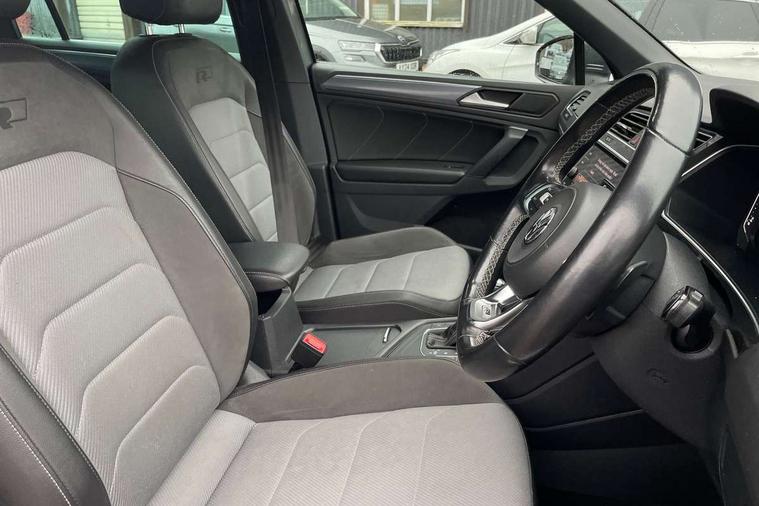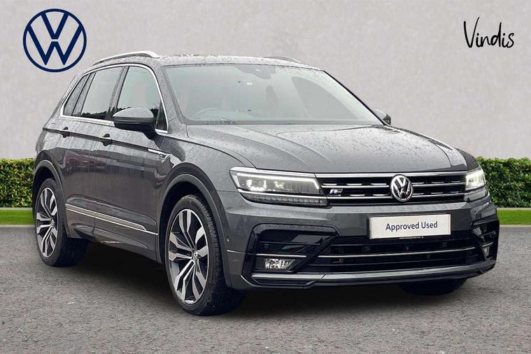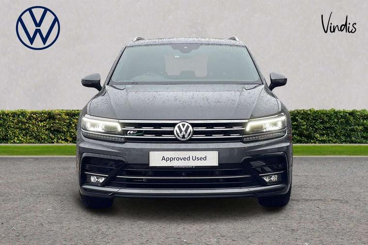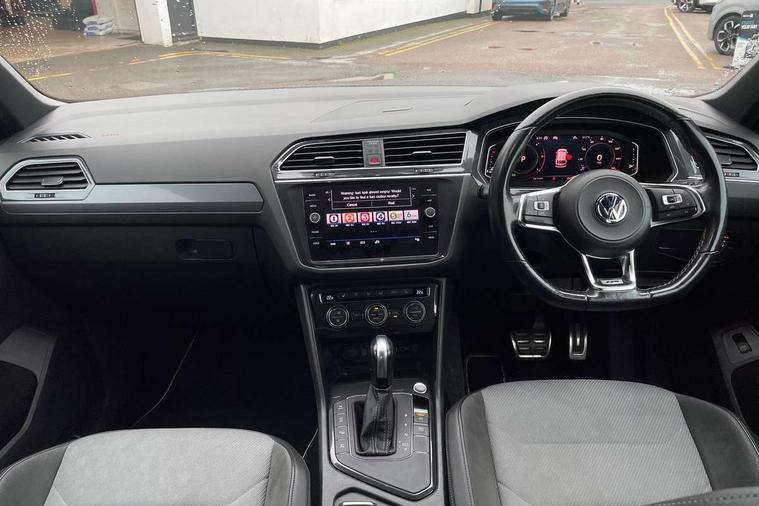 2D/3D map view, Active information display, Adaptive cruise control, App-Connect, Area view with park assist steering and front and rear parking sensors, Bluetooth phone integration system, Car information display, Distance control assist, Driver alert system with fatigue detection, Driver profile selection, Front assist, radar sensor controlled distance monitor, city emergency braking + predictive pedestrian protection, Fully electric tailgate + keyless entry and start, Instrument cluster, Lane assist, Lights on warning, Multifunction computer with visual gear change recommendation for fuel consumption, Outside temperature display, Progressive power assisted steering, Service interval indicator, Speed limiter, Start/Stop function, Warning sound and light for doors and tailgate open, Battery regeneration during braking, Diesel particulate filter, Misfuel prevention device for diesel engine, XDS electronic differential lock for improved traction and handling, 2 x USB connection + USB charging socket, 4 X 20 watt output, DAB Digital radio, SD card slot, Simultaneous pairing of 2 compatible mobile devices, SMS functionality - read, compose and send SMS messages using touch-screen display, Title and cover art display, 3D effect cherry red LED rear tail lights, Aluminium decorative inserts in dash and door panels, Auto dimming interior mirror, Automatic activation of hazard warning lights, Body colour door handles, Body colour door mirrors, Body colour rear spoiler, Body colour side skirt, Body coloured bumpers, Chrome side window surrounds, Chrome trimmed radiator grille, Coming/leaving home lighting function, Dusk sensor + auto driving lights, Electric panoramic sunroof with sunblind, Electrically heated and foldable door mirrors, door mirror puddle lights and reverse activated kerb view adjustment on passenger's door mirror, Front and rear electric windows, Heated rear window, High level 3rd brake light, LED headlights with dynamic light assist daytime running lights and cornering front fog lights, LED rear number plate lights, Piano black front air intake and rear diffuser, R Line body kit, R Line side sills, Rain sensor windscreen wipers, Rear tinted glass from B-pillar backwards approx 65% tinted, Rear windscreen washer and wiper with interval delay, Side skirts and rear bumper with chrome insert, Silver front underbody protection and rear diffuser, Silver roof rails, Trailer Stability Programme, Unique R Line badging, Windscreen wipers/ intermittent wipe + 4 position delay, 12V socket in centre console storage area, 2 cup holders in front, 3 rear headrests, 3 zone climate control, 4 load lashing points, 40:20:40 split folding rear seats, Bag hook in luggage compartment, Black headlining, Foldable front passenger seat backrest, Front + rear carpet mats, Front centre armrest with 12v socket, Front centre armrest with storage + rear 2 air vents, Front seat back storage pockets, Front seat R Line logo with rear seat backrest, Front seatback folding tables, Height/reach adjust steering wheel, Illuminated driver/passenger vanity mirrors, Illuminated scuff plates, Instrument lighting white adjustable panel illumination, Interior light with delay, Isofix Preparation 2 Rear child seats, Leather gear knob, Load through provision with 2 cupholders when folded, Lockable cooled glovebox, Luggage compartment lighting, Map pockets on front seats, Passenger seat height adjuster, Removable luggage cover, Sliding/reclining rear seats, Stainless steel pedals, Storage compartment in driver's door, Storage compartment in passenger's door, Storage compartment in rear doors, Storage compartments in luggage area left and right, Storage tray on dashboard, Sunglasses storage, Three spoke leather trimmed multifunction steering wheel with aluminium inserts and R Line Logo including paddle shift, Unique R Line door sill protectors, Variable boot floor, height adjustable and removable, Ambient lighting pack - Tiguan, R Line styling pack - Tiguan, 3 rear 3 point seatbelts, ABS+EBD+Brake assist, Active bonnet, Active pedestrian safety system, Curtain airbags, Driver/Front Passenger airbags, Driver/Passenger whiplash optimised head restraints, Drivers knee airbag, DTC - Drag torque control, Electronic parking brake with auto hold, ESC with EDL, ASR, EDTC and trailer stabilisation function, First aid kit, Front seat side impact airbags, Front side airbags, Front ventilated disc brakes and rear disc brakes, Head airbag system, Height adjustable front 3 point seatbelts + pretensioners, Hill hold control, Passenger airbag deactivate switch, Passenger knee airbag, Pre crash preventive occupant protection, Rear side airbags, Rigid safety cell with front and rear crumple zones, Two tone horn, Warning sound and light for front seat belts if unfastened, Warning triangle, Alarm with interior protection, Electronic engine immobiliser, Remote central locking with 2 remote folding keys, Chrome door trim inserts, Dark grey decorative inserts in dash and door panel, Piano black decorative inserts in centre console, 20" Suzuka alloy wheels with mobility self sealing tyres + anti theft wheel bolts, Steel space saver spare wheel,