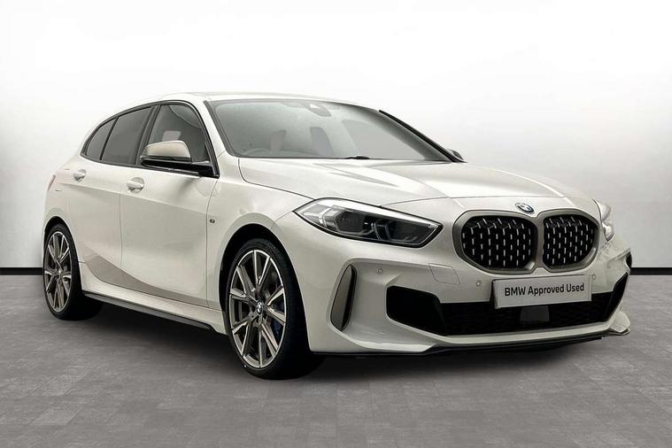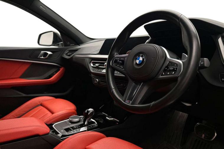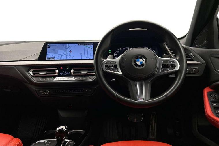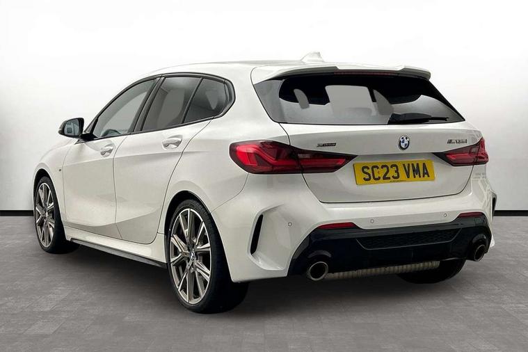 Active guard plus, Attentiveness assist, BMW ConnectedDrive online services, BMW Teleservices, Check Control warning system for monitoring of lights and door/luggage compartment open warning, Cruise control with speed limiter, Eco pro mode, Electric power steering, Electro hydraulically controlled multi-plate clutch transfers drive to rear axle and with power take-off device located on the front differential., Energy efficient operating strategy, Front axle single joint with specific axle kinematics to minimise drive influences on steering + provide increased rigidity agile driving behaviour, Gearshift time display in manual mode, Integrated owners handbook, Lane departure warning system, M Sports steering with M135i xDrive specific settings, Oil sensor for level and grade, On board computer, Optimum shift indicator, Personal Profile, Pull away assistant, Rigidly mounted rear subframe - Multi link construction with separate spring / damper configuration and excellent driving characteristics, Speed limit Info including no-overtaking indicator, Sporty fast gear shifting in sport mode, Aluminium lightweight construction, Anti roll bar front and rear, Balancer shaft, Double VANOS, Drive Performance Control, Eight speed sport automatic transmission with gearshift paddle switches, Electronic differential lock, Electronic selector lever, Engine cover with M performance designation, High precision injection, Larger fuel tank capacity (50 litres), Launch control, M135i specific heavily de-throttled engine intake air guide, M135i specific high-performance cooling package, M135i specific larger turbocharger with integrated divert-air valve, Petrol Particulate Filter, Twin tube gas filled shock absorbers with degressive characteristic curve, VALVETRONIC engine management, Variable, stepless and infinitely adjustable distribution of drive torque between the front and rear axles, xDrive intelligent all wheel drive with M135i specific reinforced components, DAB Digital radio, Auto dimming rear view mirror, Automatic headlight beam throw control, Automatic windscreen wipers and automatic headlight, Body colour door handles, Body colour roof trims, Cerium grey exterior mirror caps, Direction indicator side lights in exterior mirrors, Electrically adjustable exterior mirror with mirror adjustment switch on drivers armrest and aspheric on driver side, convex on passenger side, Exhaust tailpipe, Cerium Grey with bevelled finish - twin, round 100mm, left and right split, Fading support, Folding side mirrors with auto dimming/folding wing mirrors with auto dimming, Follow me home headlights, Front and rear bumper system with replaceable deformation elements, Front and rear electric windows with open and close fingertip control, anti trap facility and comfort closing, Front door sill finishers with M135i designation, Green tinted heat protection glazing, High gloss shadowline window frame, Recess cover mirror frames and B/C pillar embelisher trim, High level third brake light, Integrated front windscreen with washer jets, Kidney grille frame in Cerium Grey with Mesh design, LED daytime running lights, LED eyebrow turn indicators, Lightweight engineering, M logo designation side in cerium grey, M Performance exhaust system with valve control and minimised exhaust back pressure, M Performance specific setup, M Sport spoiler, Matt black air guide grilles, Matt black wheel arch trim, Model designation on electric bootlid includes xDrive designation for M135i xDrive, Nearside reverse light in rear light cluster, Preparation for high beam assistant, Rear fog lights, Rear side wing doors, Rear window wiper, Reinforced crank drive, new pistons and adapted con rods, Shark fin antenna, Trailer stabilisation logic, Visible VIN plate, Welcome lighting, 12V power socket in front centre console with blanking plug, 3 rear seat head restraints, 3 seat bench in 2nd row, 3 spoke sports leather steering wheel with black leather and stitching, pearl chrome decorative finish, specific M Badge, Anthracite headlining, Black boot net with lashing eyes, Cargo function on 2nd seat row, Child seat ISOFIX attachment for two outer rear seats and front passenger seat with anchorage points, Conditioned based service, Driver and front passenger backrest net on rear, Driver and front passenger seat heating, Driver side folding compartment in instrument panel, Folding rear clothes hook, Four grab handles integrated in roof lining, Front and rear door pockets with bottle holders, Front and rear side armrest integrated into door trim, Front armrest, Front M sports seats, Glove compartment, Height adjustable front head restraints, Luggage compartment for bag hooks on left and right, foldable luggage compartment liner and four lashing eyelets, Manual adjust steering wheel, Multi-function controls for steering wheel, Single front passenger seat, Storage compartment in centre console, Storage compartment in luggage compartment, Stowage of the parcel shelf in luggage compartment trim, Sun visors with vanity mirrors and insert tab, Two front centre console cupholders, Two zone automatic air conditioning, Type C two USB ports in rear centre console, Velour floor mats, Additional interior lighting pack - 1 Series M135i, BMW live cockpit professional pack- 1 Series, Connected pack professional - 1 Series, Interior lights pack - 1 Series, M Sport exterior styling aerodynamics pack - 1 Series 135i, 2 tone horn, 3 point seatbelts on all seats, front pyrotechnic belt tensioners, stopper and belt force limiters, rear coded belt buckles, Airbags - Front driver/passenger, front and rear curtain head protection, front side, manual deactivation of front passenger airbag, Anti lock braking system (ABS) with brake assist, BMW emergency call, Brake drying, Braking readiness, Child proof locking system in rear door, City braking function, Comfort modes, Cornering brake control, Crash sensor activating of airbags, Unlocking doors, hazard warning lights, interior light