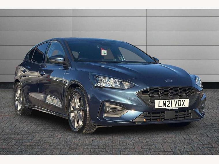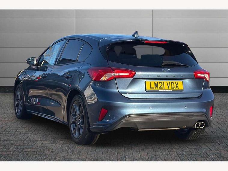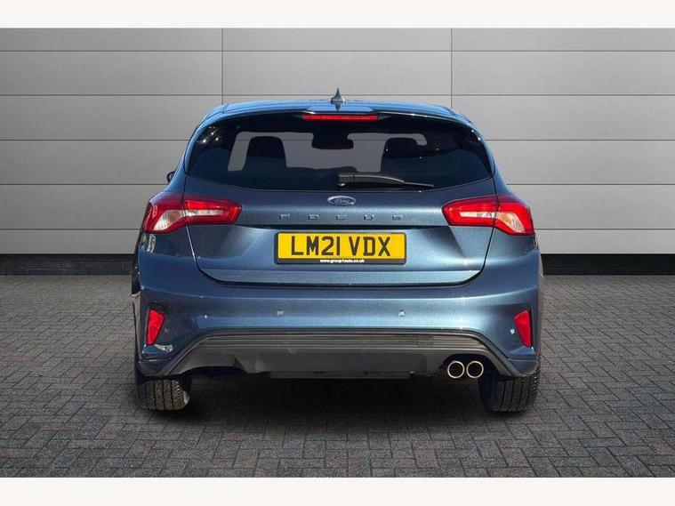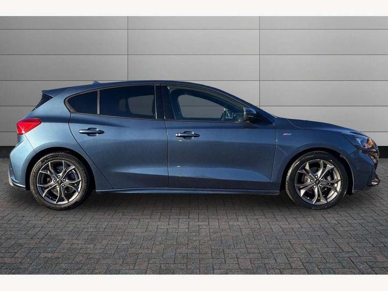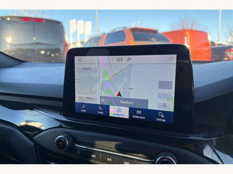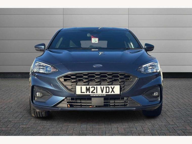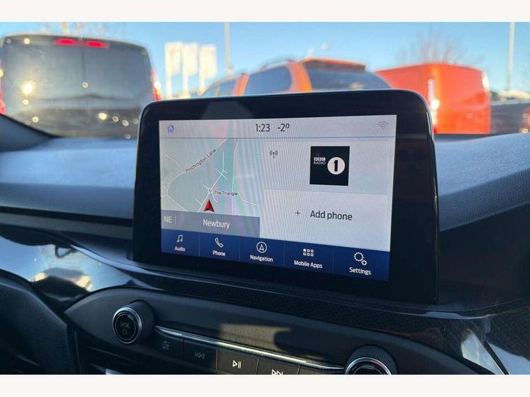 Bluetooth system, Digital clock, Easy fuel capless refuelling system, Eco mode, Ford pass connect, Ford SYNC 3 with 8" TFT touchscreen, and app link Android auto/Apple carplay, Intelligent speed assist, PAS, Rotary gear shift dial, Selectable drive mode, Trip computer, Sports tuned suspension, 6 speakers, Aux input, 'Quickclear' heated windscreen/heated washer jets, Auto headlamps (on/off), Body colour large rear spoiler, Body colour side skirt, Body coloured bumpers, Body coloured door handles, Body coloured electrically operated and heated door mirrors with side indicators, Electrically operated front and rear windows with one touch opening and closing, Front variable intermittent wipers with electric wash, Halogen reflector headlamps, Heated rear window, LED daytime running lamp, LED front fog lamps with cornering function, Polished twin tailpipe, ST-Line upper and lower grille with full body styling kit and wing badges, Tailgate wash/wipe, 3 spoke flat bottomed leather steering wheel with red stitching, 60/40 split back and cushion rear seats with 2 height adjustable headrests, Alloy finish pedals, Centre console with armrest, Cloth upholstery with red stitching, Dark headliner, Driver's lumbar support, Front floor mats, Height adjustable front headrests, Isofix child seat preparation, Manual air conditioning, Paddle shift controls, Reach + rake adjustable steering column, Rear centre headrest, ABS+Electronic Brake force Distribution, Auto hold function, Driver airbag, Electronic parking brake, Electronic stability control, Front and rear seatbelt reminder, Front inertia reel height adjustable seatbelts with pre-tensioners, Front passenger airbag, Front side airbags, Hill start assist, Passenger airbag deactivate switch, Post collision braking, Pre collision assist with autonomous emergency braking and pedestrian/cyclist detection, Side curtain airbags, Three rear inertia reel lap/diagonal seatbelts, Tyre pressure monitoring system, Keyless start with 'Ford Power' starter button, MyKey system, Remote central locking & engine immobiliser, Thatcham category 1 alarm, Contrast stitching - Red, 17" 5x2 spoke alloy wheels with rock metallic finish, Mini steel spare wheel,