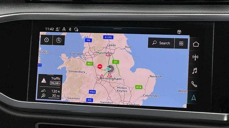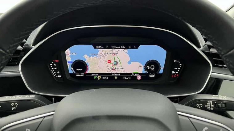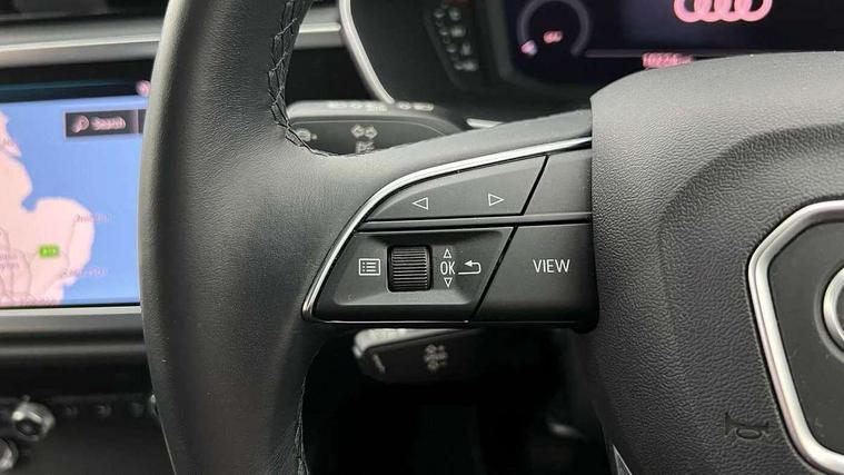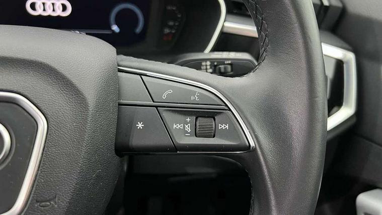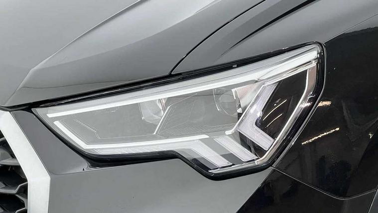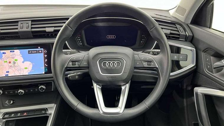 Audi drive select, Audi lane departure warning, Audi Virtual Cockpit - 10.25" display, Bluetooth interface, Camera based traffic sign recognition, Cruise control + speed limiter, Legal emergency call, MMI Navigation Plus with high resolution 10.1 inch touchscreen colour display, Power operated tailgate, Progressive steering, Rear parking sensors, Service interval indicator, Smartphone interface includes wireless Apple carplay/Android Auto, Start stop system with recuperation, Voice control system with natural language interaction, Sports suspension, 2 USB-C ports with charge and data functions, 6 passive loudspeakers, DAB digital radio module, Acoustic windscreen, Aluminium window trim, Auto dimming frameless rear view mirror, Bumpers and underbody protection in contrasting manhattan grey paint finish, Diffuser grille in grained matt black, Diffuser trim in manhattan grey metallic, Door sill trims with illuminated aluminium inlay, Electrically folding, adjustable and heated door mirrors with integrated LED side indicators and kerb view function for passenger side, Front and rear electric windows, Front fog lights, Front side air inlets in Manhattan grey metallic, Grille surround in aluminium silver matt, High gloss black finish B and C pillars, Honeycomb design radiator grille in matt anthracite black, LED Dynamic rear indicators, LED headlights with LED daytime running lights, LED rear lights, LED third brake light, Rain and light sensors, Rear side wing doors, Rear wiper, Variable front intermittent wipers, 12V socket in rear centre console, 3 seat bench in 2nd row, 3 spoke multi-function leather steering wheel, 40:20:40 folding with manual adjustment for 60:40 forwards/backwards position and backrest angle, Dual zone electronic climate control, Front and rear floor mats, Front and rear headrests, Front and rear roof module including reading lights, Front centre armrest, Glove compartment lighting, Height and reach adjustable steering wheel, ISOFIX child seat mounting for front passenger with airbag deactivation and outer rear seat including top tether attachment point for outer rear seats, Luggage compartment light right in white, Luggage compartment sill protection in stainless steel, Lunar silver cloth headlining, Manual front seats with height adjustment, Single front passenger seat, Non smoking pack - Q3, 3x3 point rear seatbelts, 6 airbags - Driver, front passenger, curtain and side windows, Audi pre-sense front with pedestrain and cyclist recognition, Electrically operated child locks on rear doors, Electromechanical parking brake, Electronic stabilisation control including ABS, ASR and EDL, Front seatbelt reminder, Hill descent control, Hill hold assist, Pre sense basic, Seatbelt monitoring, Tyre pressure warning, Warning triangle and first aid kit, Anti theft alarm, Anti theft wheel bolts, Immobiliser, Remote central locking, Aluminium look interior elements, Black dashboard, Detail dashboard around MMI touch colour display in glass look, black with surround in aluminium look, Micrometallic silver inlay,